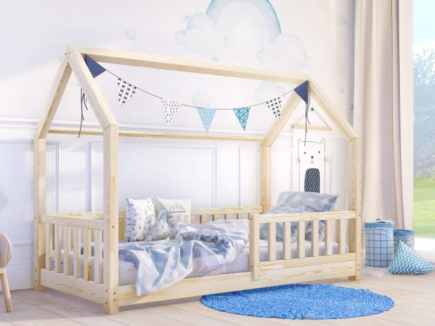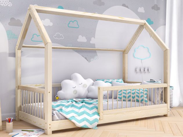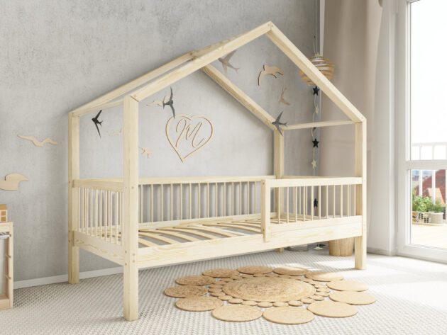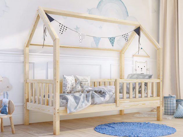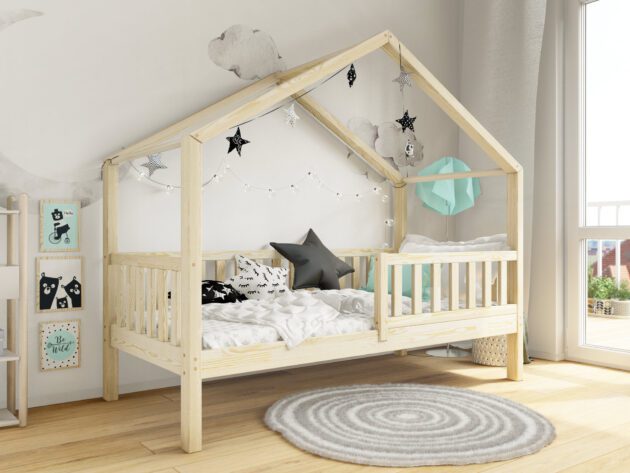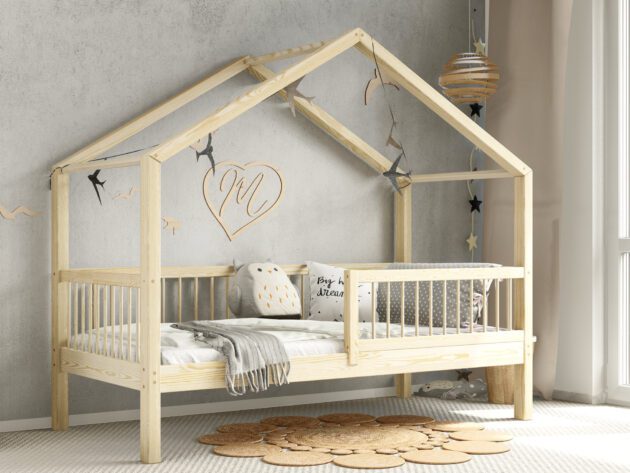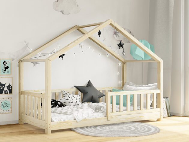 PORTIA drewniane łóżko dziecięce domek z barierkami SZYBKA WYSYŁKA