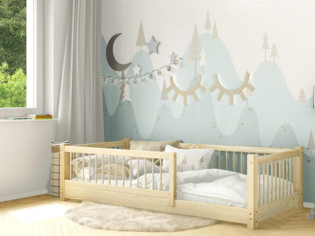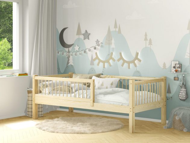 LEA sosnowe łóżko parterowe z barierkami płotek SZYBKA WYSYŁKA