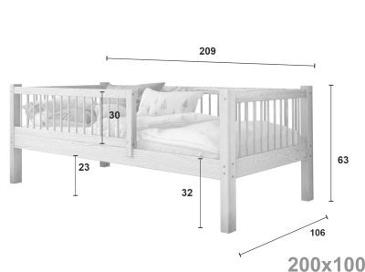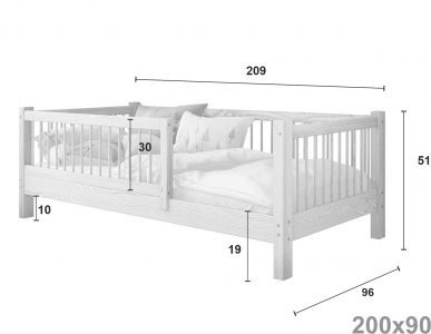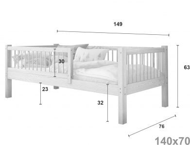 Solidne i wytrzymałe łóżko dla dziecka, parterowe Axel zostało wykonane z naturalnego drewna sosnowego pochodzącego z ekologicznych upraw leśnych. Model wyróżnia się okrągłymi szczebelkami, modnymi kolorami, możliwością wyboru różnej wysokości nóżek. Elementy drewniane są dokładnie szlifowane przez co ich powierzchnia jest gładka i zaoblona, bez nierówności. Zaokrąglone brzegi chronią przed zadrapaniami podczas zabawy i minimalizują ryzyko urazów. Mebel zaprojektowano zgodnie z skandynawską stylistyką, w której królują naturalne surowce, geometryczne kształty oraz funkcjonalne rozwiązania.