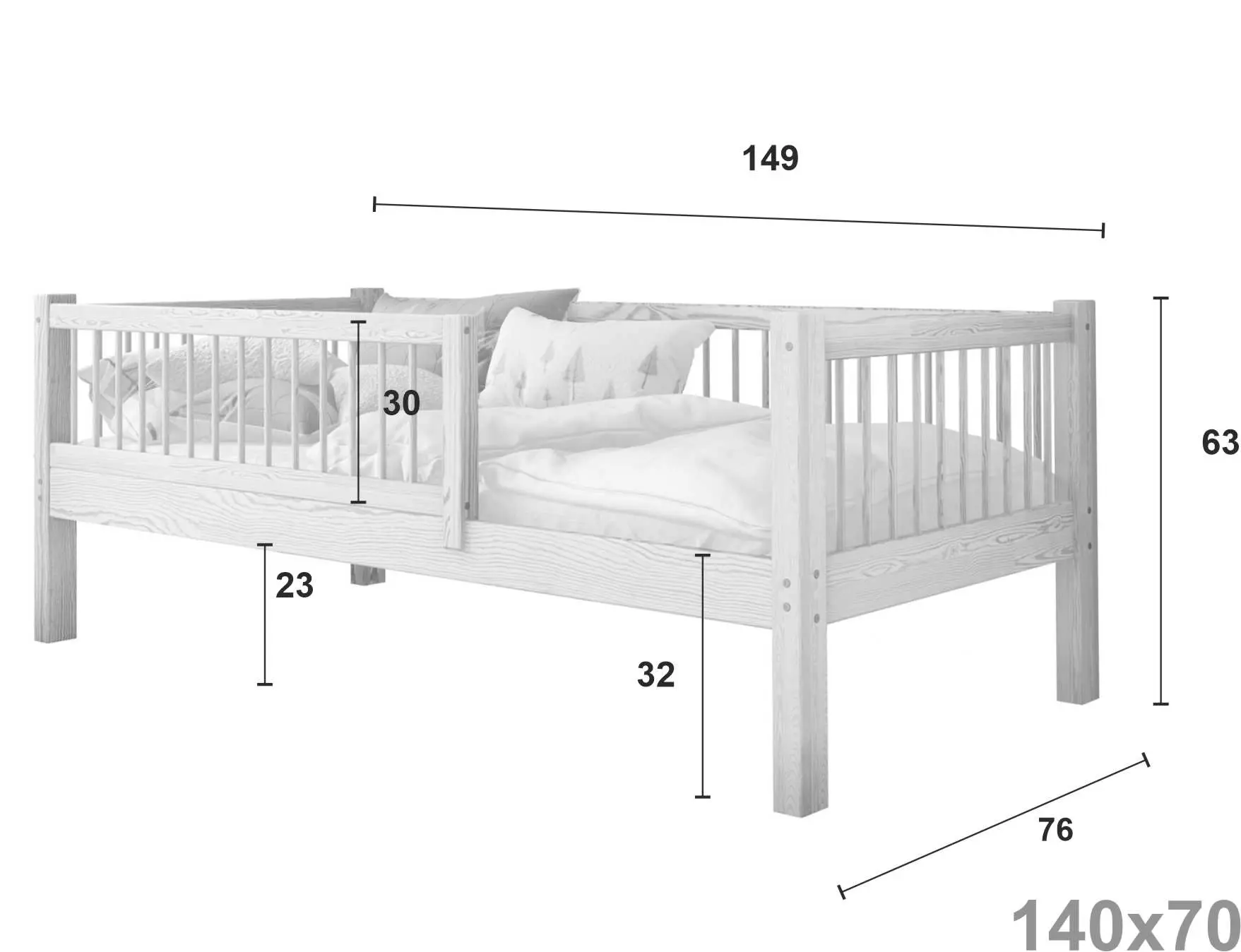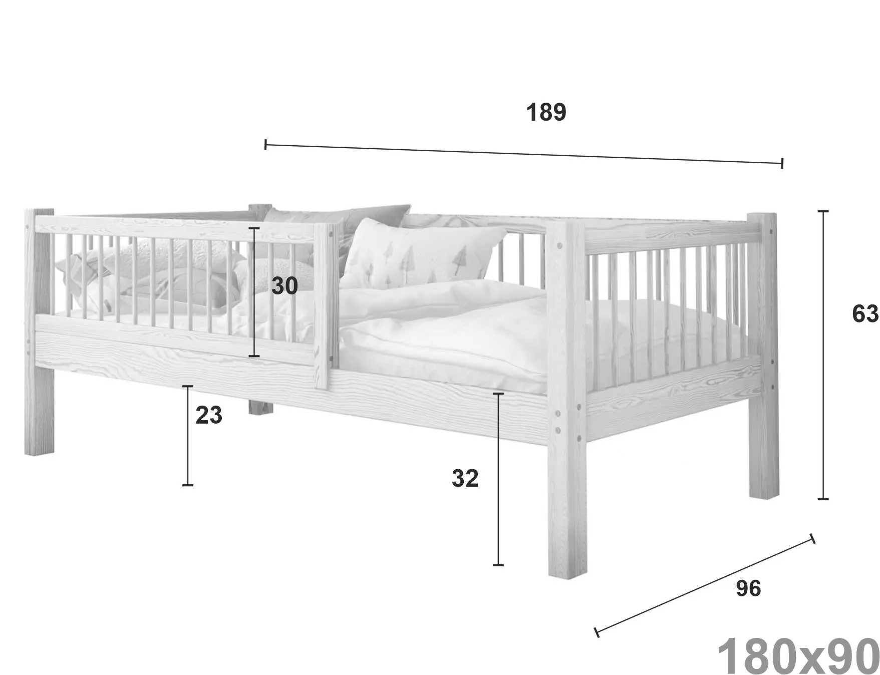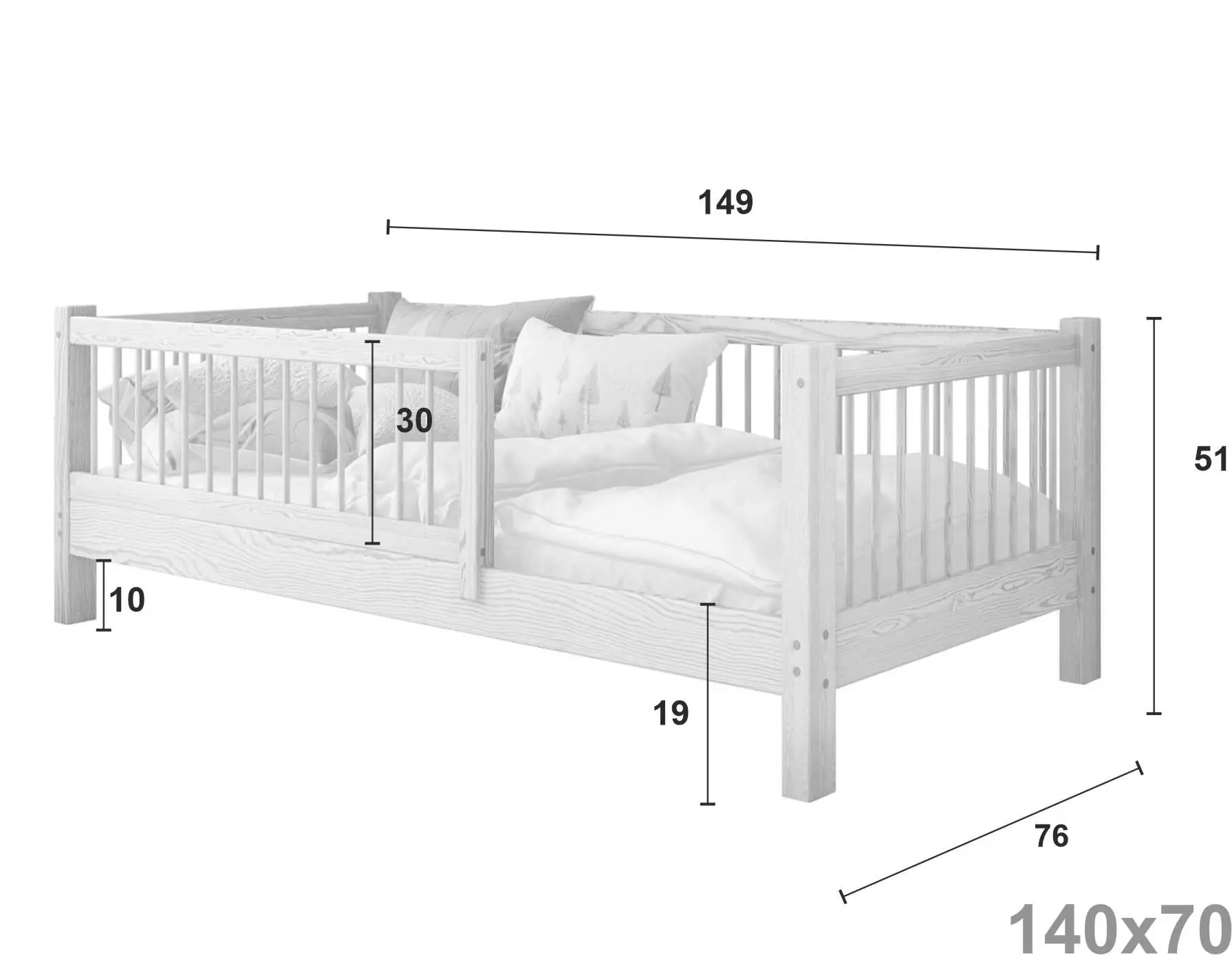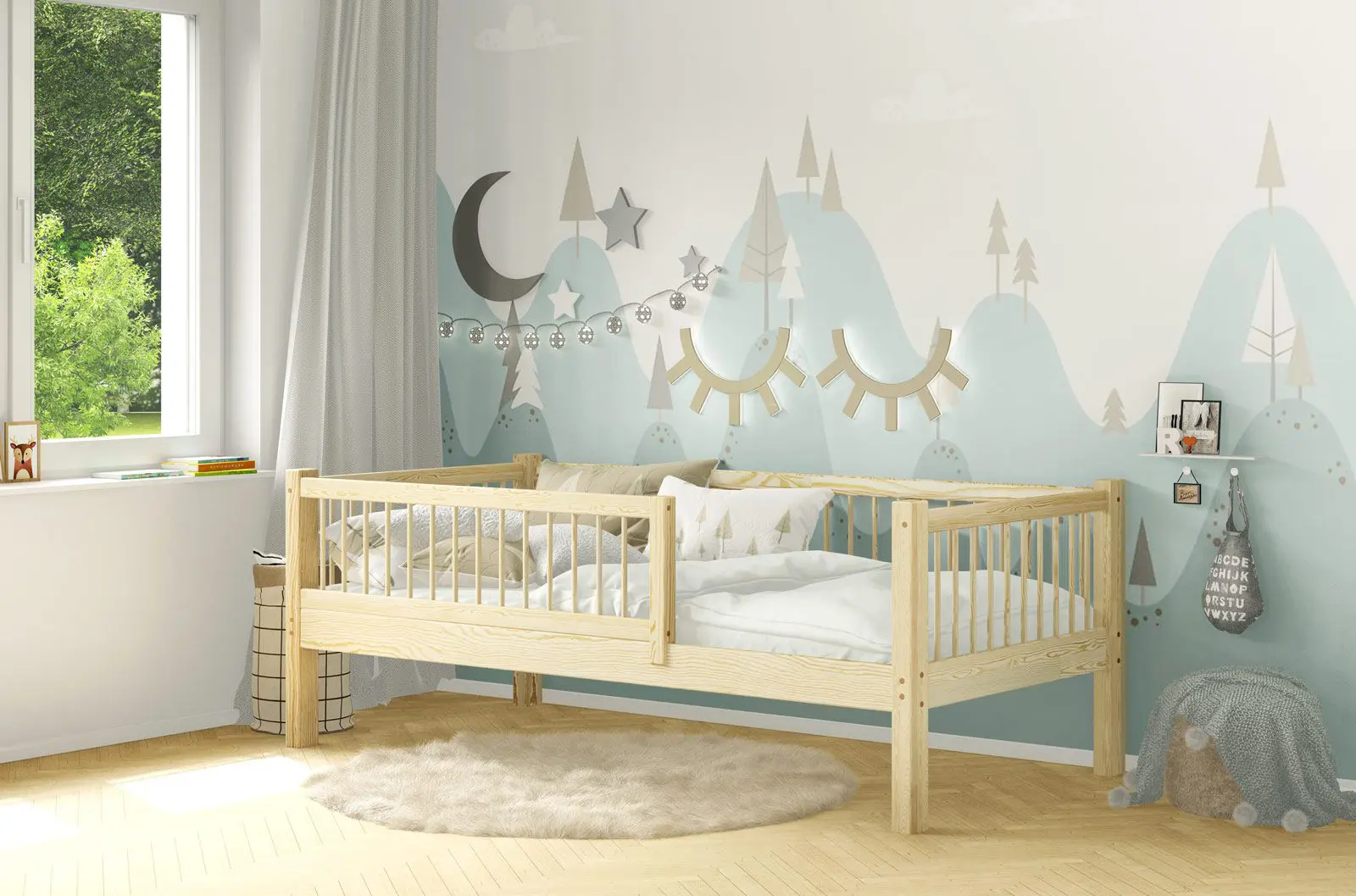 Solidne i wytrzymałe łóżko dla dziecka, parterowe Axel zostało wykonane z naturalnego drewna sosnowego pochodzącego z ekologicznych upraw leśnych. Model wyróżnia się okrągłymi szczebelkami, modnymi kolorami, możliwością wyboru różnej wysokości nóżek. Elementy drewniane są dokładnie szlifowane przez co ich powierzchnia jest gładka i zaoblona, bez nierówności. Zaokrąglone brzegi chronią przed zadrapaniami podczas zabawy i minimalizują ryzyko urazów. Mebel zaprojektowano zgodnie z skandynawską stylistyką, w której królują naturalne surowce, geometryczne kształty oraz funkcjonalne rozwiązania.