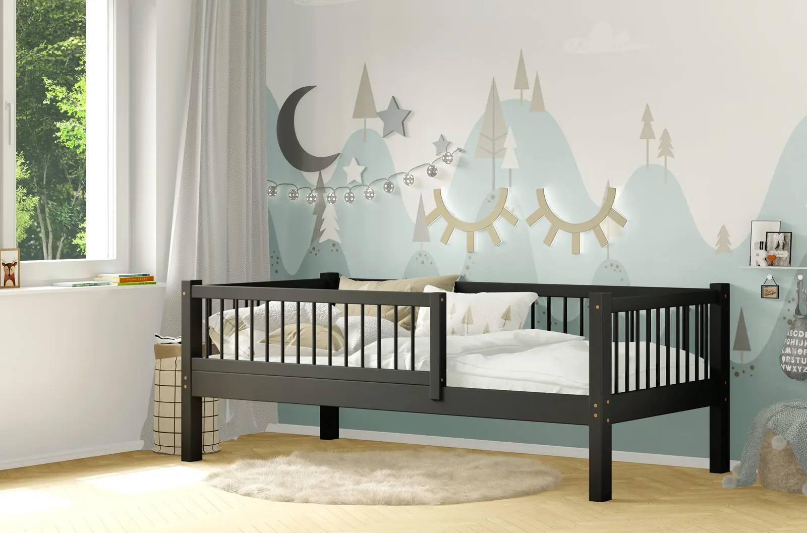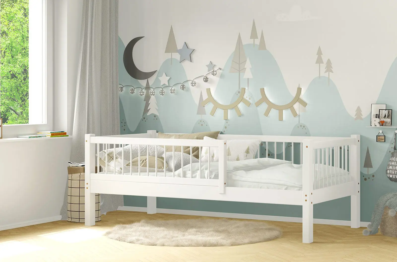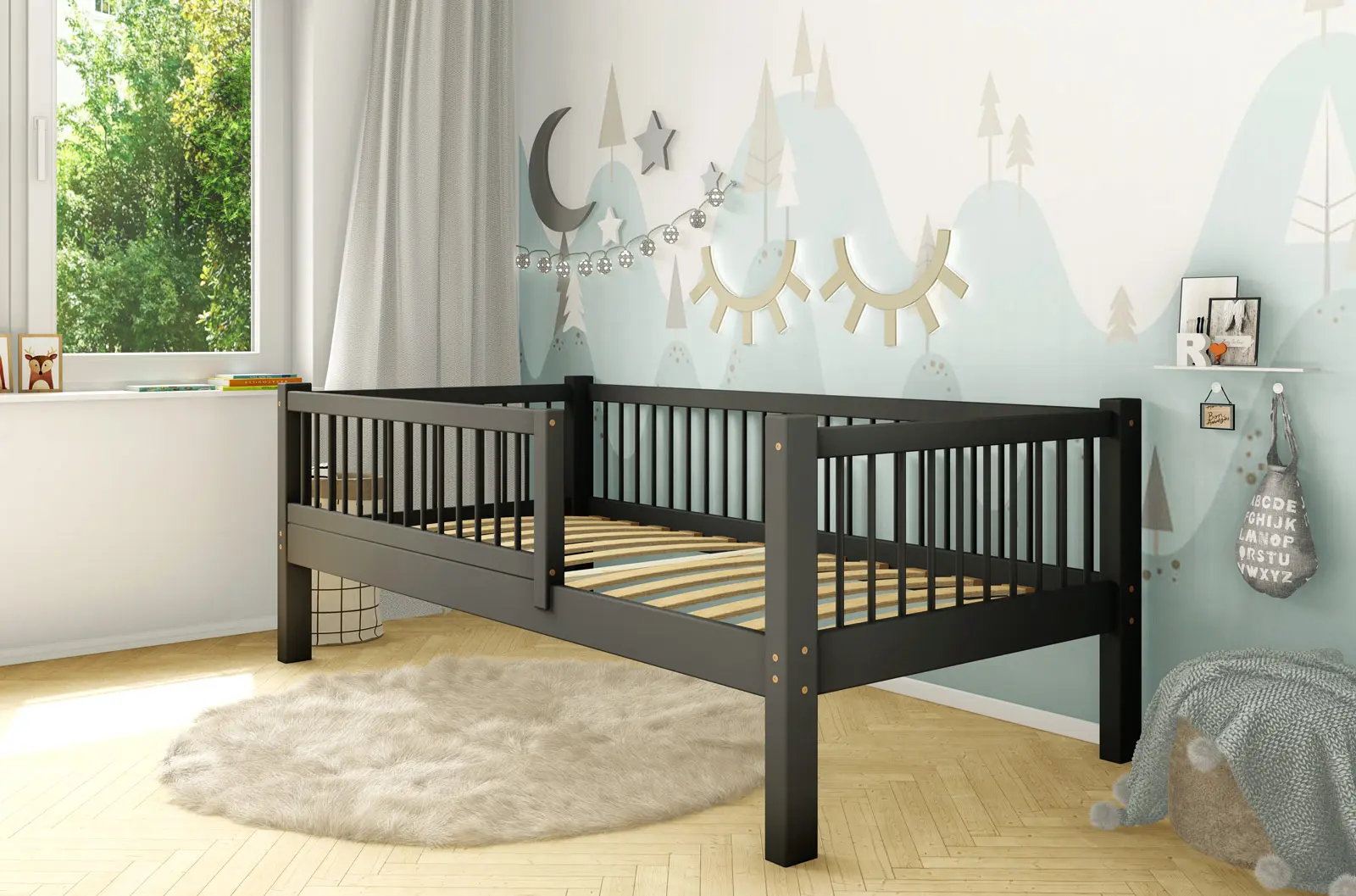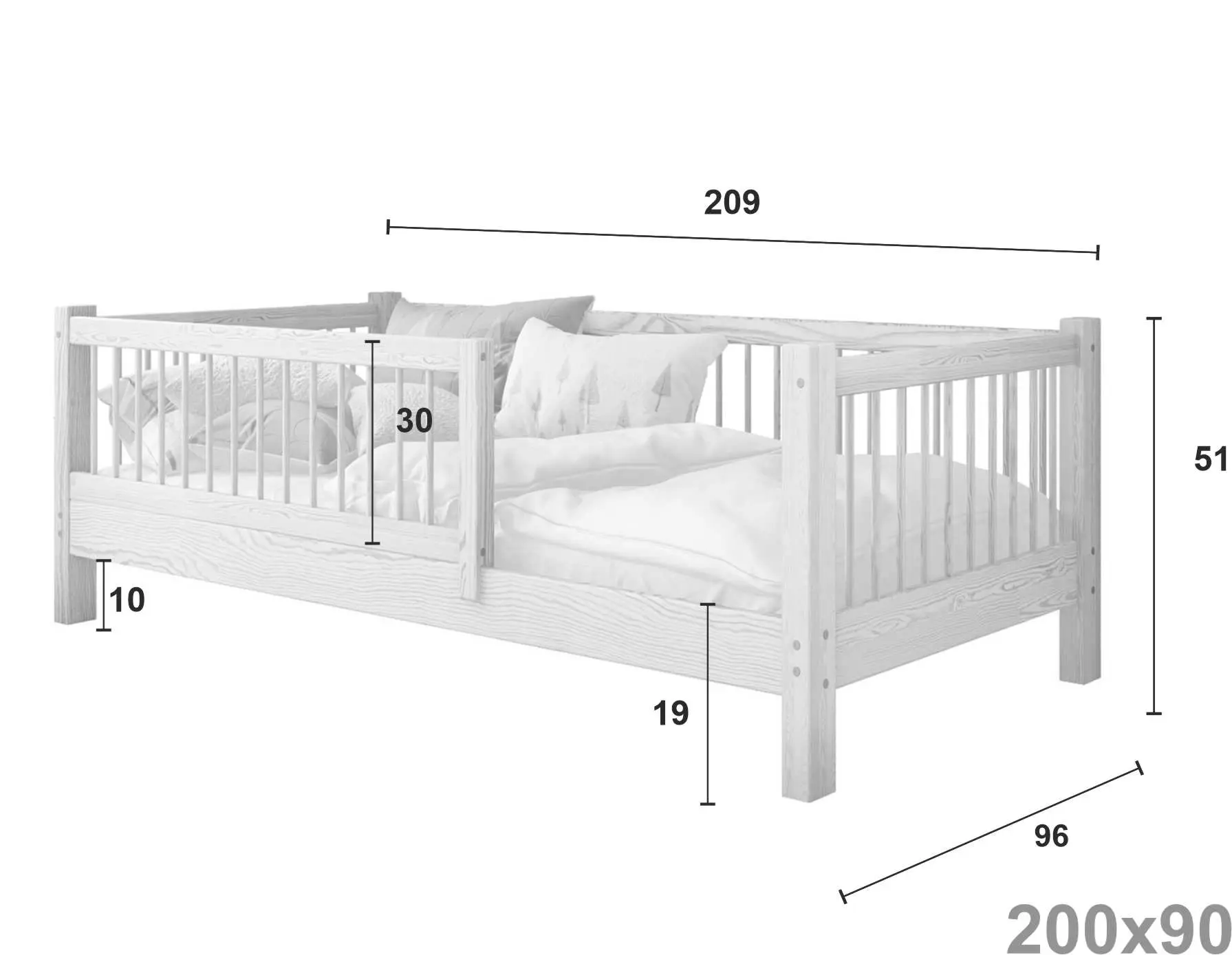 Solidne i wytrzymałe łóżko dla dziecka, parterowe Axel zostało wykonane z naturalnego drewna sosnowego pochodzącego z ekologicznych upraw leśnych. Model wyróżnia się okrągłymi szczebelkami, modnymi kolorami, możliwością wyboru różnej wysokości nóżek. Elementy drewniane są dokładnie szlifowane przez co ich powierzchnia jest gładka i zaoblona, bez nierówności. Zaokrąglone brzegi chronią przed zadrapaniami podczas zabawy i minimalizują ryzyko urazów. Mebel zaprojektowano zgodnie z skandynawską stylistyką, w której królują naturalne surowce, geometryczne kształty oraz funkcjonalne rozwiązania.