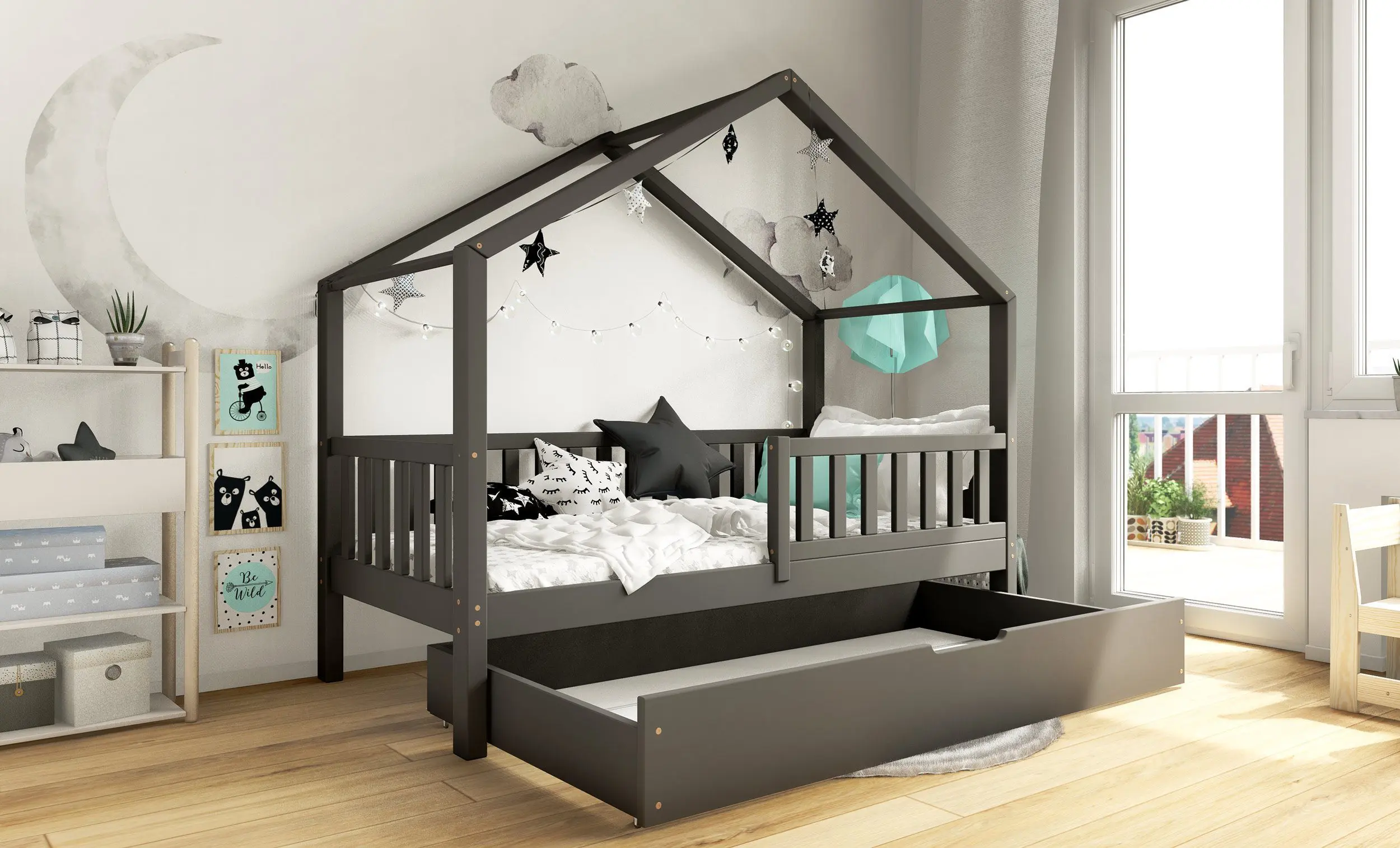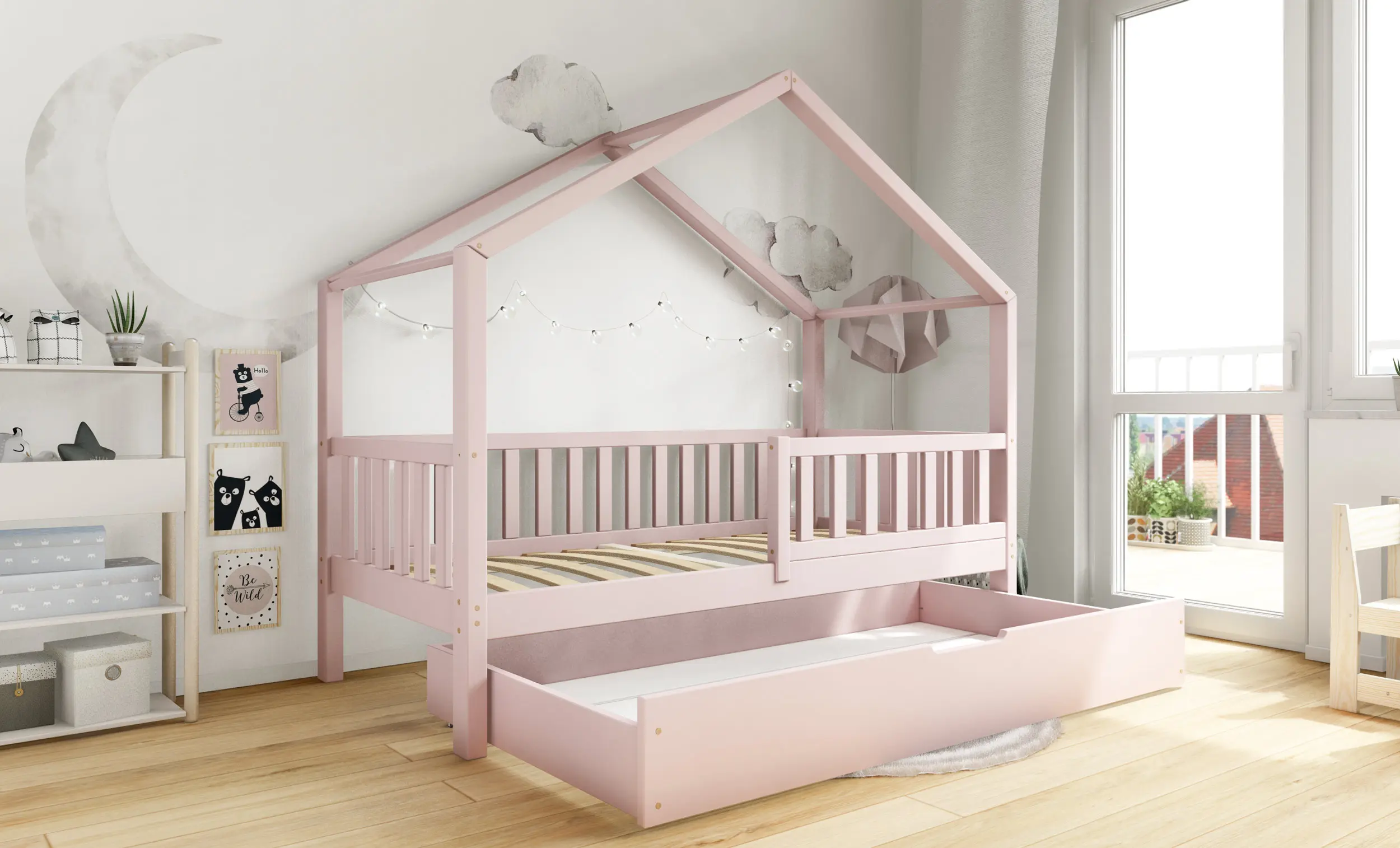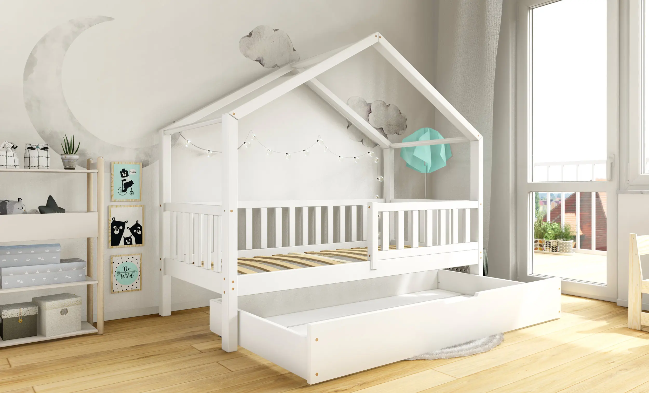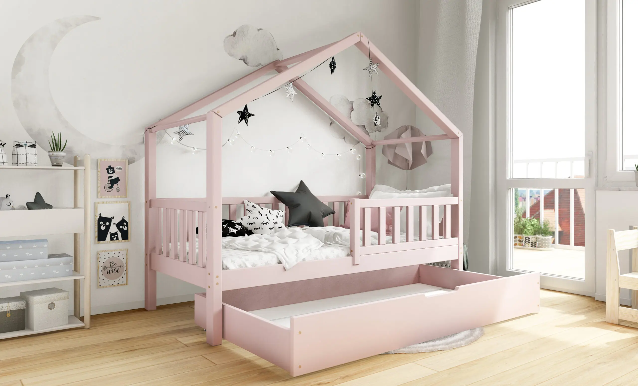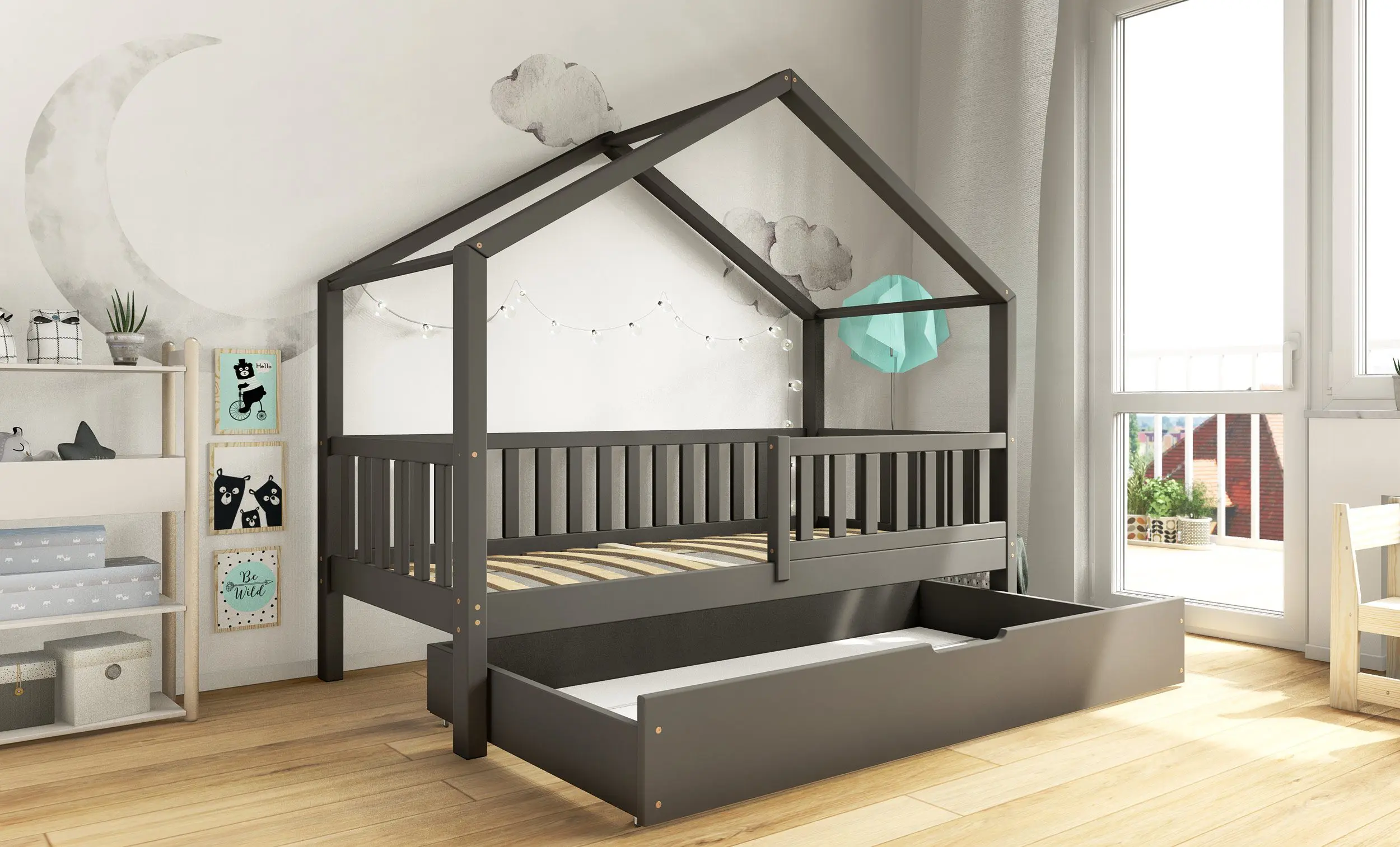 Solidne łóżeczko dziecięce DOMI BIS zapewnia stabilne i wytrzymale miejsce do snu nawet dla największego rozrabiaki. Od teraz nie musisz się martwić o wytrzymałość i jakość wykonania podłoża do snu twojego dziecka. Naturalne materiały, ekologiczne farby i ręcznie szlifowane boki o zaokrąglonych brzegach zadbają o bezpieczeństwo podczas zabawy czy w trakcie nocnego odpoczynku każdego szkraba. Dodatkowo model jest wyposażony w szufladę na pościel. Łóżko w kształcie domku inspiruje dzieci do wyobraźni i rozwijania kreatywności. Dzieci mogą z łatwością przystosować przestrzeń łóżka do swoich własnych gier i zabaw, co pobudza ich rozwój emocjonalny i umysłowy.