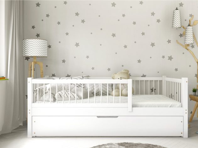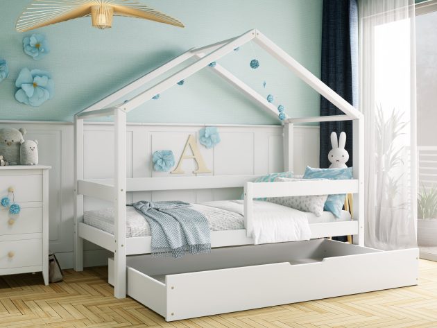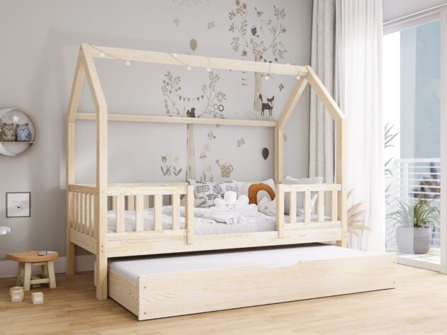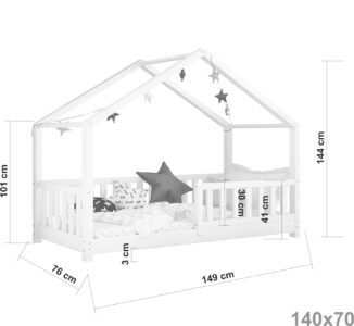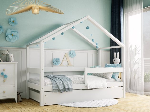 Skandynawskie łóżeczko domek DOMI to doskonała propozycja bezpiecznego i stabilnego mebla do snu zarówno dla dziewczynki, jak i chłopca. Naturalne surowce, precyzyjne wykonanie, gładkie powierzchnie oraz szeroki wybór rozmiarów i kolorów to główne zalety prezentowanego modelu. Łóżko DOMI wyróżnia się ponadto efektownym daszkiem o niestandardowej budowie i barierkami płotek.