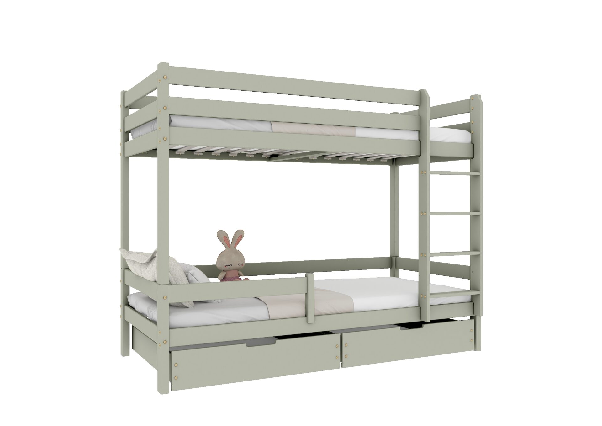 W modelu łóżka piętrowego EDDIE BIS szuflada jest praktycznym dodatkiem zwiększającym funkcjonalność całego mebla. Umieszczona pod dolnym łóżkiem, oferuje dodatkową, ukrytą przestrzeń, idealną do przechowywania różnych przedmiotów, takich jak pościel, zabawki czy sezonowe ubrania pozwalając na utrzymanie porządku i lepszą organizację w pokoju dziecięcym.