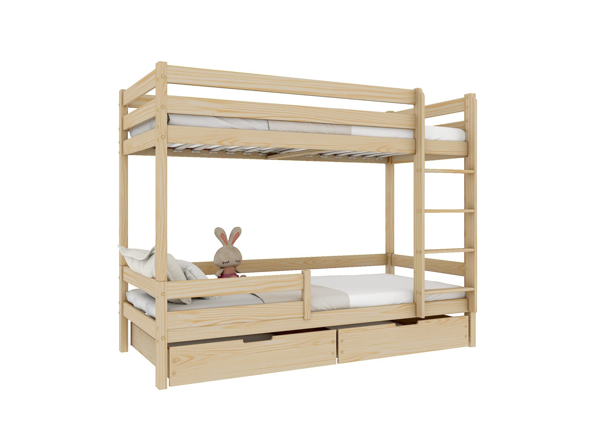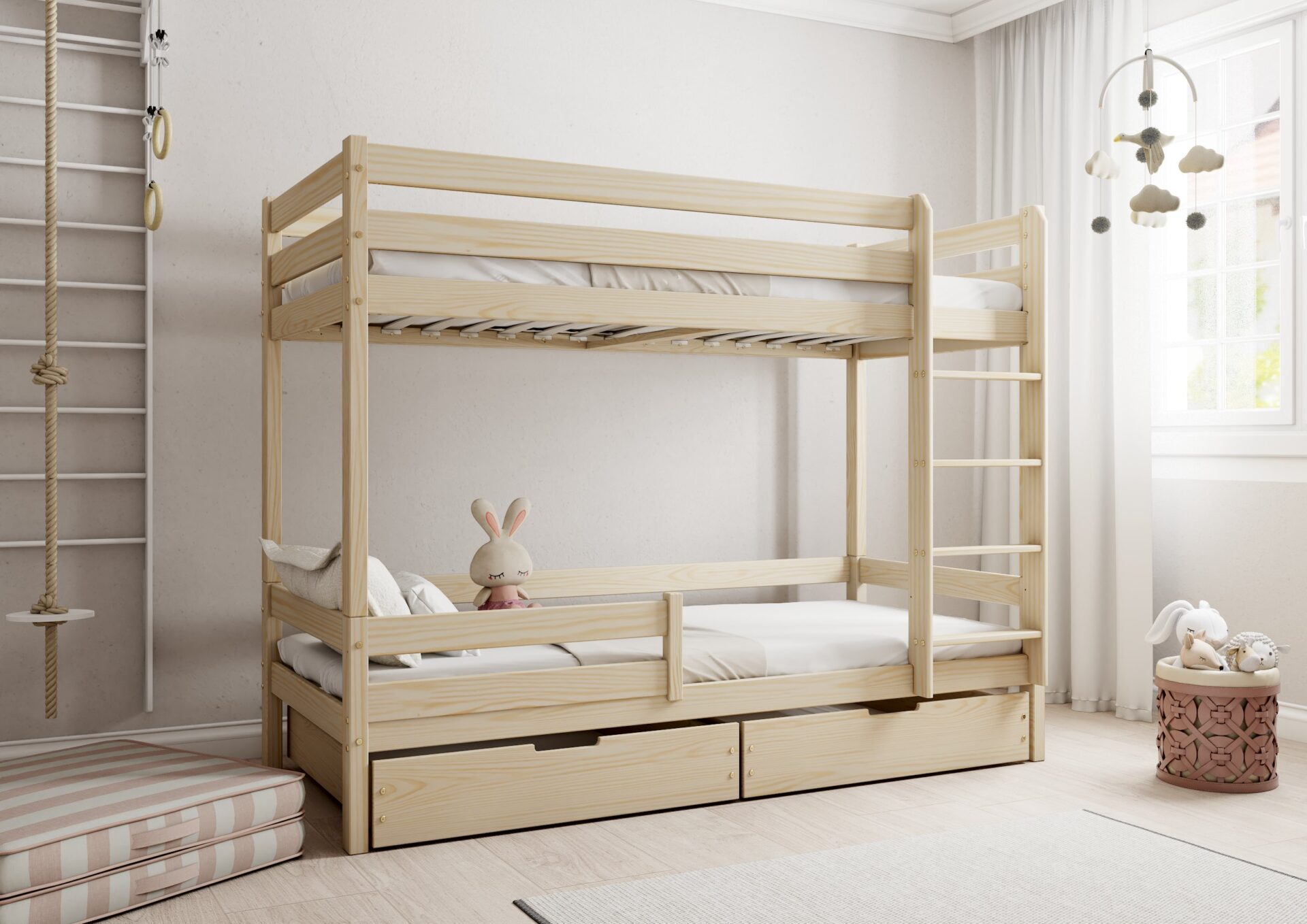 EDDIE – sosnowe łóżko piętrowe z prostymi barierkami