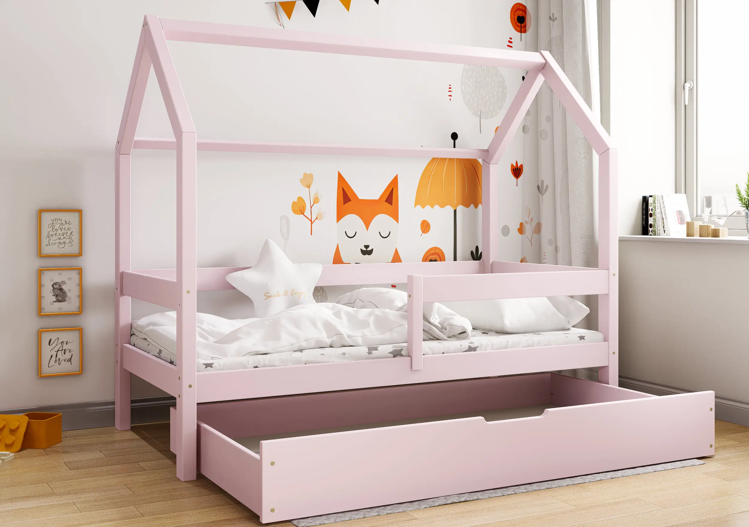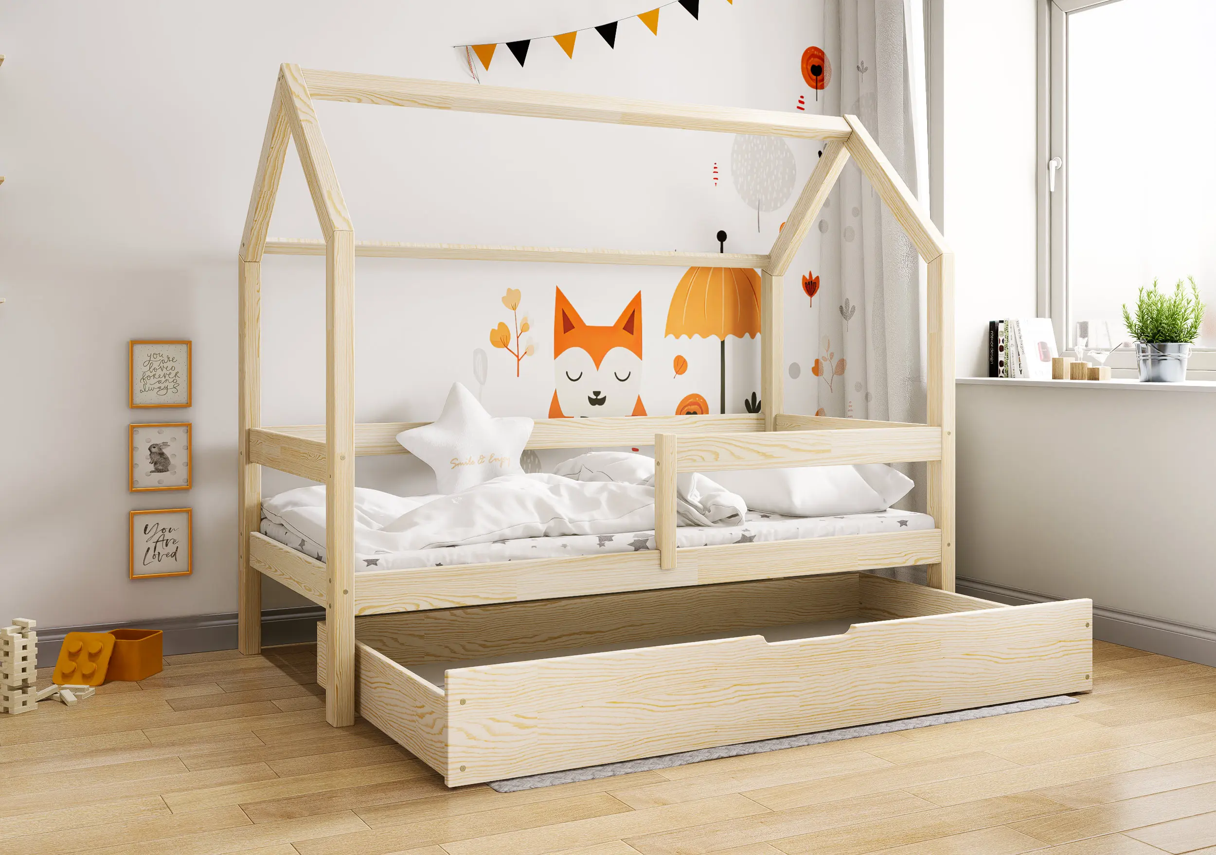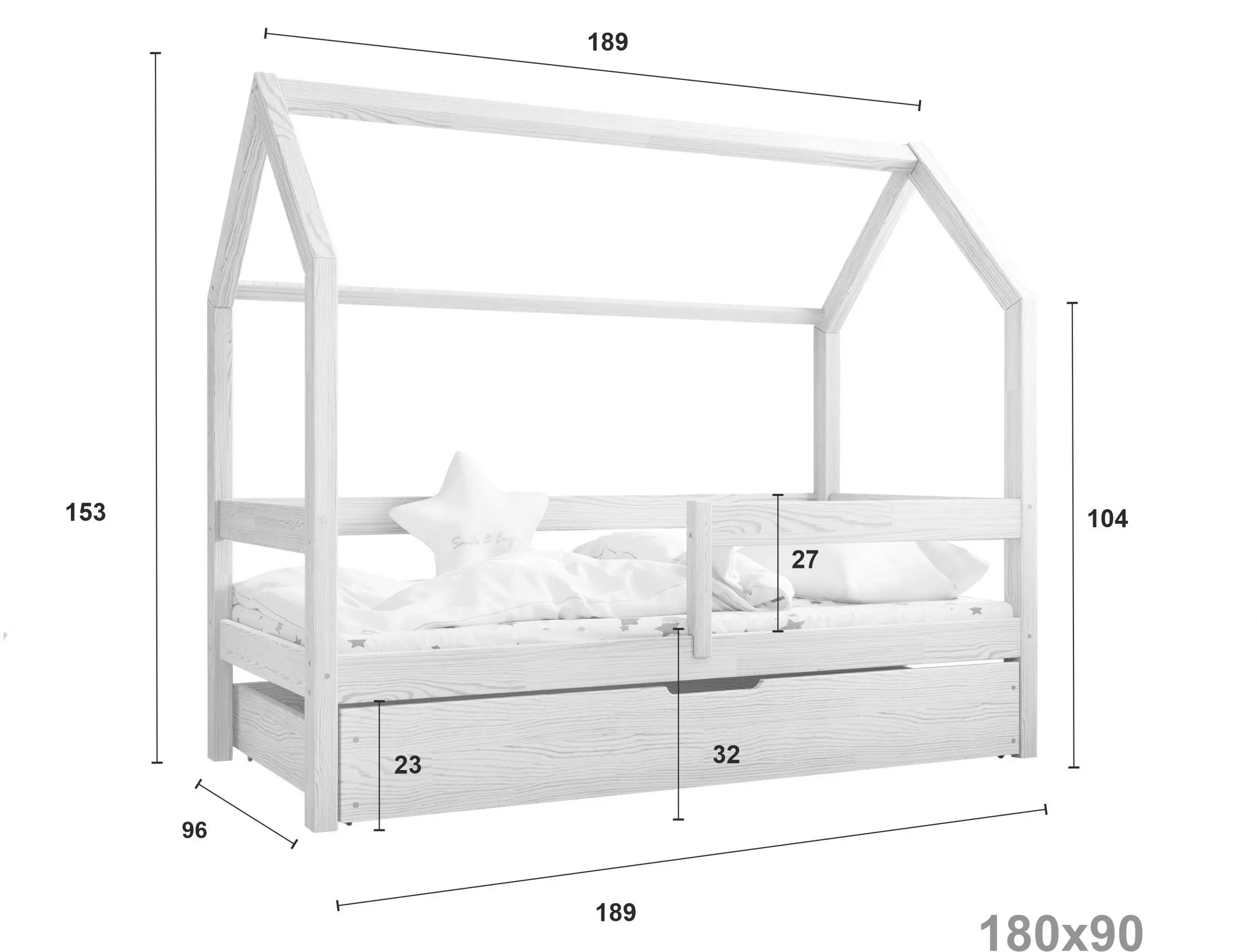 Łóżko dziecięce Flo Bis, swoją skandynawską stylistyką rozbudzi wyobraźnię i kreatywność Twojego malucha. Nietuzinkowa rama łóżka w kształcie domku z prostymi barierkami, w otoczeniu delikatnego oświetlenia wiszących lampek, miękkich zasłon czy kolorowych girland, oferuje nieograniczone możliwości aranżacyjne. Jeśli doda się do tego wysoką wytrzymałość mebla, precyzję jego wykonania oraz użycie wyłącznie naturalnych i ekologicznych surowców, to otrzymujemy idealnie miejsce do snu dla Twojego dziecka. Prezentowany model wyposażony został w funkcjonalną szufladę na pościel, wysuwaną na rolkach o miękkiej gumowej powłoce zabezpieczającej podłogę przez zarysowaniami.