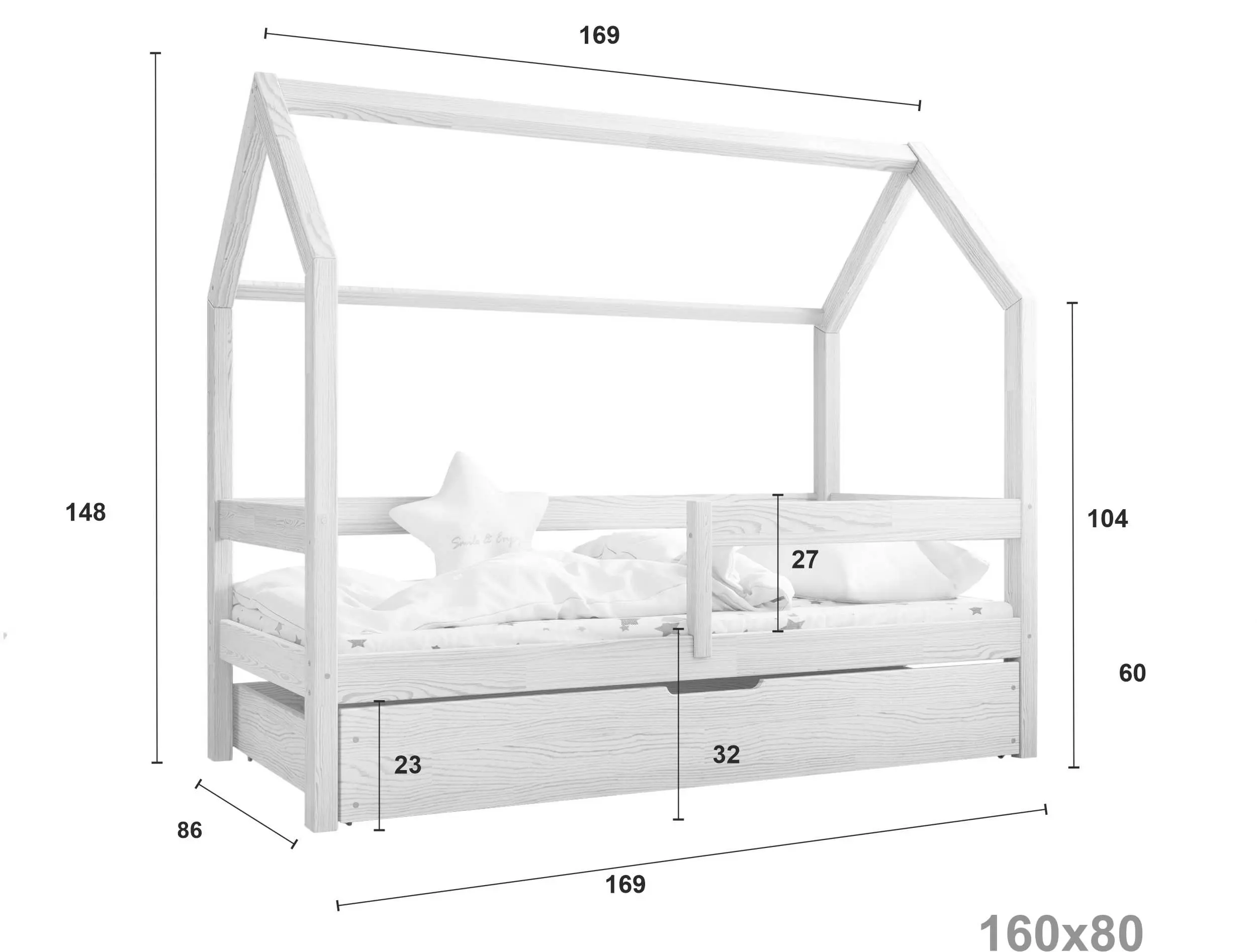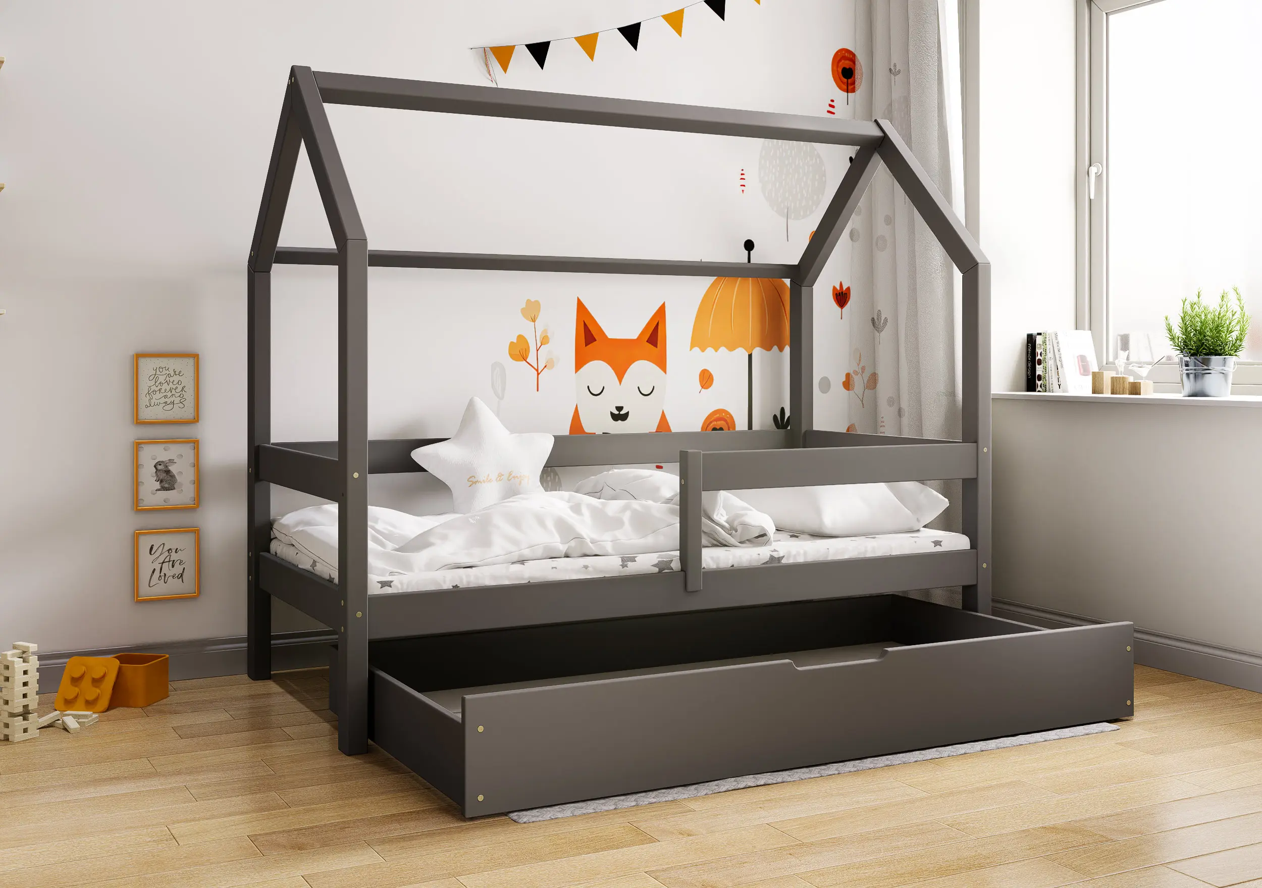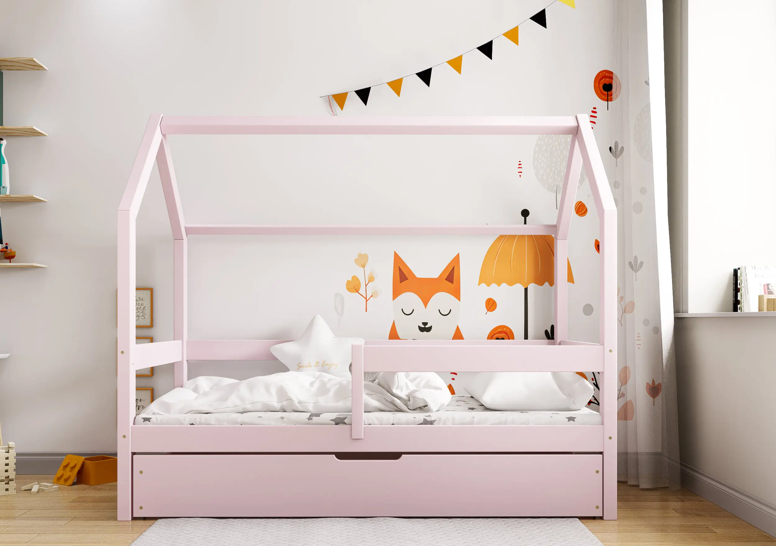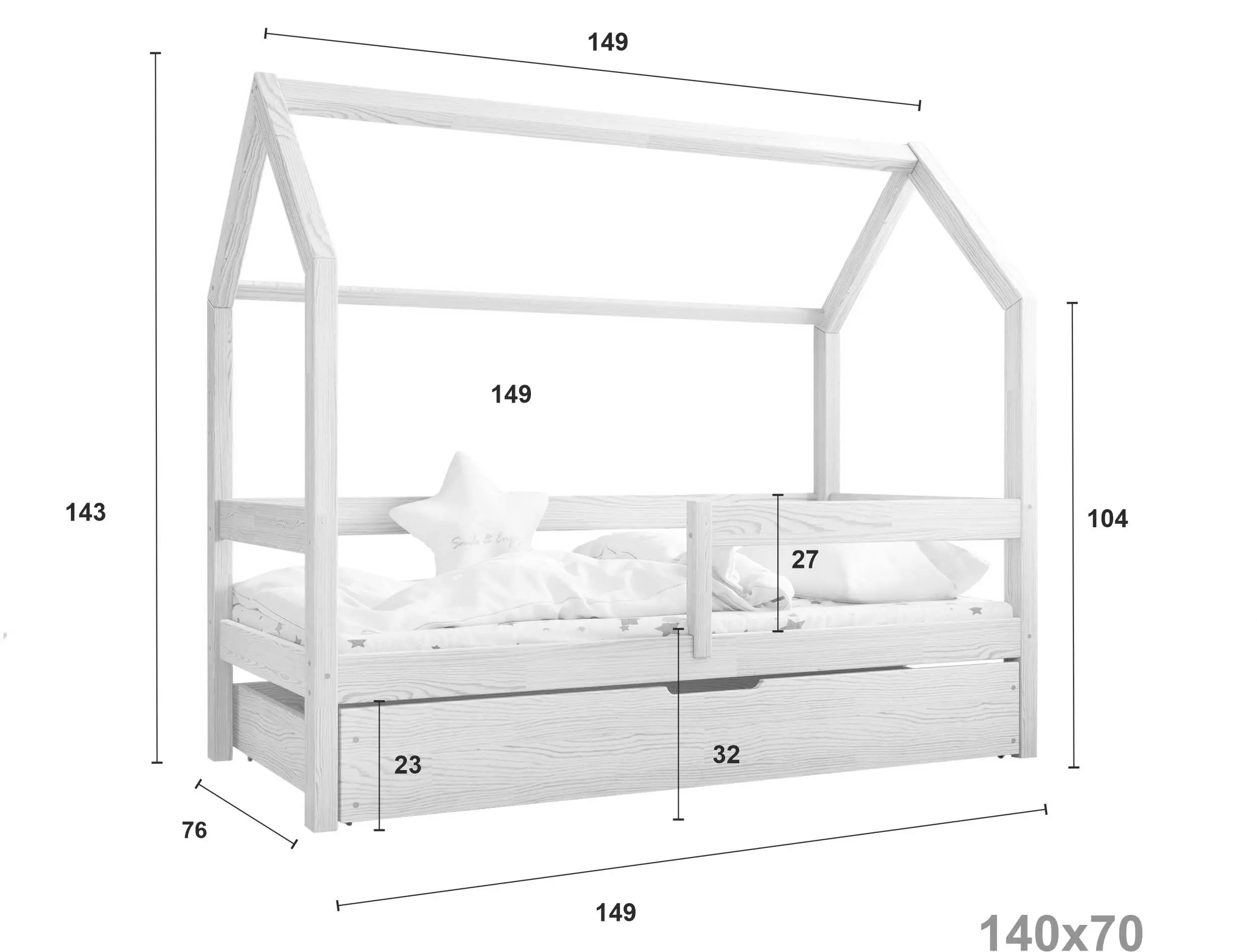 Łóżko dziecięce Flo Bis, swoją skandynawską stylistyką rozbudzi wyobraźnię i kreatywność Twojego malucha. Nietuzinkowa rama łóżka w kształcie domku z prostymi barierkami, w otoczeniu delikatnego oświetlenia wiszących lampek, miękkich zasłon czy kolorowych girland, oferuje nieograniczone możliwości aranżacyjne. Jeśli doda się do tego wysoką wytrzymałość mebla, precyzję jego wykonania oraz użycie wyłącznie naturalnych i ekologicznych surowców, to otrzymujemy idealnie miejsce do snu dla Twojego dziecka. Prezentowany model wyposażony został w funkcjonalną szufladę na pościel, wysuwaną na rolkach o miękkiej gumowej powłoce zabezpieczającej podłogę przez zarysowaniami.