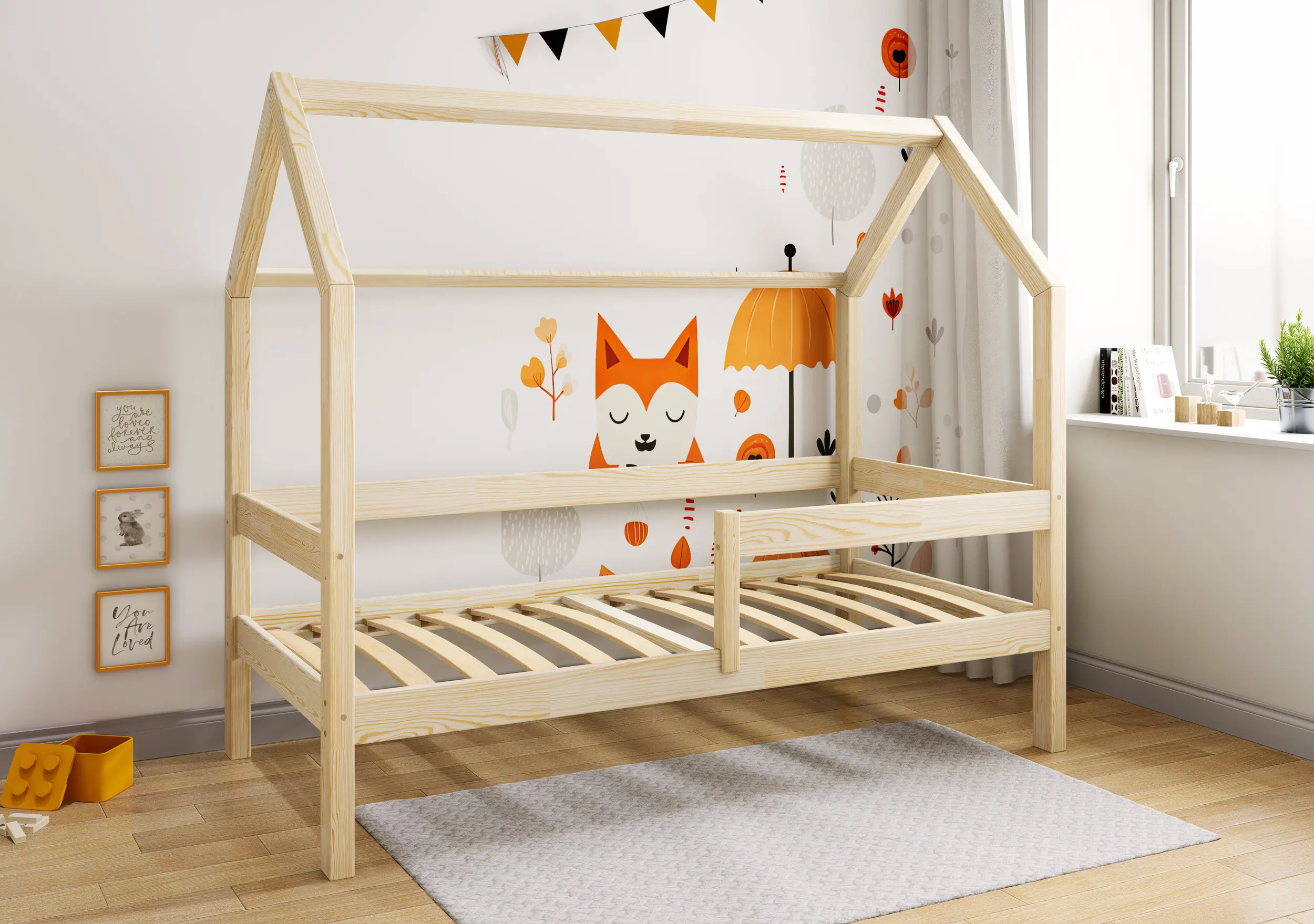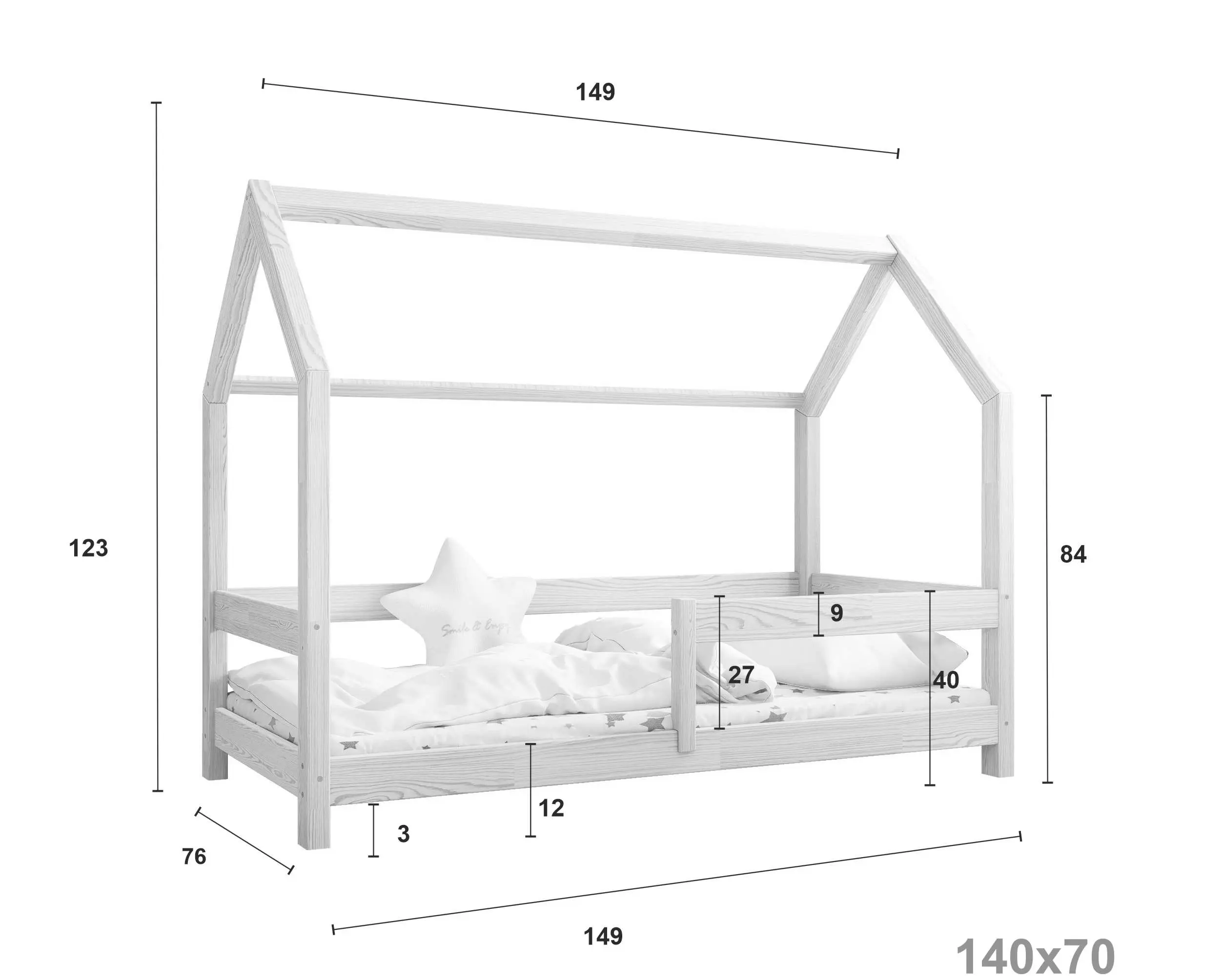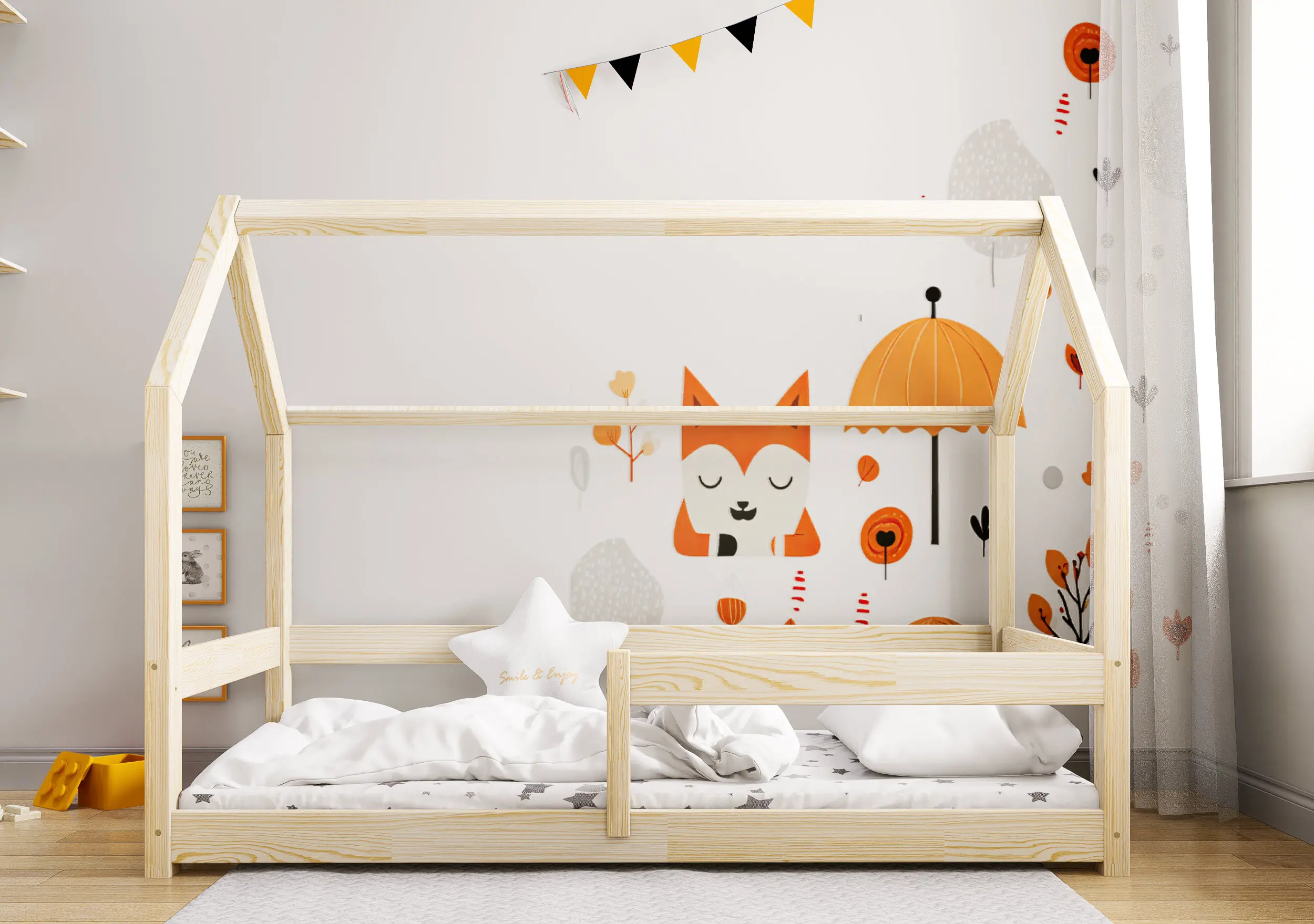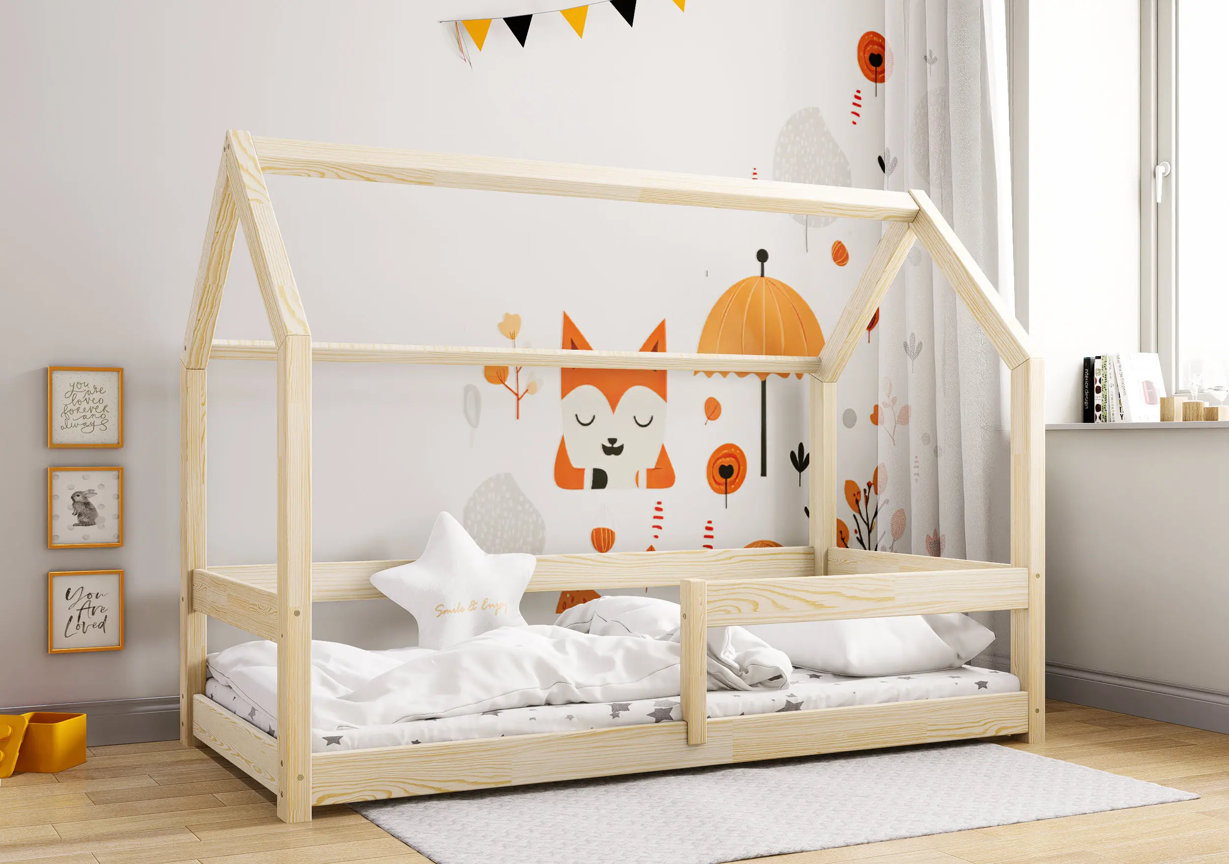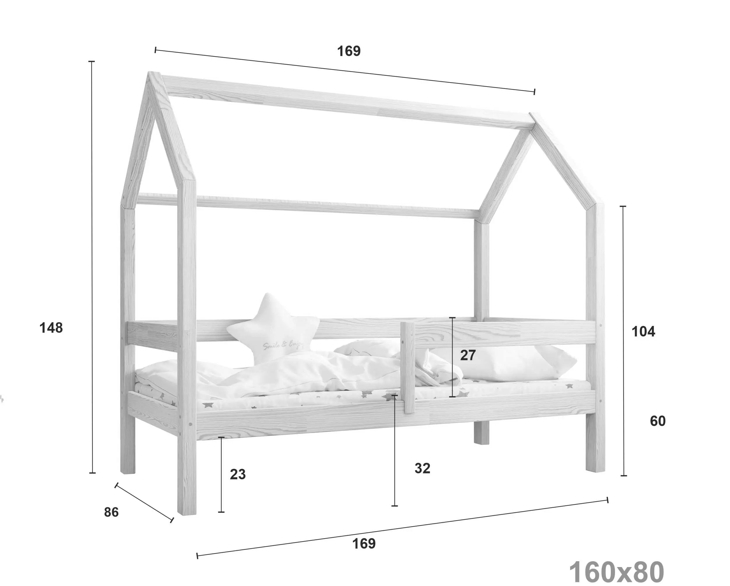 Łóżko dziecięce Flo rozbudzi wyobraźnię i kreatywność Twojego malucha. Naturalne surowce, precyzyjne wykonanie, a także bezpieczne dla zdrowia farby i lakiery to zaledwie kilka spośród wielu zalet naszego łóżeczka. Nietuzinkowa konstrukcja przypominająca domek oraz solidne barierki w formie desek nadają mu niepowtarzalnego stylu, tworząc jednocześnie bezpieczną przestrzeń do snu i zabawy dla najmłodszych. Dodatkowo aby zminimalizować ryzyko ewentualnych urazów krawędzie łóżka zostały delikatnie zaokrąglone, a brzegi starannie wyszlifowane. Łóżko Flo w towarzystwie delikatnego oświetlenia wiszących lampek, miękkich zasłon czy kolorowych girland, oferuje nieograniczone możliwości aranżacyjne oraz gwarantuje stworzenie przytulnego miejsca do wypoczynku dla Twojego dziecka.