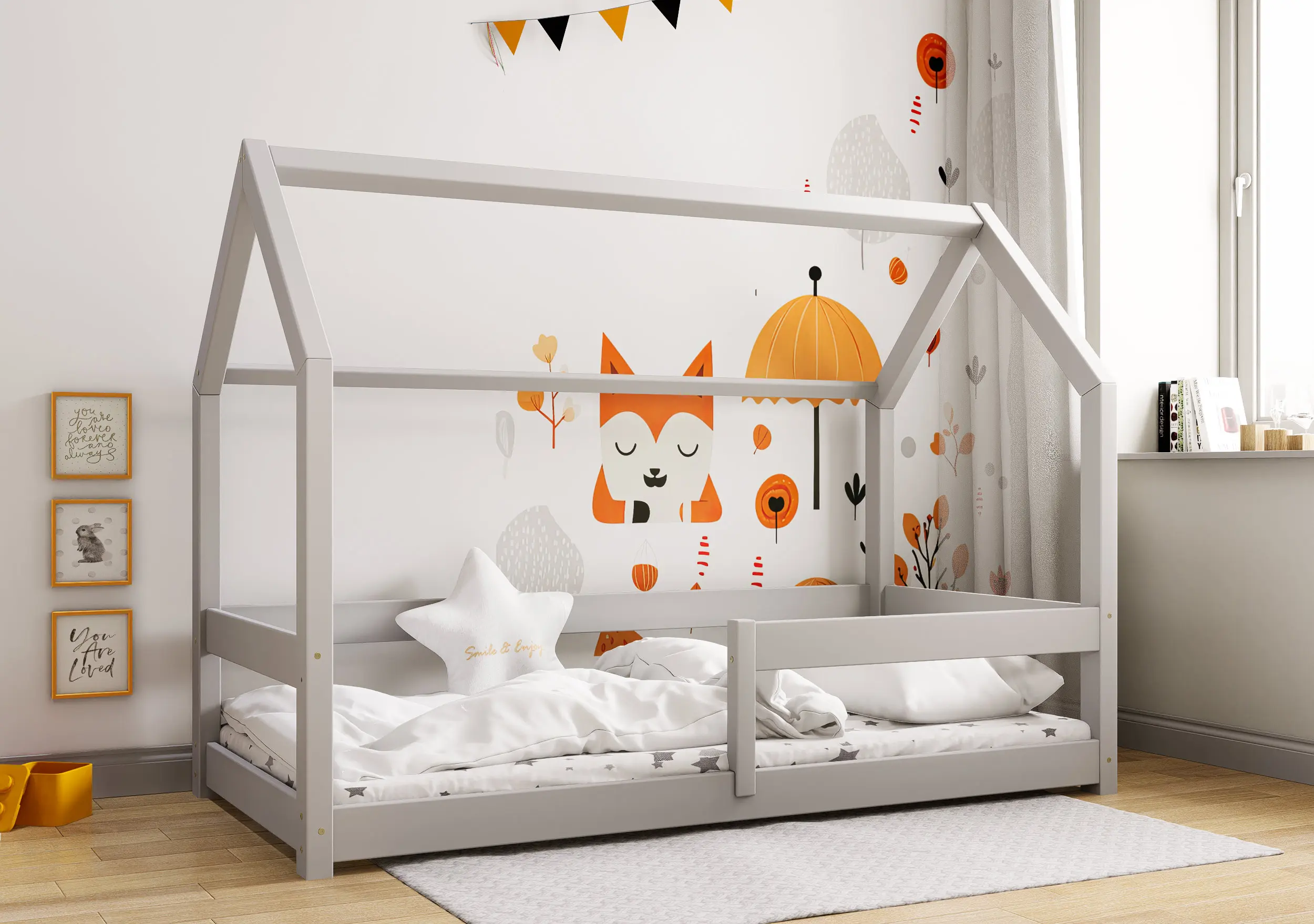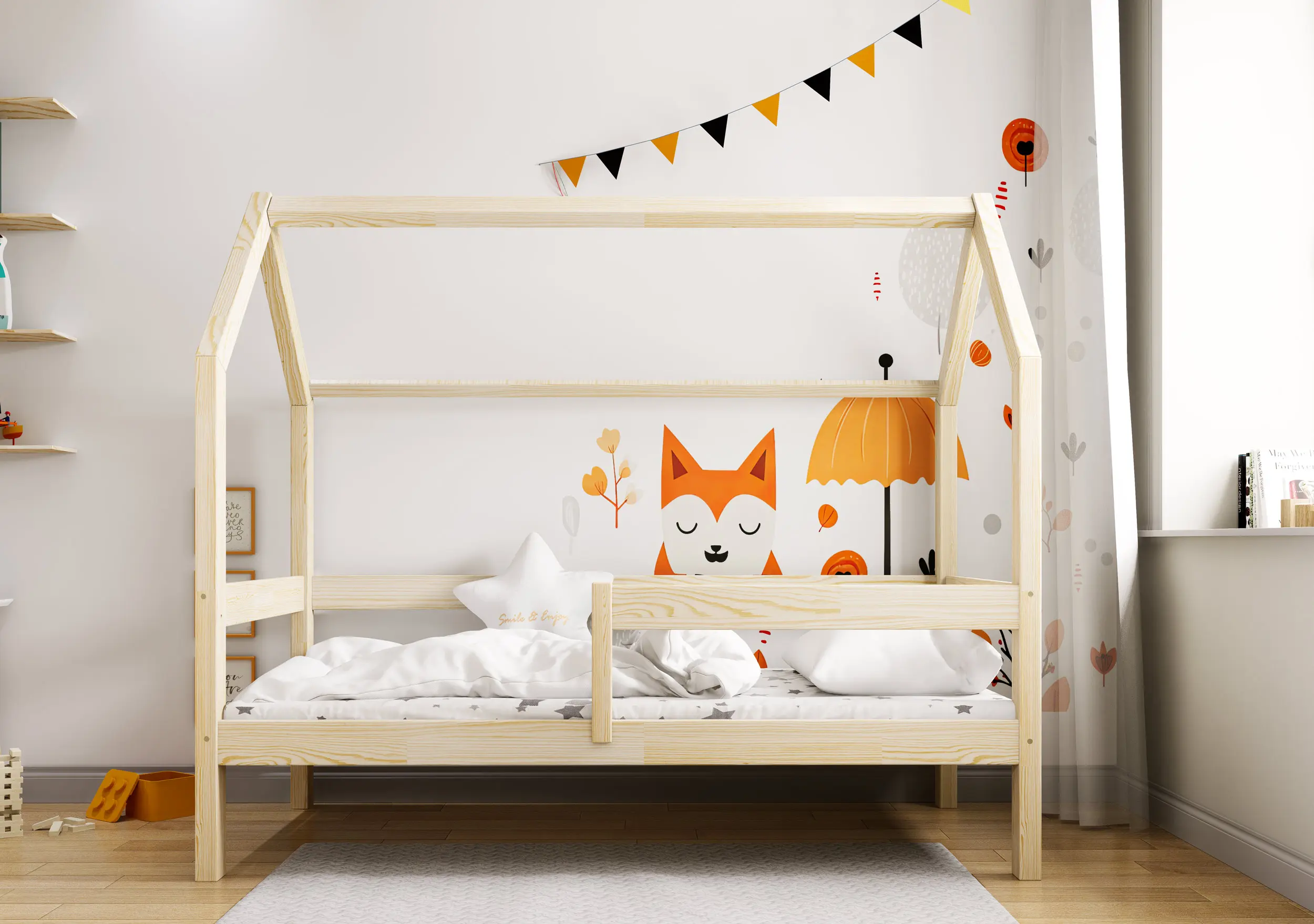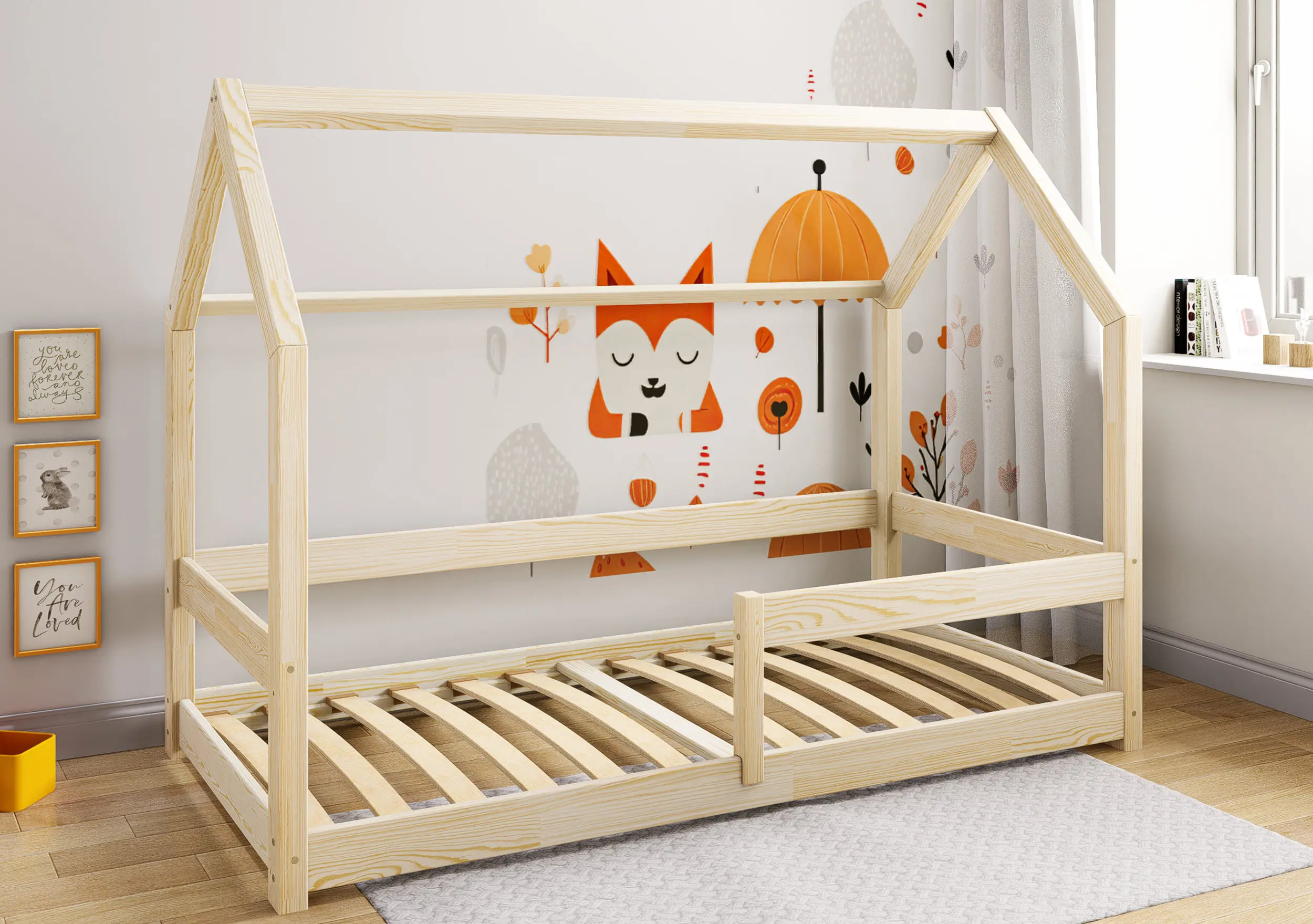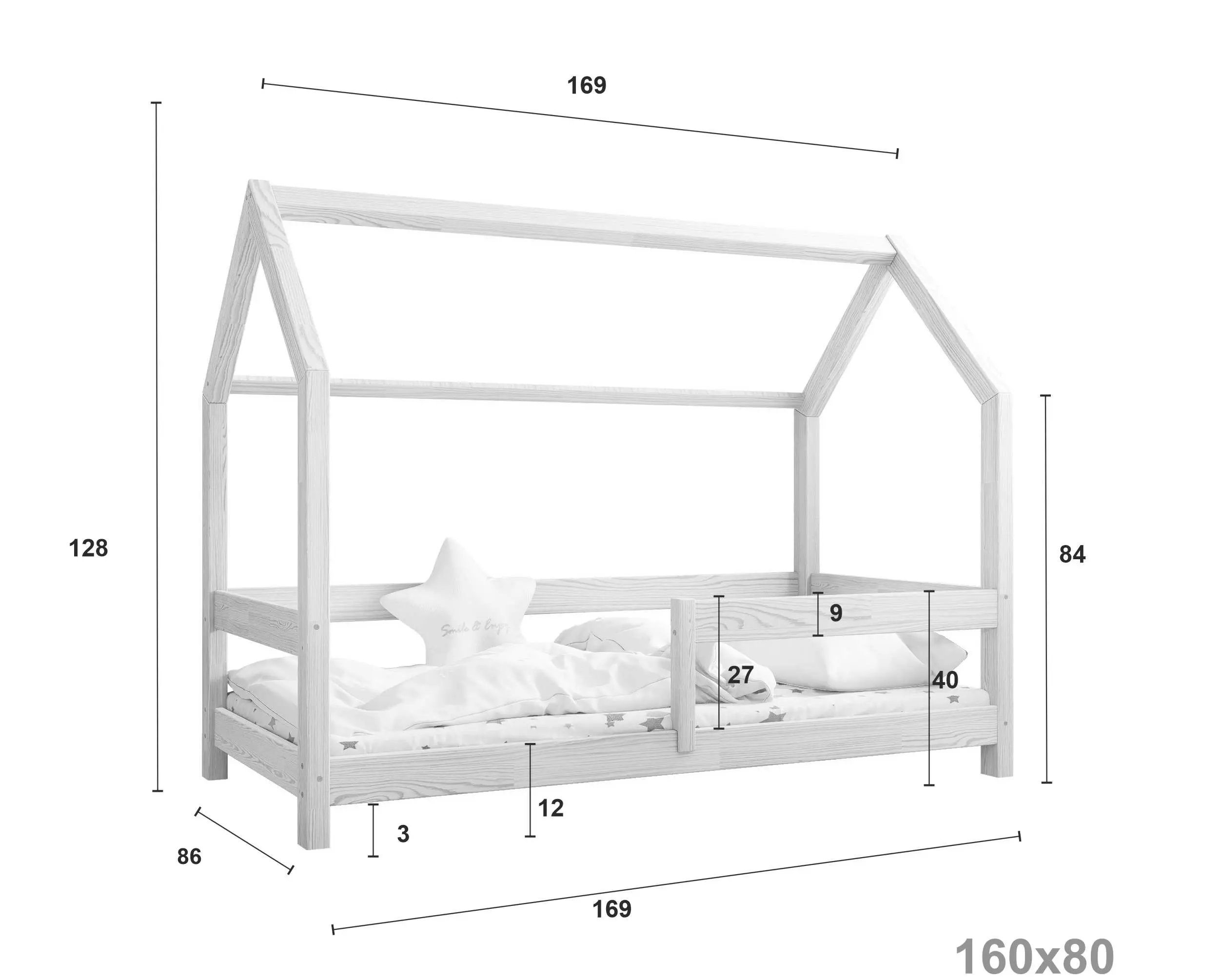 Łóżko dziecięce Flo rozbudzi wyobraźnię i kreatywność Twojego malucha. Naturalne surowce, precyzyjne wykonanie, a także bezpieczne dla zdrowia farby i lakiery to zaledwie kilka spośród wielu zalet naszego łóżeczka. Nietuzinkowa konstrukcja przypominająca domek oraz solidne barierki w formie desek nadają mu niepowtarzalnego stylu, tworząc jednocześnie bezpieczną przestrzeń do snu i zabawy dla najmłodszych. Dodatkowo aby zminimalizować ryzyko ewentualnych urazów krawędzie łóżka zostały delikatnie zaokrąglone, a brzegi starannie wyszlifowane. Łóżko Flo w towarzystwie delikatnego oświetlenia wiszących lampek, miękkich zasłon czy kolorowych girland, oferuje nieograniczone możliwości aranżacyjne oraz gwarantuje stworzenie przytulnego miejsca do wypoczynku dla Twojego dziecka.