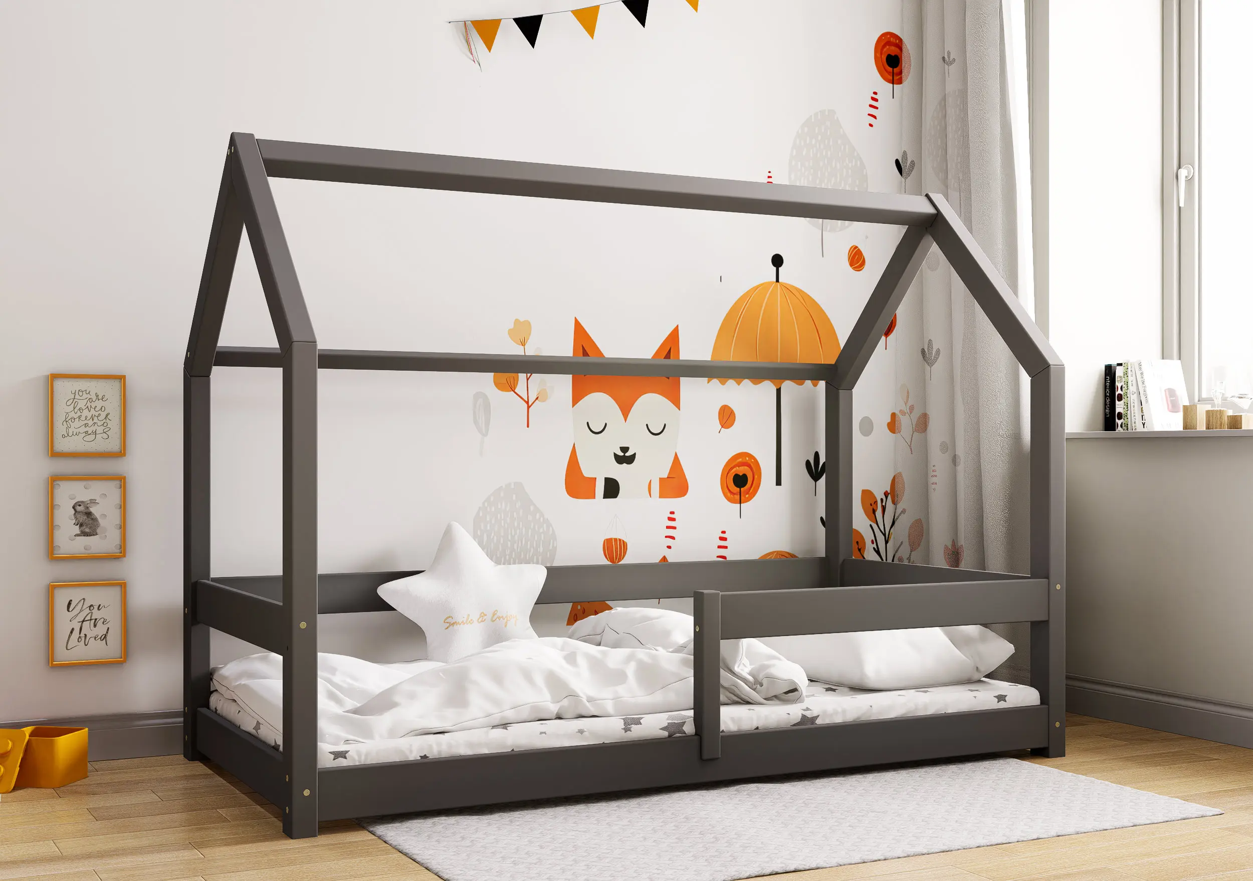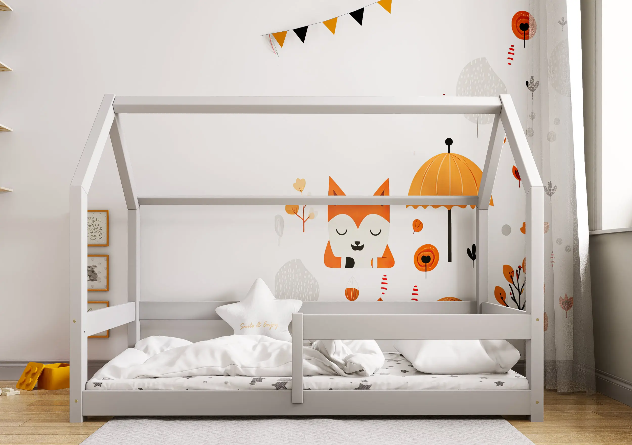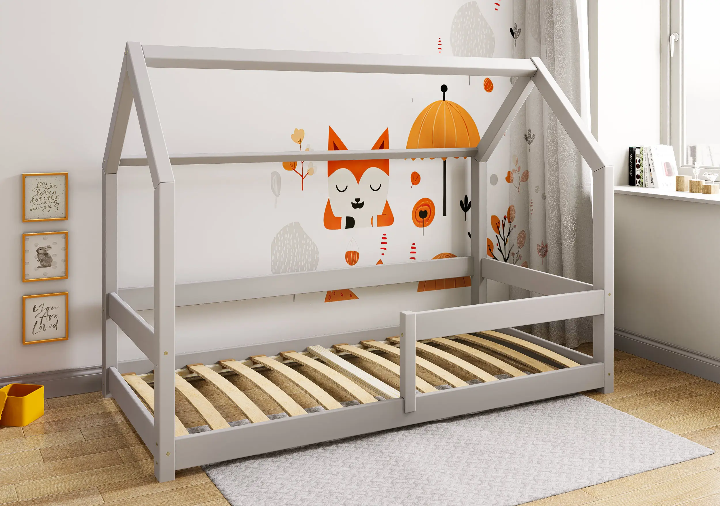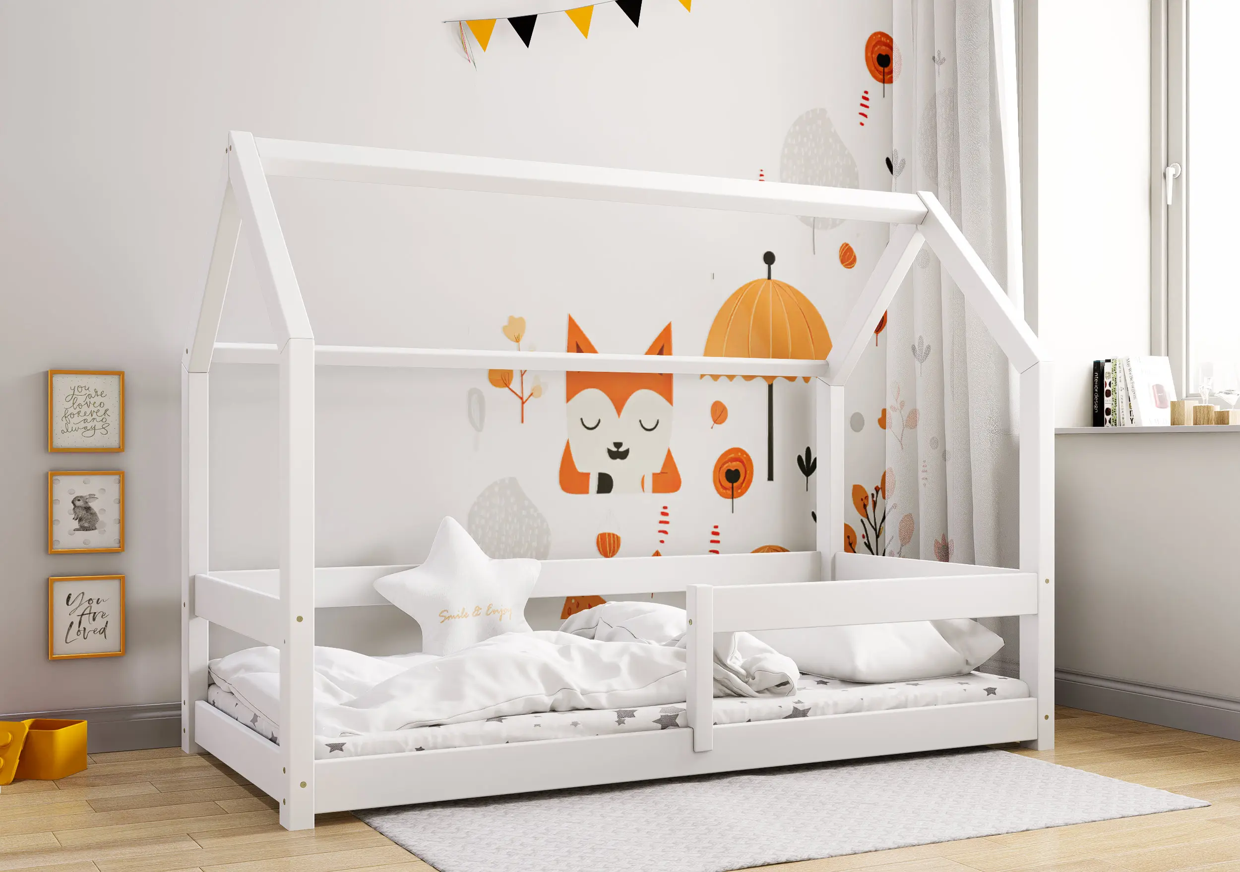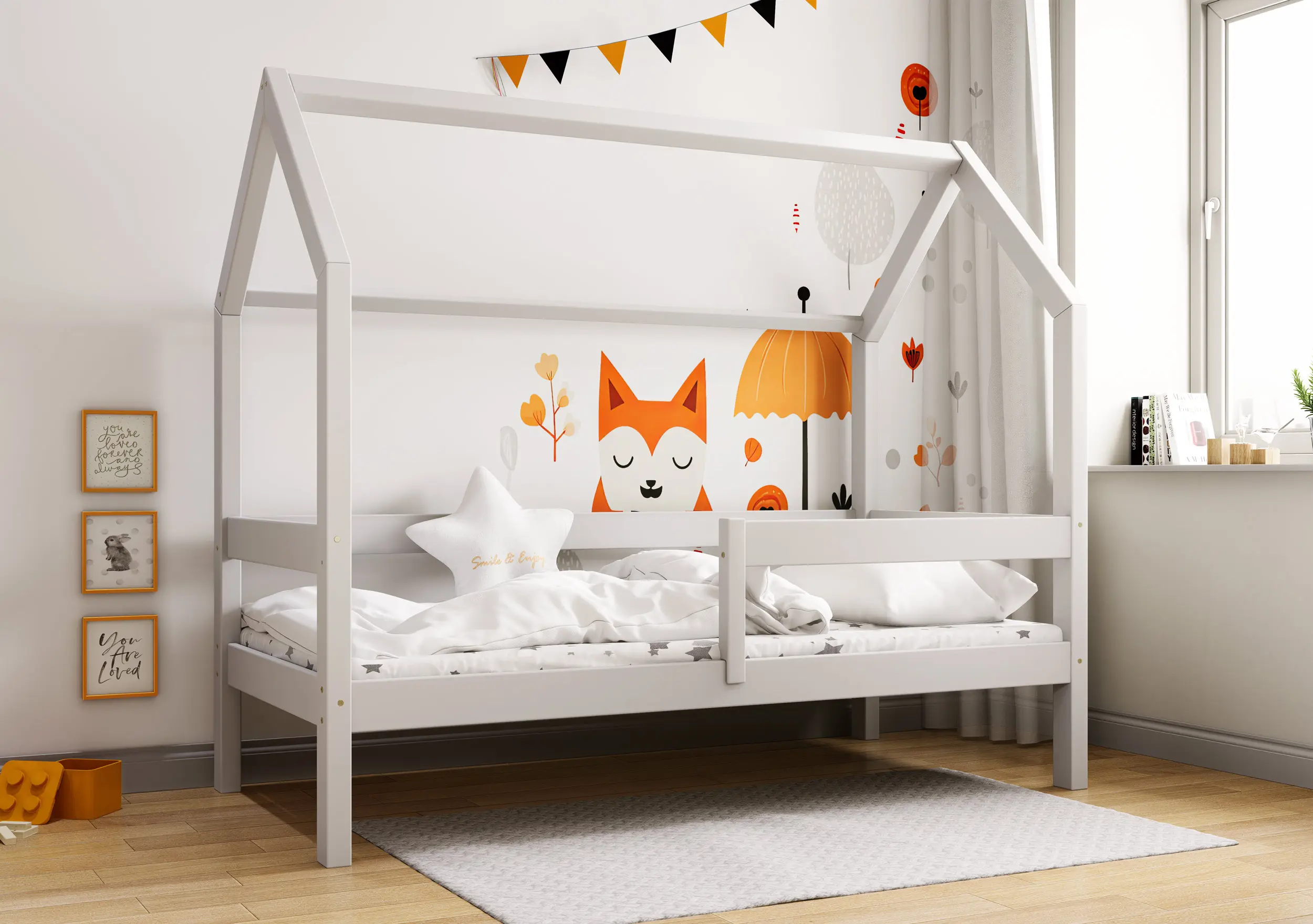 Łóżko dziecięce Flo rozbudzi wyobraźnię i kreatywność Twojego malucha. Naturalne surowce, precyzyjne wykonanie, a także bezpieczne dla zdrowia farby i lakiery to zaledwie kilka spośród wielu zalet naszego łóżeczka. Nietuzinkowa konstrukcja przypominająca domek oraz solidne barierki w formie desek nadają mu niepowtarzalnego stylu, tworząc jednocześnie bezpieczną przestrzeń do snu i zabawy dla najmłodszych. Dodatkowo aby zminimalizować ryzyko ewentualnych urazów krawędzie łóżka zostały delikatnie zaokrąglone, a brzegi starannie wyszlifowane. Łóżko Flo w towarzystwie delikatnego oświetlenia wiszących lampek, miękkich zasłon czy kolorowych girland, oferuje nieograniczone możliwości aranżacyjne oraz gwarantuje stworzenie przytulnego miejsca do wypoczynku dla Twojego dziecka.