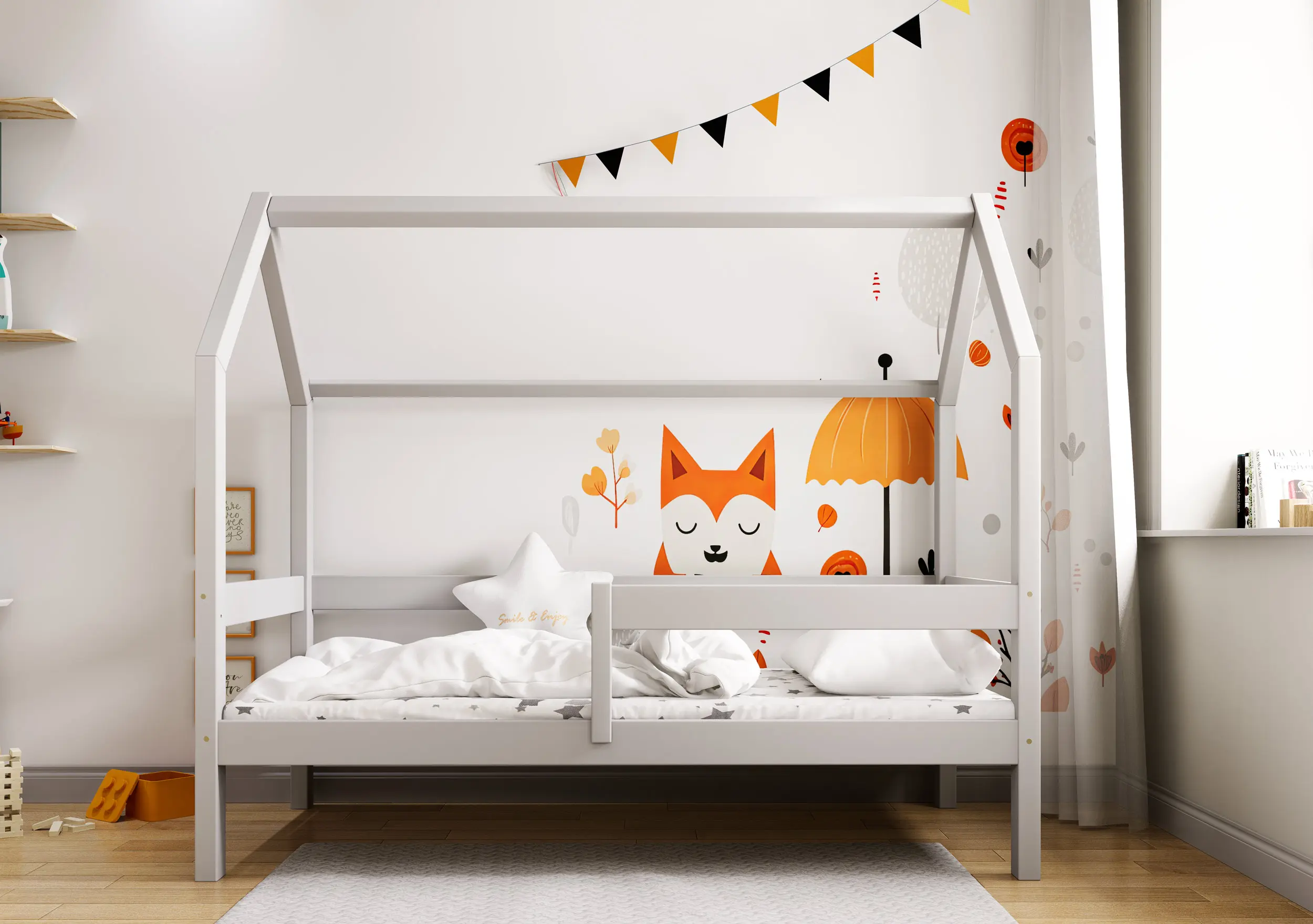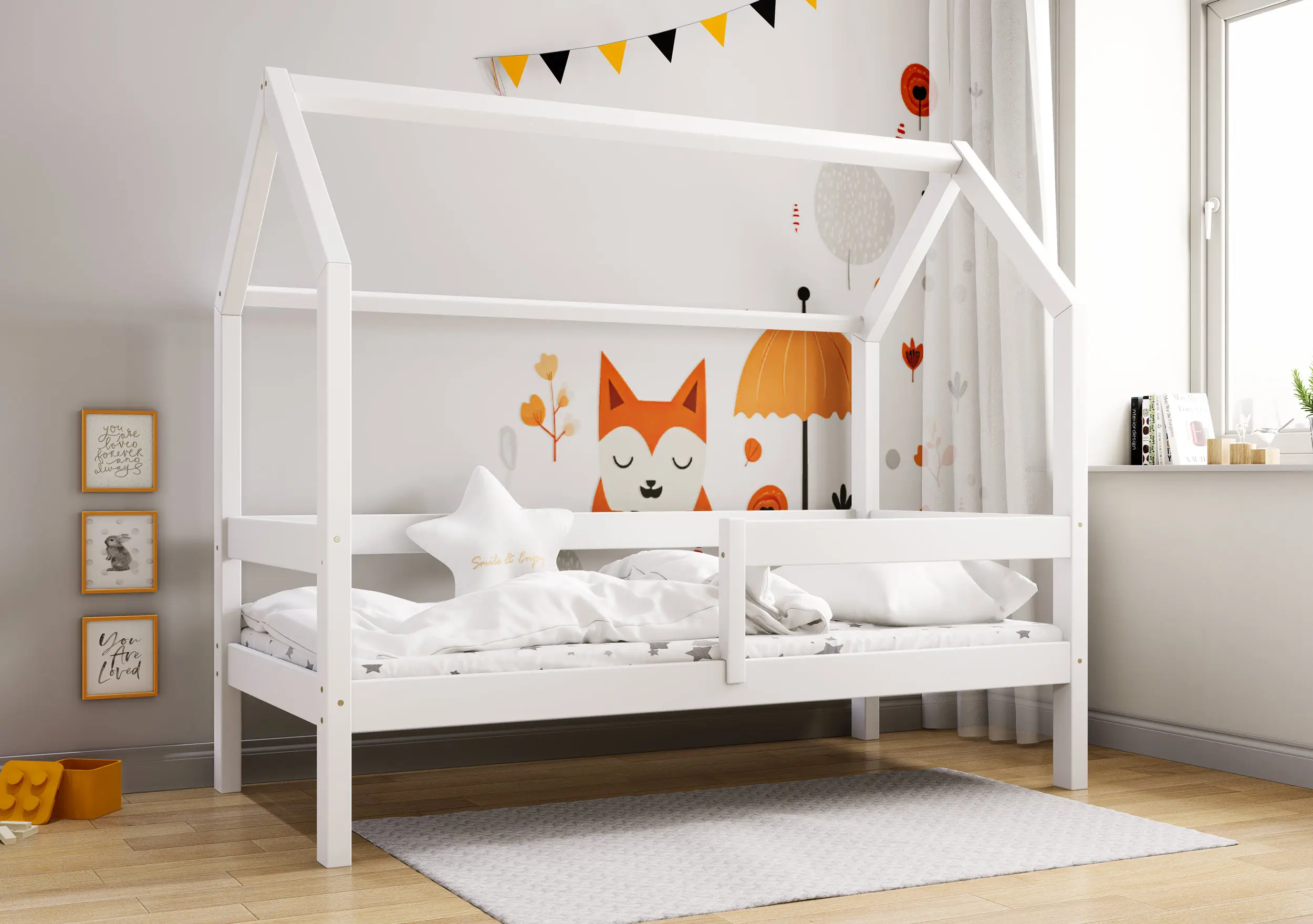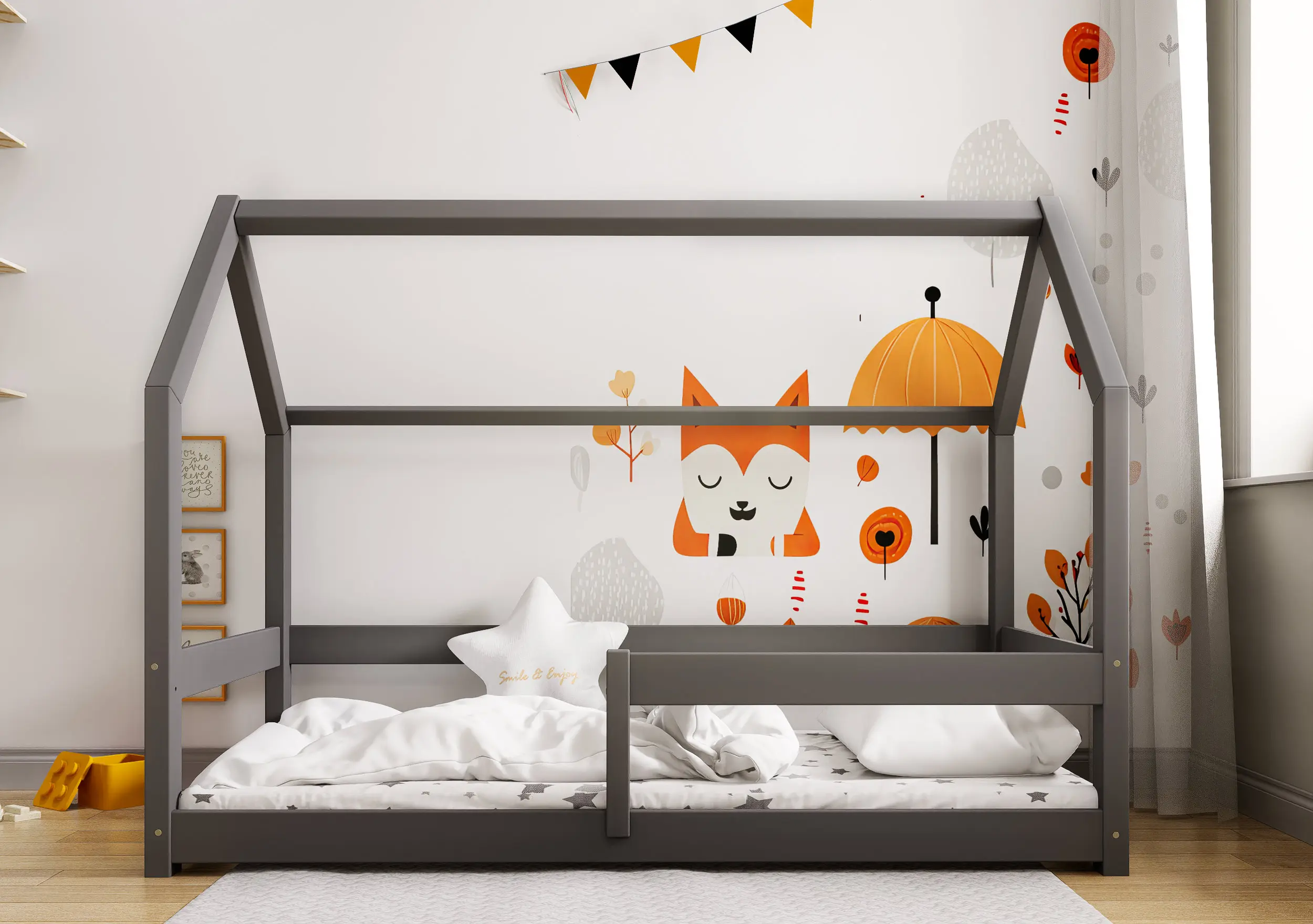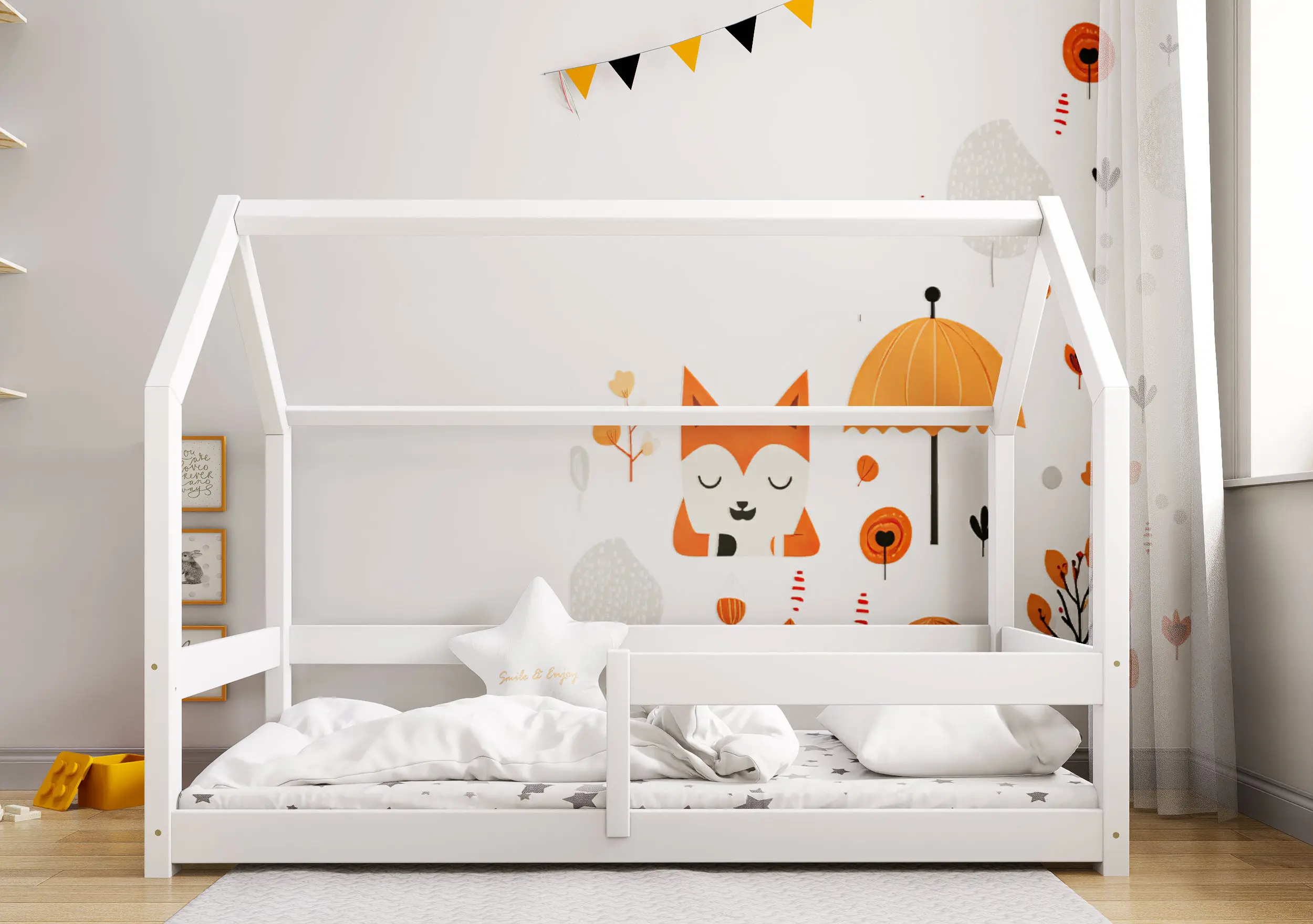 Łóżko dziecięce Flo rozbudzi wyobraźnię i kreatywność Twojego malucha. Naturalne surowce, precyzyjne wykonanie, a także bezpieczne dla zdrowia farby i lakiery to zaledwie kilka spośród wielu zalet naszego łóżeczka. Nietuzinkowa konstrukcja przypominająca domek oraz solidne barierki w formie desek nadają mu niepowtarzalnego stylu, tworząc jednocześnie bezpieczną przestrzeń do snu i zabawy dla najmłodszych. Dodatkowo aby zminimalizować ryzyko ewentualnych urazów krawędzie łóżka zostały delikatnie zaokrąglone, a brzegi starannie wyszlifowane. Łóżko Flo w towarzystwie delikatnego oświetlenia wiszących lampek, miękkich zasłon czy kolorowych girland, oferuje nieograniczone możliwości aranżacyjne oraz gwarantuje stworzenie przytulnego miejsca do wypoczynku dla Twojego dziecka.