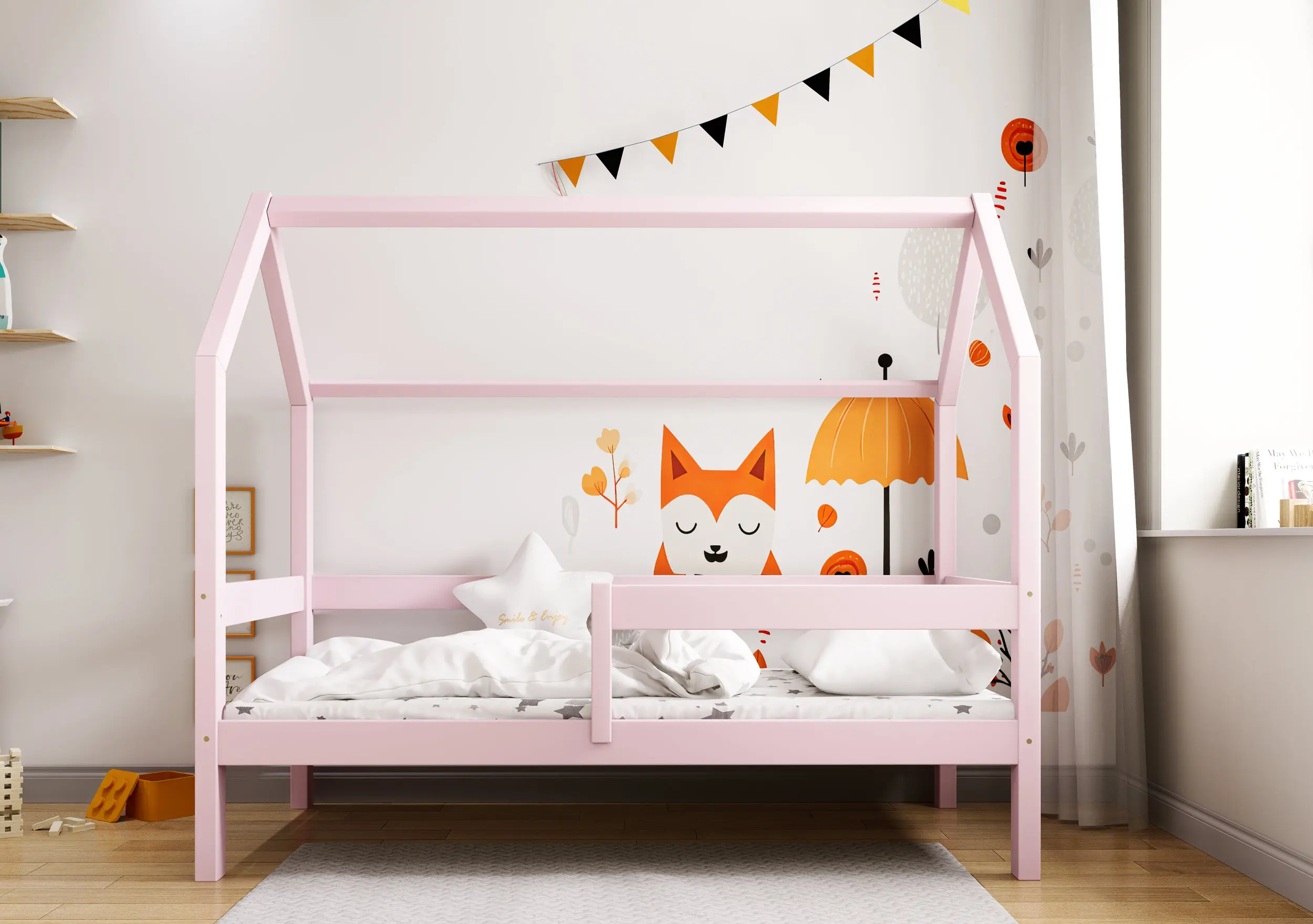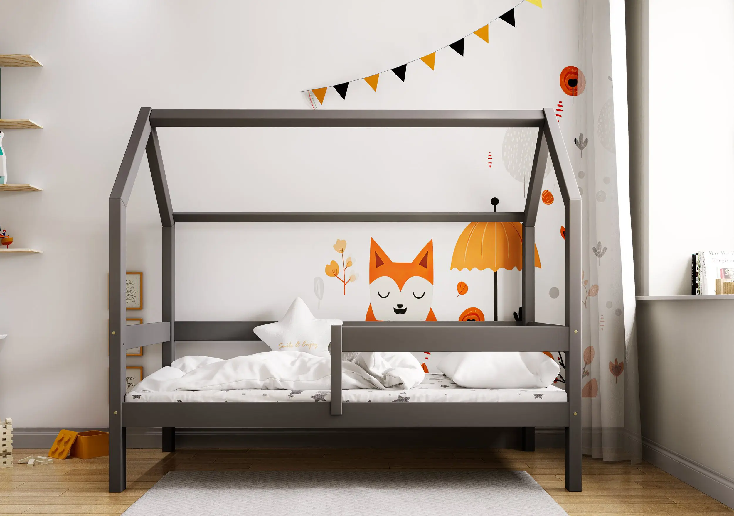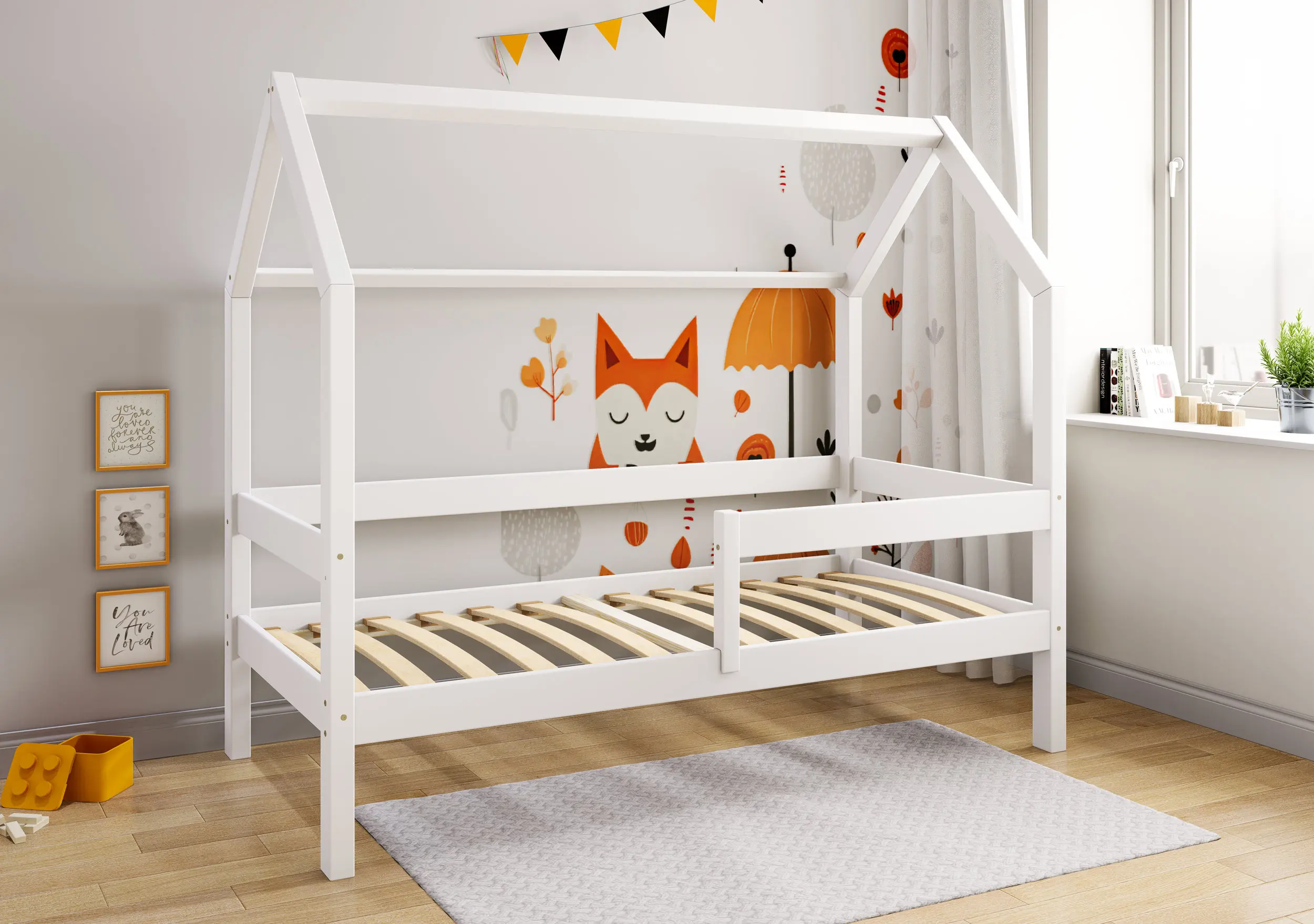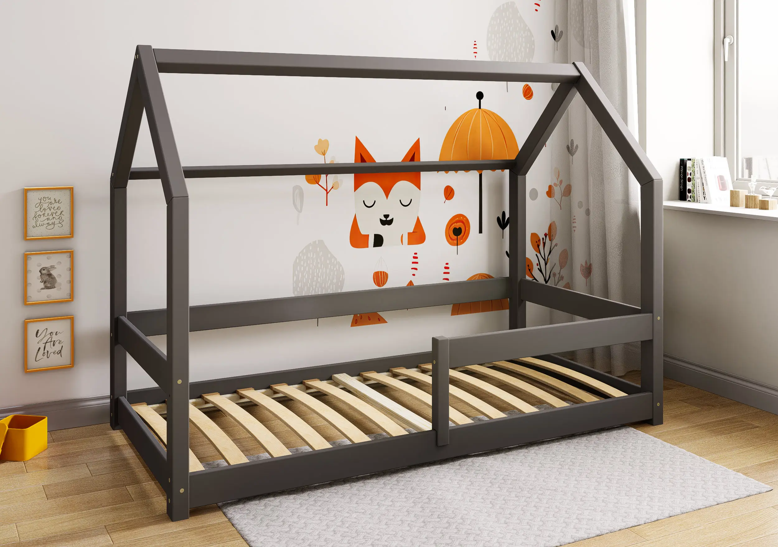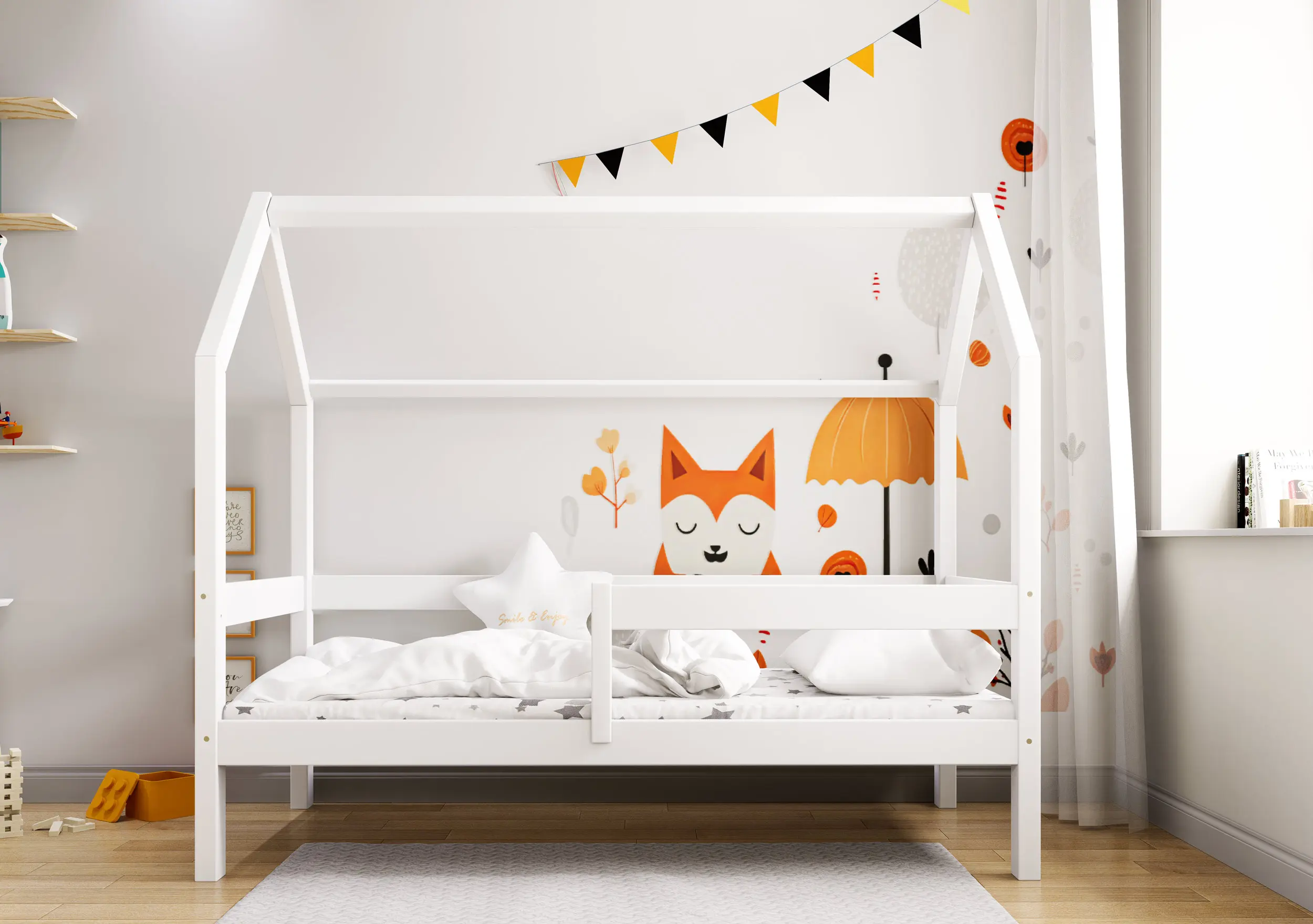 Łóżko dziecięce Flo rozbudzi wyobraźnię i kreatywność Twojego malucha. Naturalne surowce, precyzyjne wykonanie, a także bezpieczne dla zdrowia farby i lakiery to zaledwie kilka spośród wielu zalet naszego łóżeczka. Nietuzinkowa konstrukcja przypominająca domek oraz solidne barierki w formie desek nadają mu niepowtarzalnego stylu, tworząc jednocześnie bezpieczną przestrzeń do snu i zabawy dla najmłodszych. Dodatkowo aby zminimalizować ryzyko ewentualnych urazów krawędzie łóżka zostały delikatnie zaokrąglone, a brzegi starannie wyszlifowane. Łóżko Flo w towarzystwie delikatnego oświetlenia wiszących lampek, miękkich zasłon czy kolorowych girland, oferuje nieograniczone możliwości aranżacyjne oraz gwarantuje stworzenie przytulnego miejsca do wypoczynku dla Twojego dziecka.