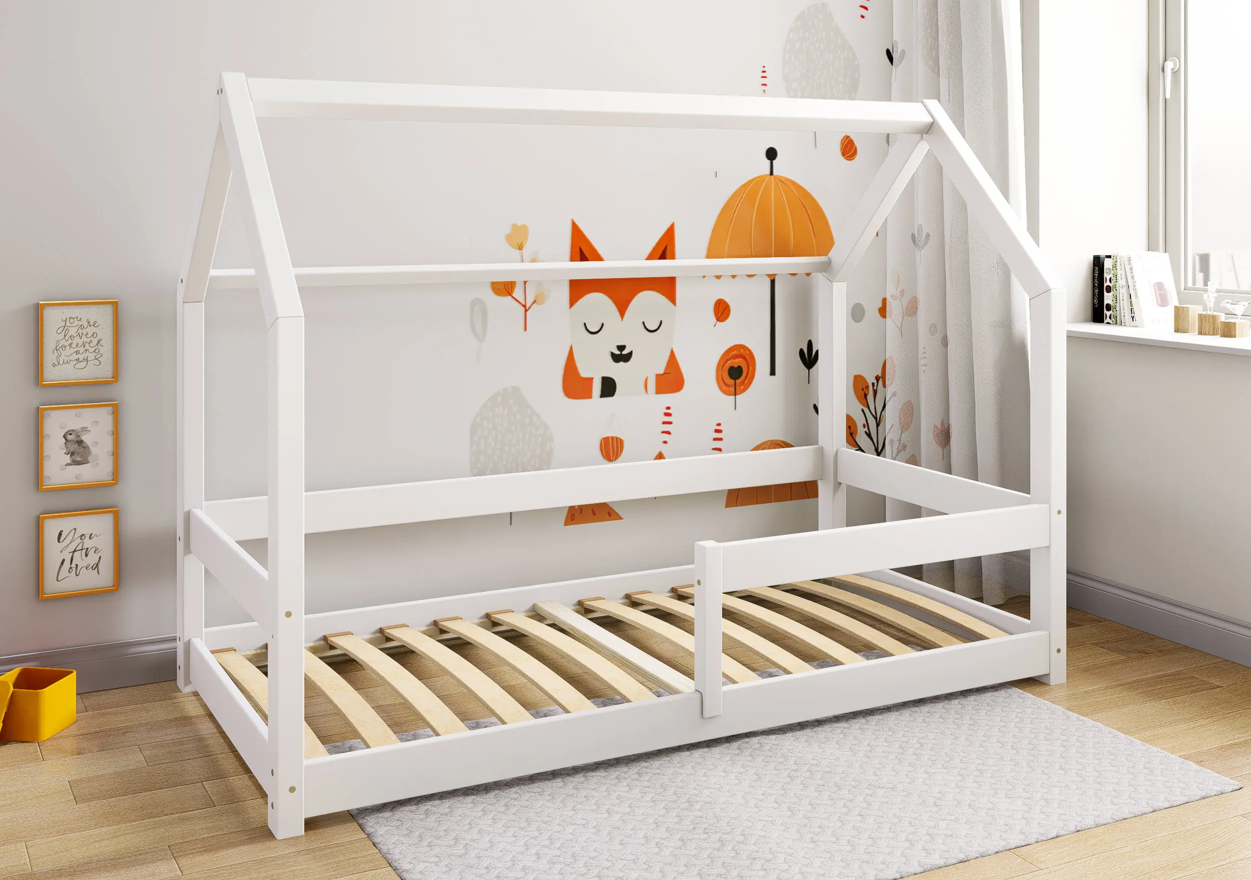 Cena obejmuje ramę łóżeczka domek Flo z barierkami oraz stelażem z listew sprężynujących. Mebel do samodzielnego złożenia. W paczkach znajdą Państwo przejrzystą instrukcję oraz niezbędne elementy montażowe.