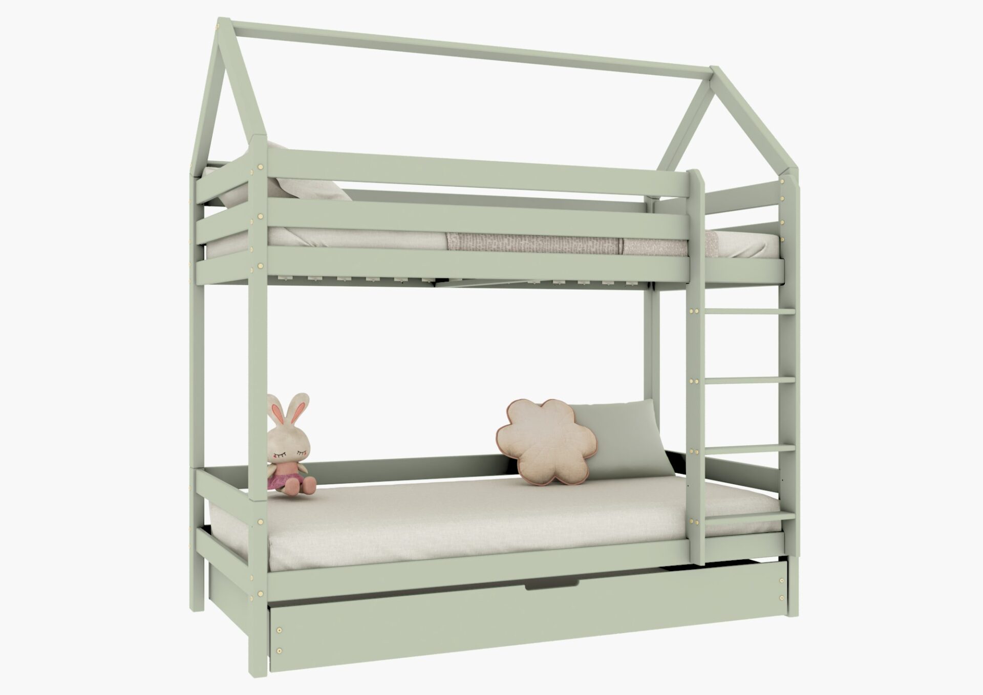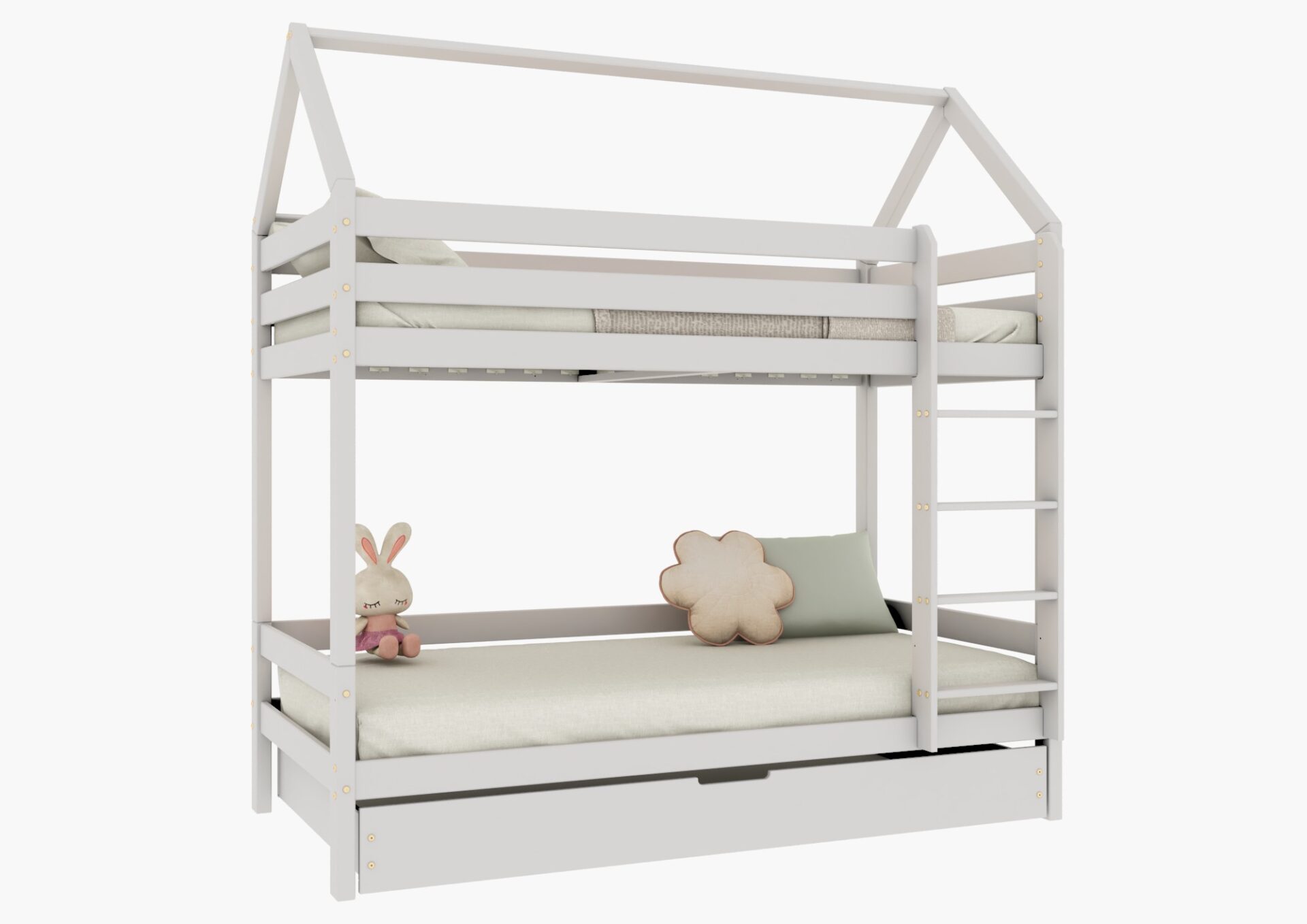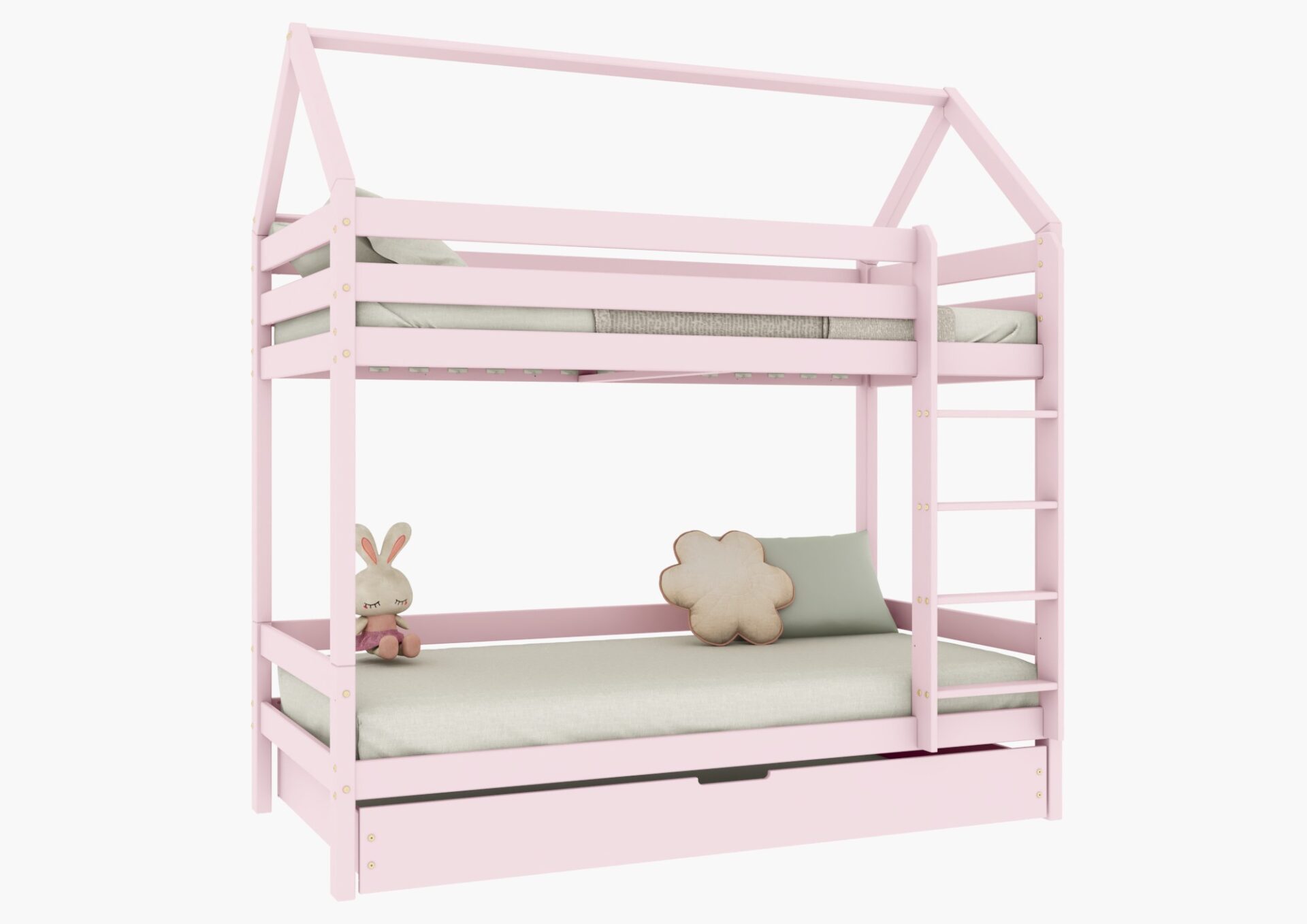 FLO BIS2 PIĘTROWE drewniane łóżko piętrowe domek z prostymi barierkami i szufladą z funkcją spania