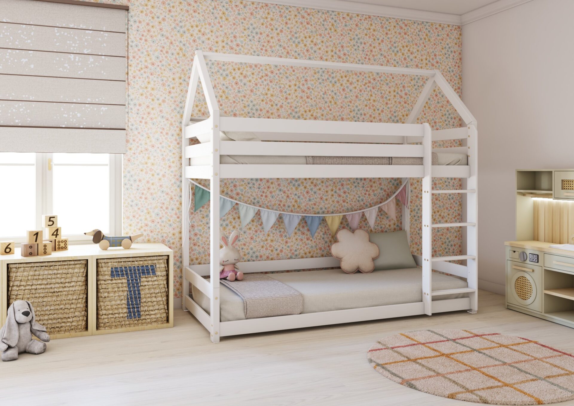 Przewidywana dostawa (od 5 do 10 dni roboczych ) 05.05 (wtorek)Łóżko piętrowe Flo rozbudzi wyobraźnię i kreatywność Twojego malucha. Naturalne surowce, precyzyjne wykonanie, a także bezpieczne dla zdrowia farby i lakiery to zaledwie kilka spośród wielu zalet naszego łóżeczka. Nietuzinkowa konstrukcja przypominająca domek oraz solidne barierki w formie desek nadają mu niepowtarzalnego stylu, tworząc jednocześnie bezpieczną przestrzeń do snu i zabawy dla najmłodszych. Dodatkowo aby zminimalizować ryzyko ewentualnych urazów krawędzie łóżka zostały delikatnie zaokrąglone, a brzegi starannie wyszlifowane. Łóżko piętrowe Flo w towarzystwie delikatnego oświetlenia wiszących lampek, miękkich zasłon czy kolorowych girland, oferuje nieograniczone możliwości aranżacyjne oraz gwarantuje stworzenie przytulnego miejsca do wypoczynku dla Twojego dziecka.