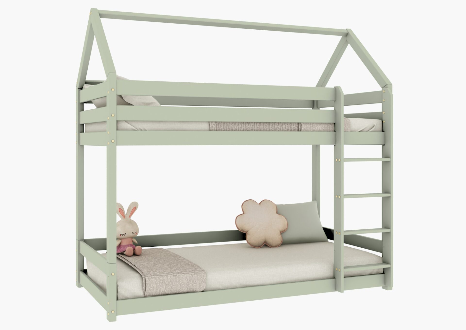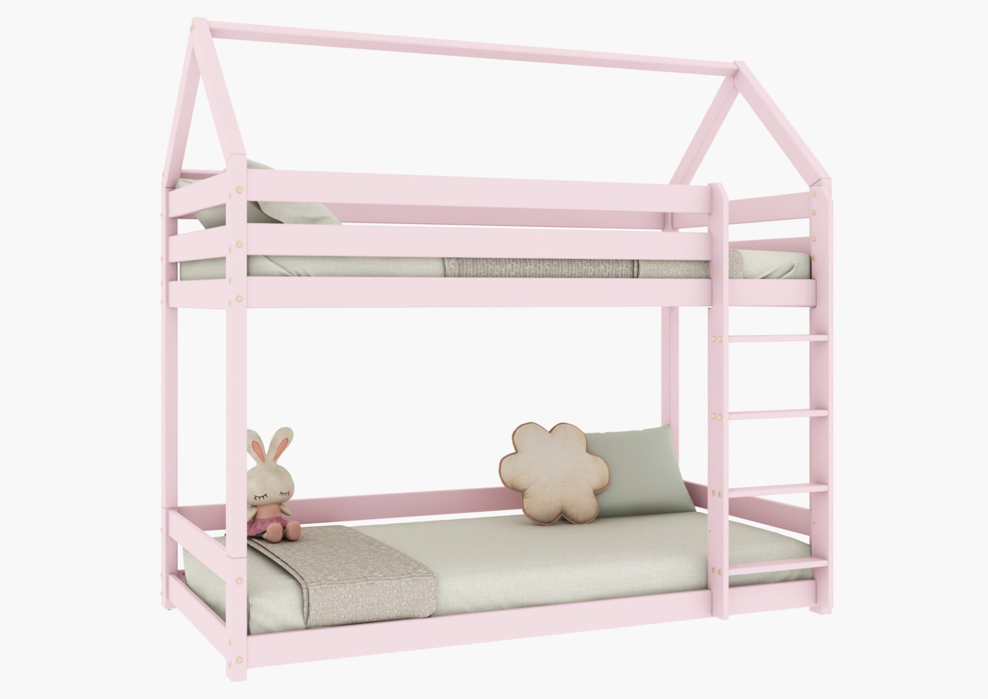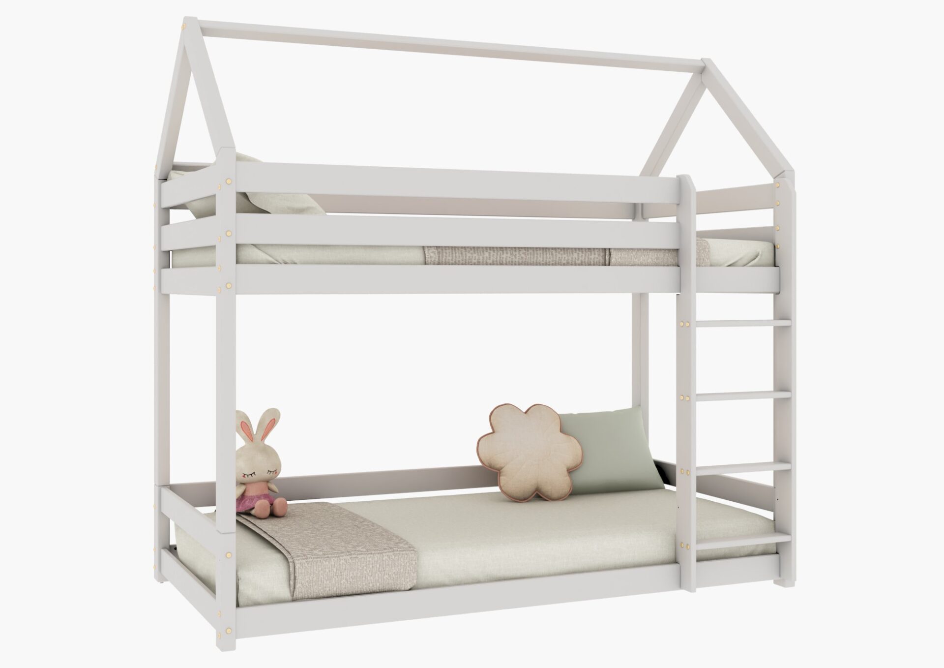 FLO PIĘTROWE drewniane łóżko piętrowe domek z prostymi barierkami