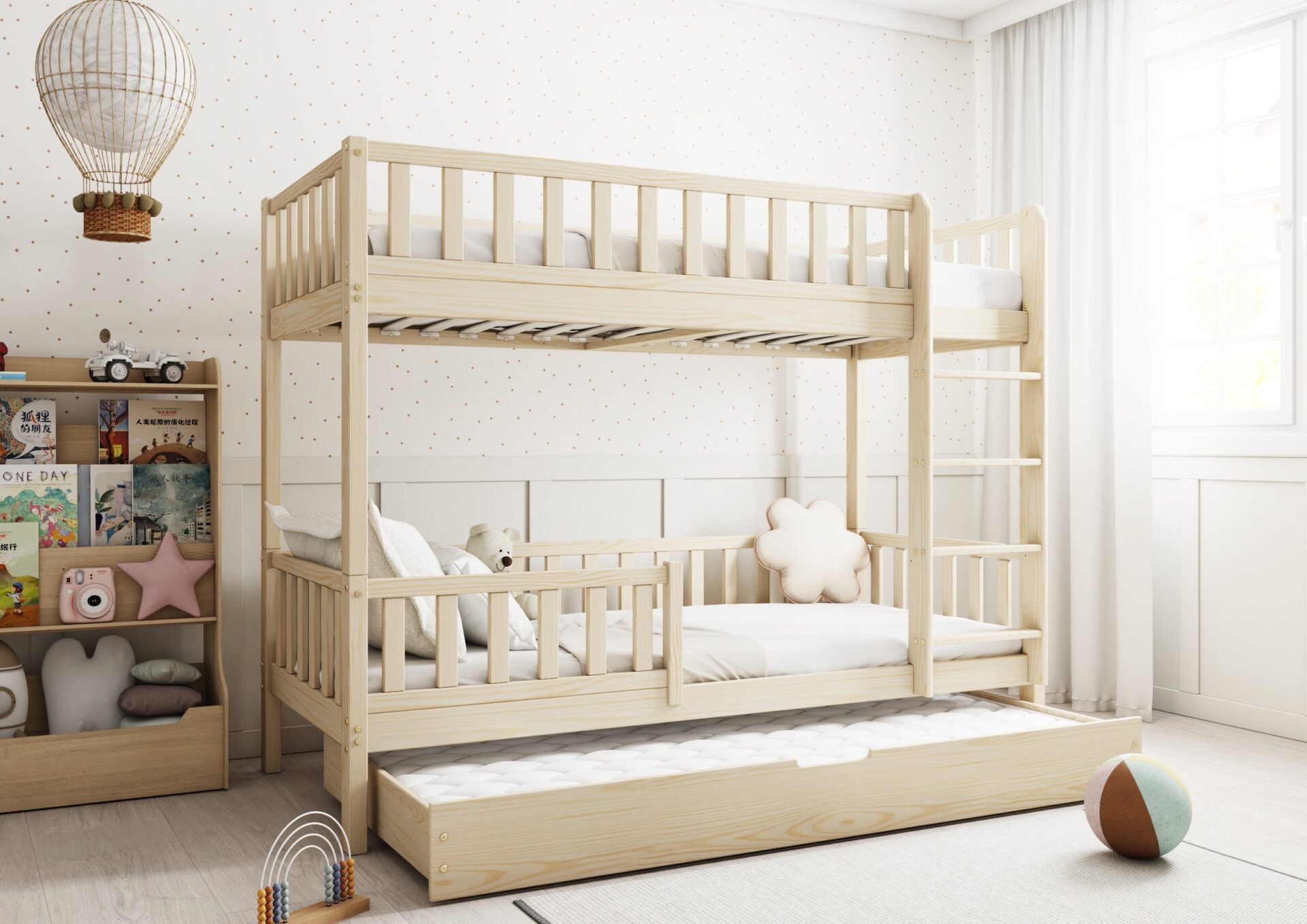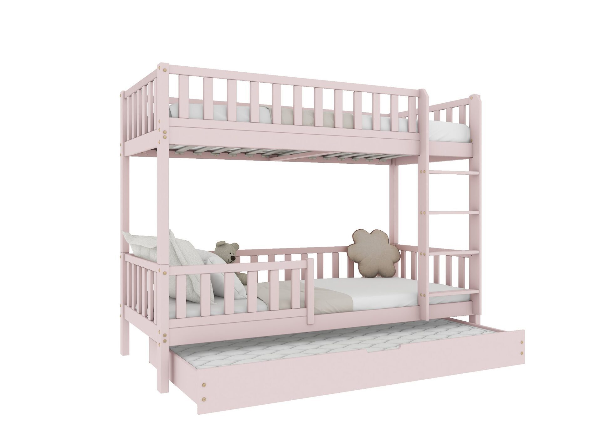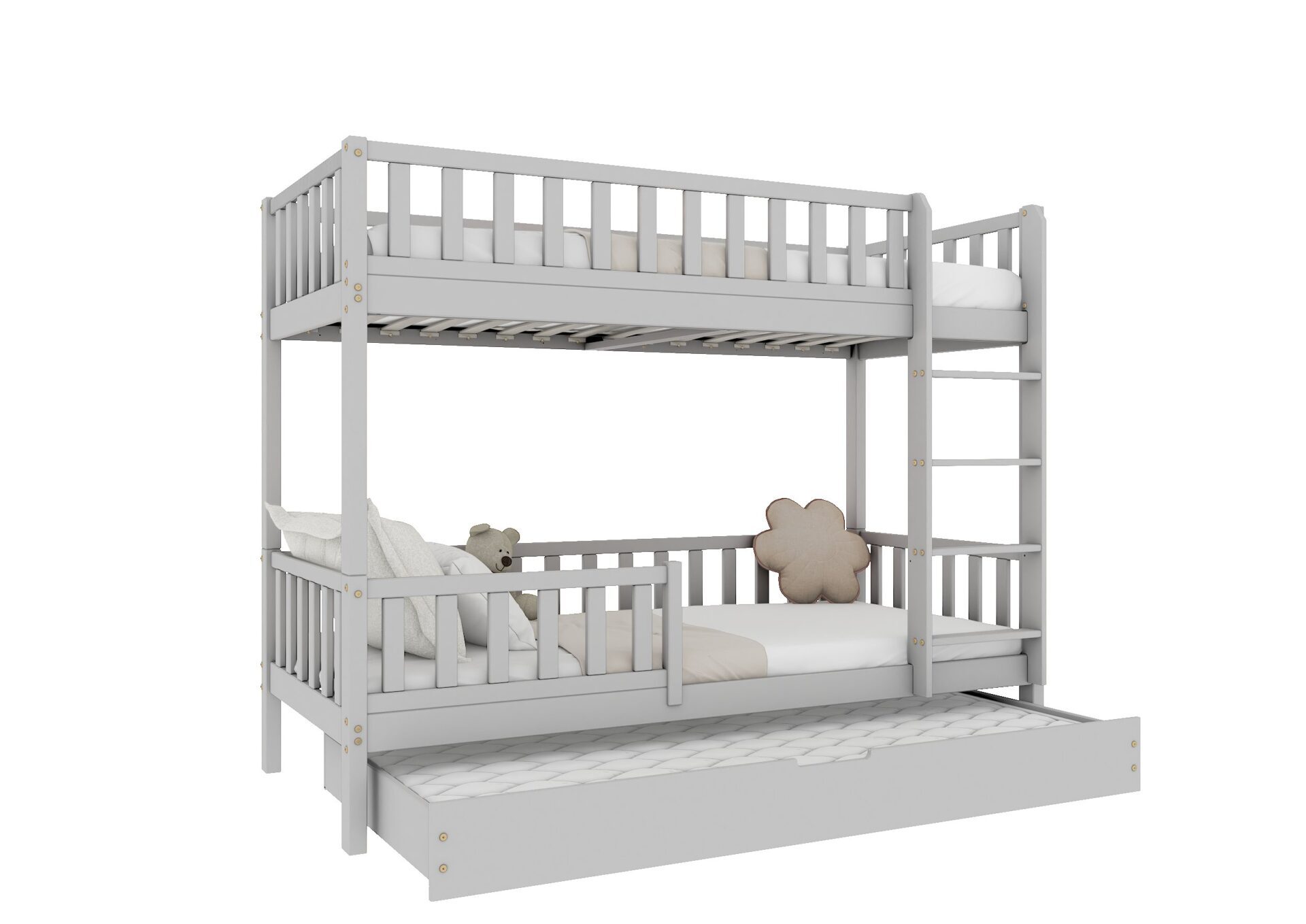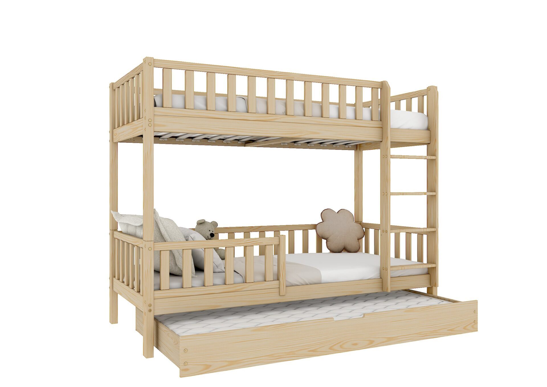 KARO – drewniane łóżko piętrowe z barierkami w kształcie płotka