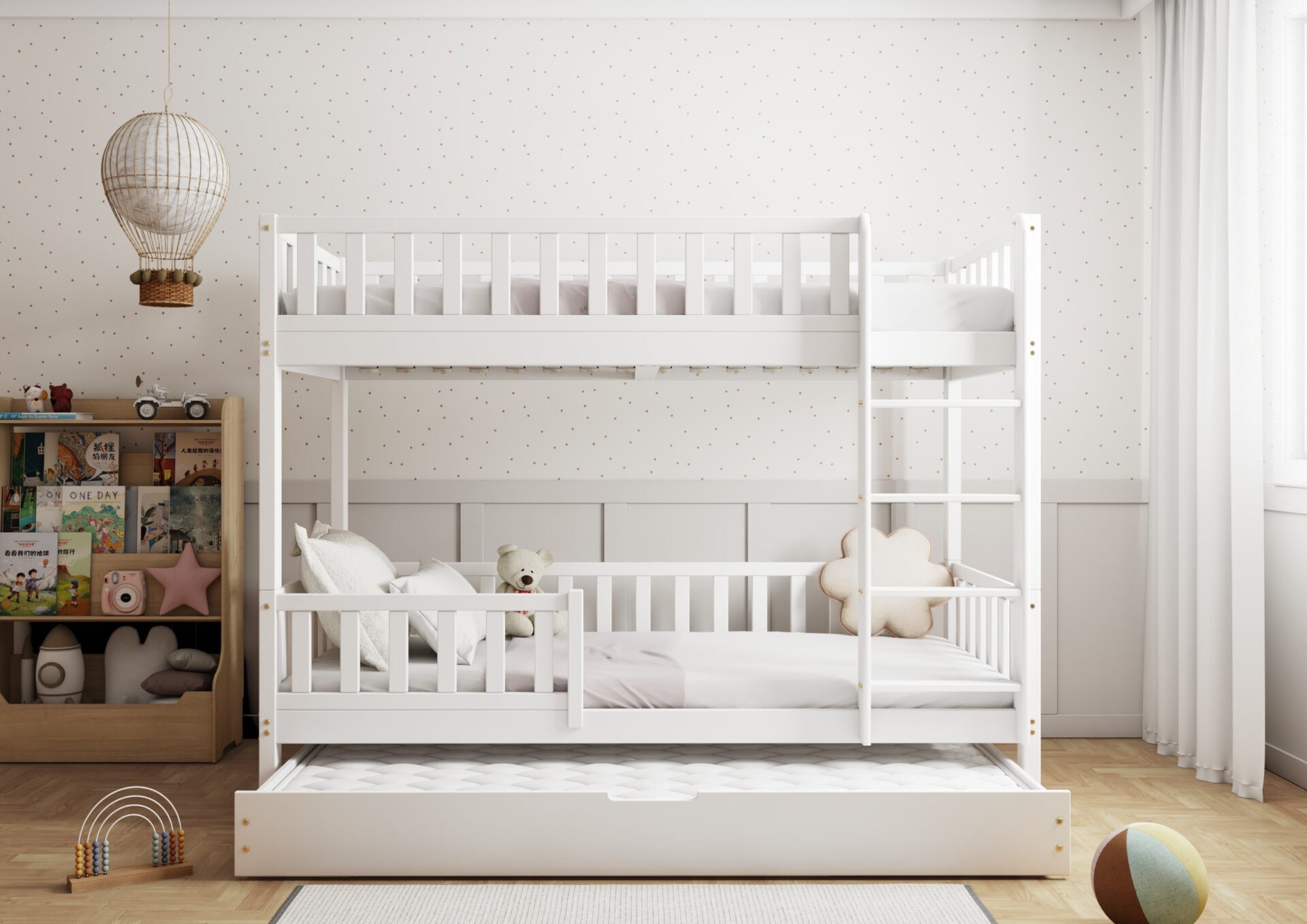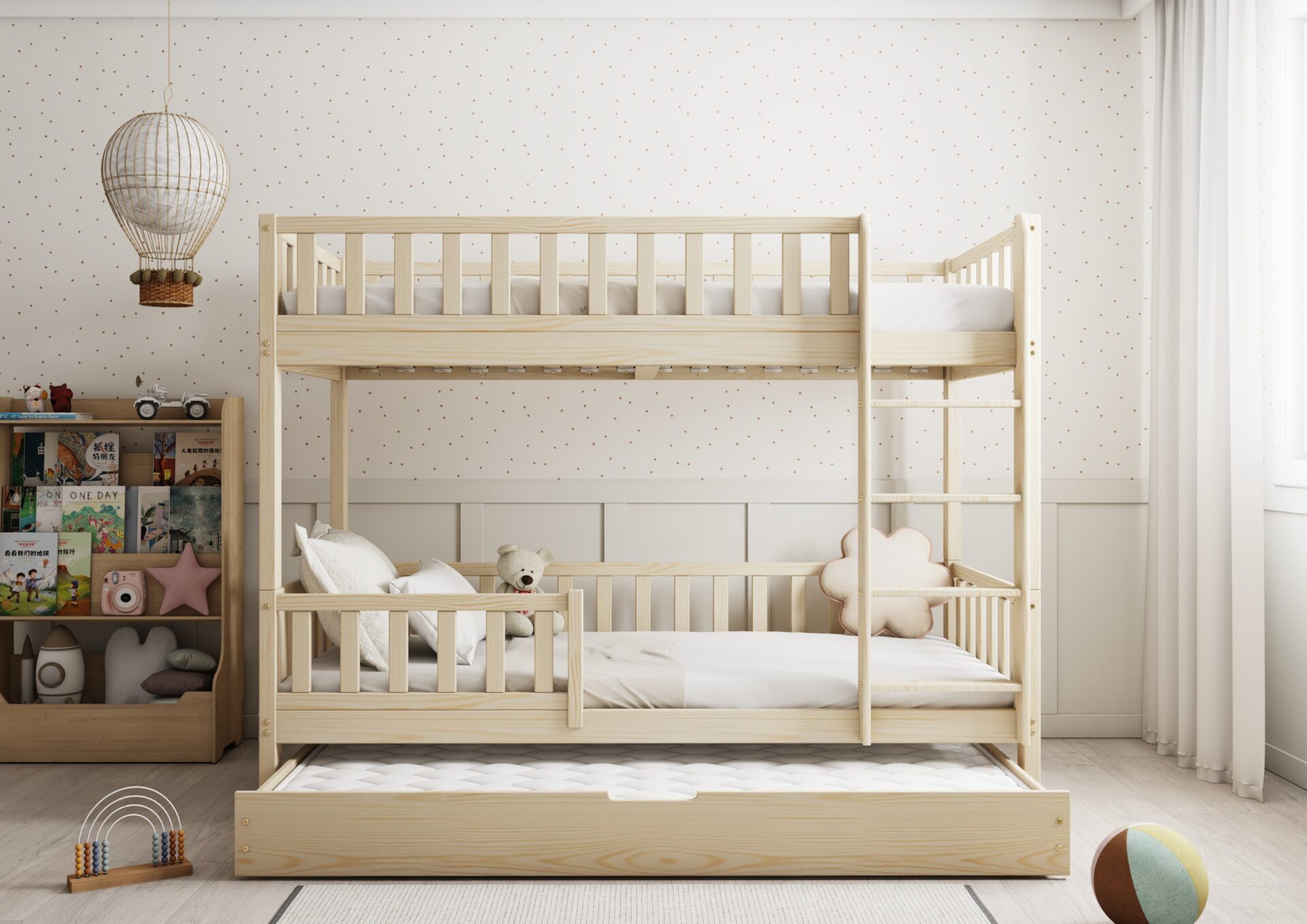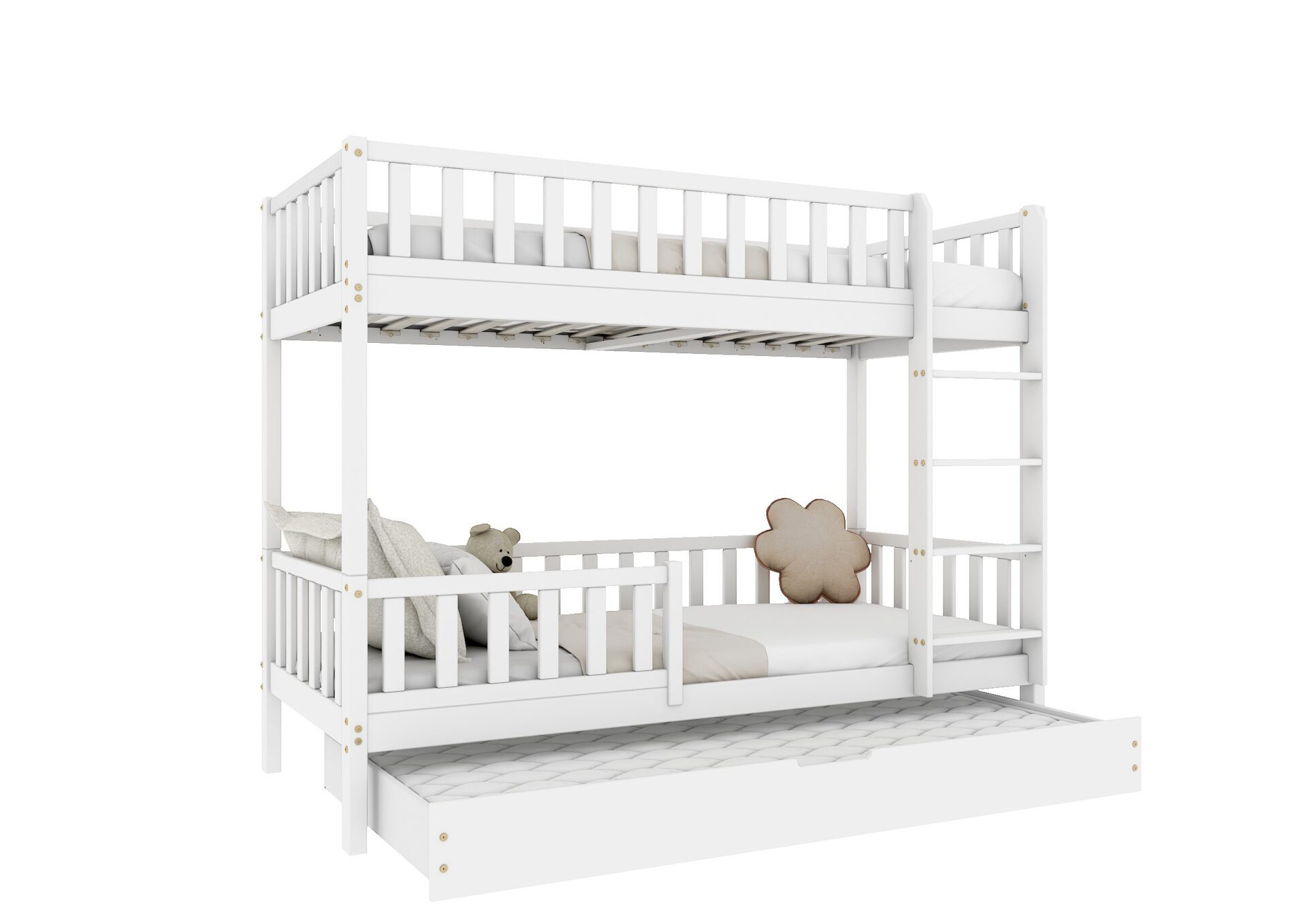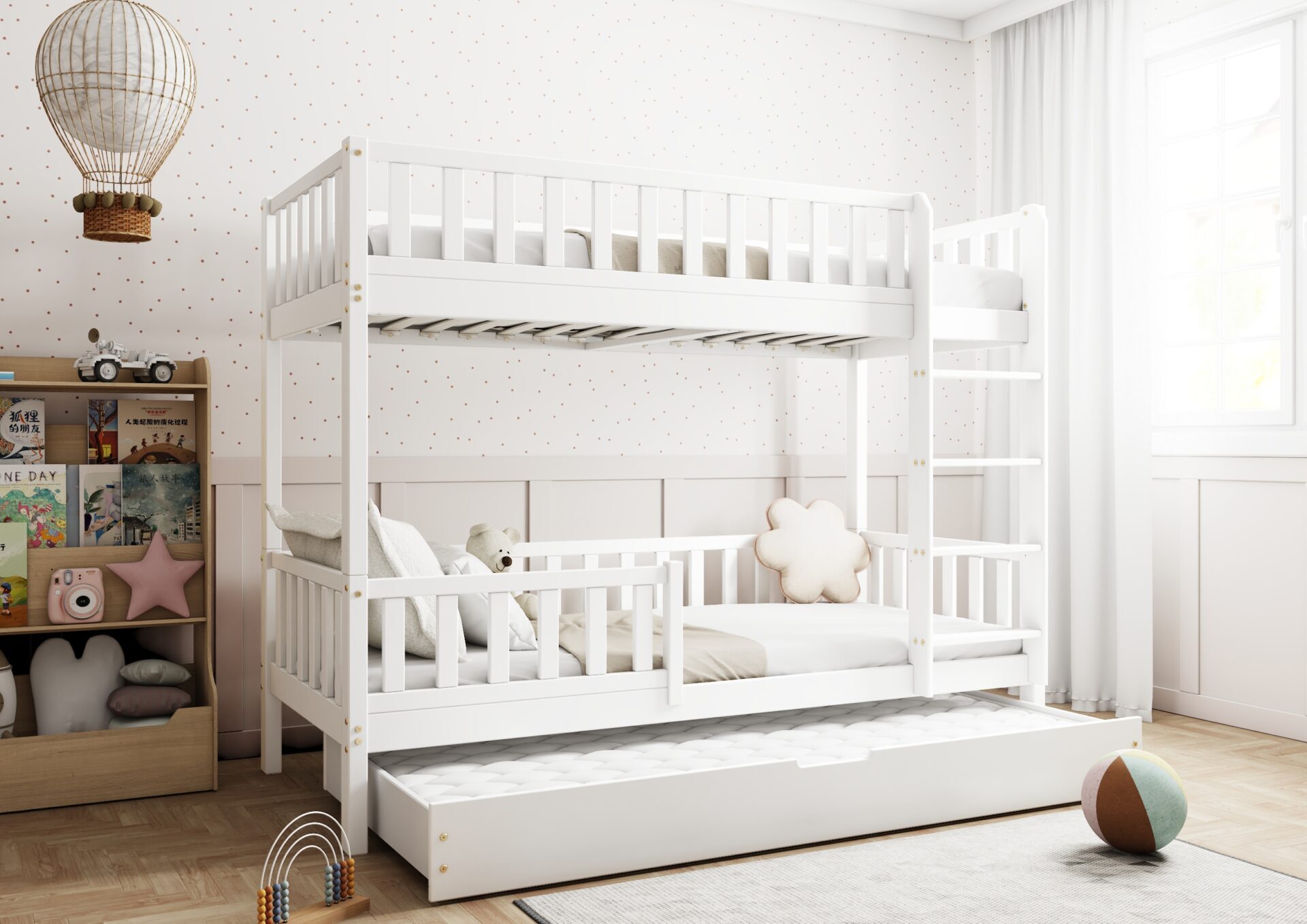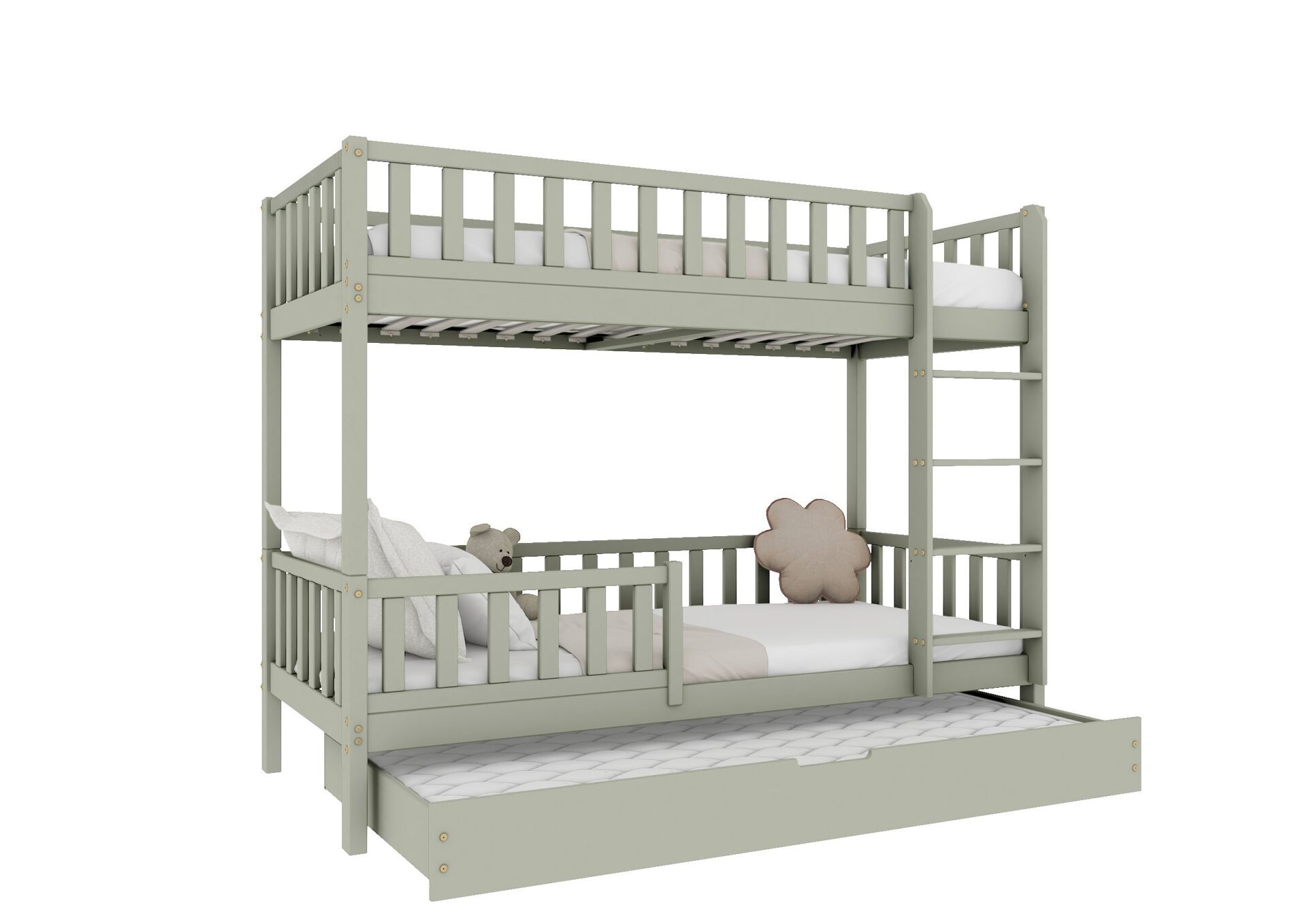 KARO – drewniane łóżko piętrowe z barierkami w kształcie płotka