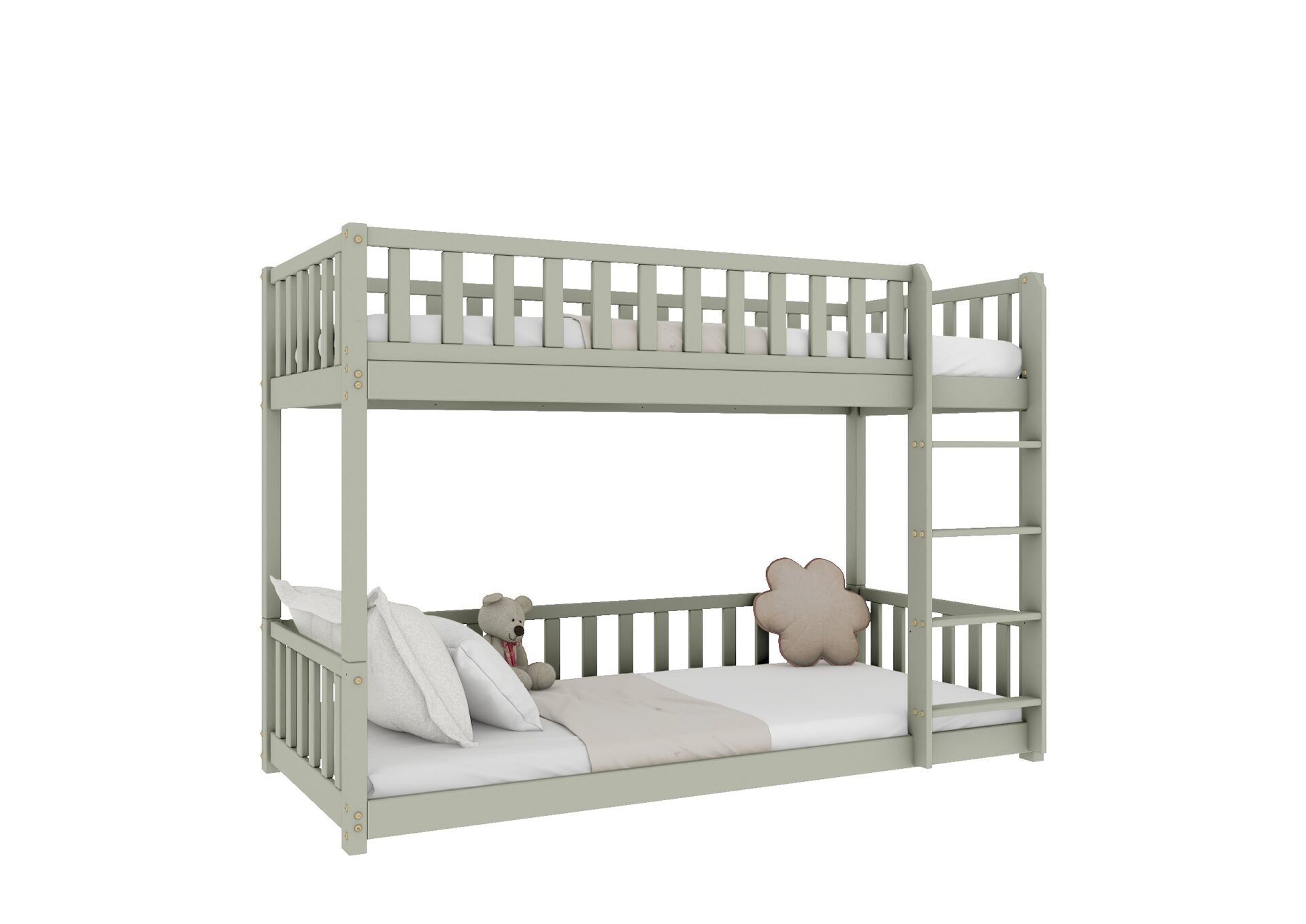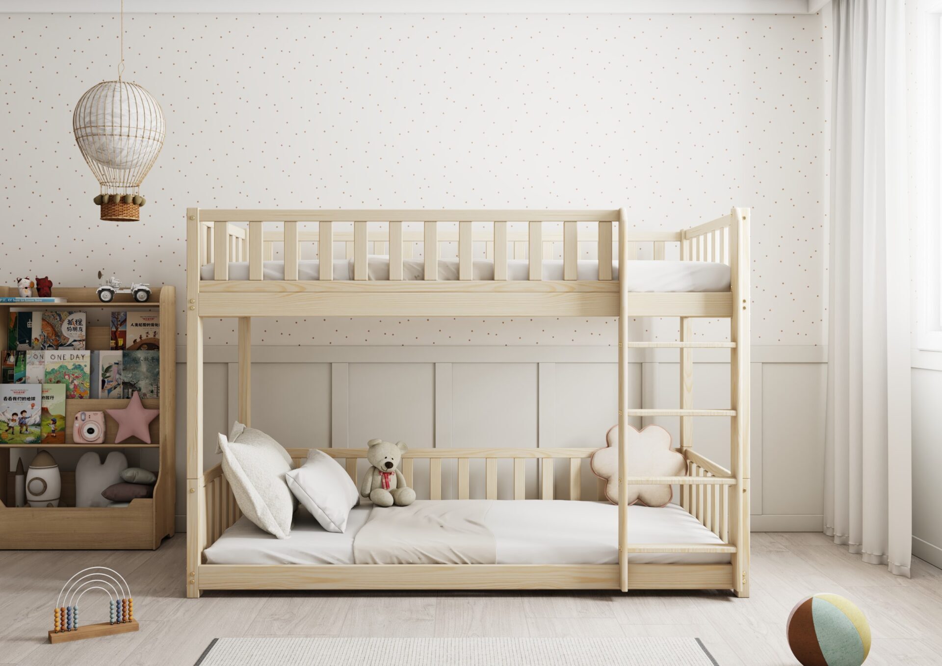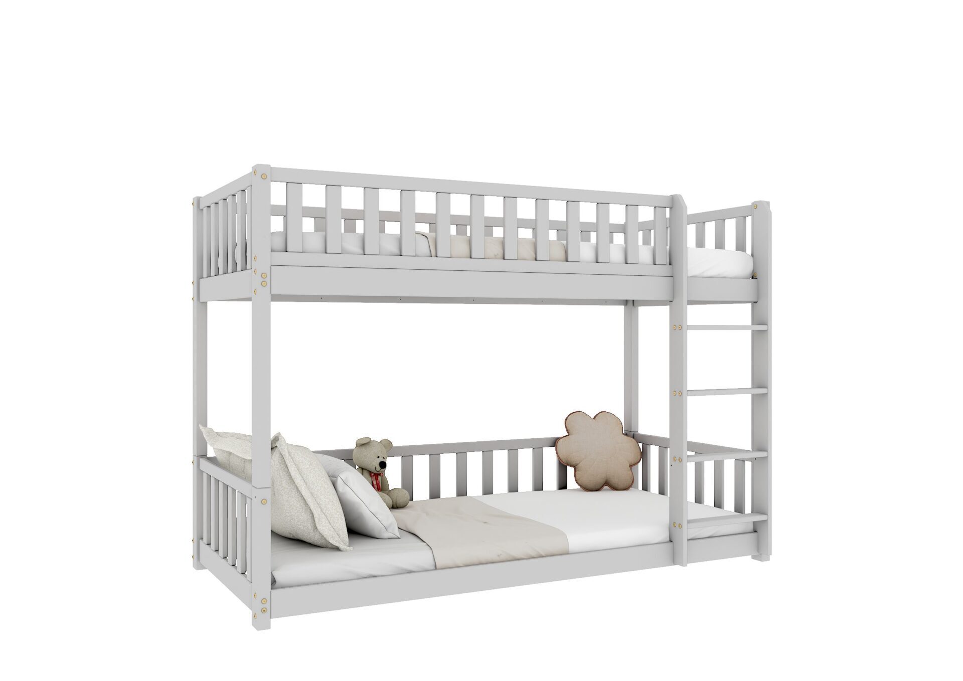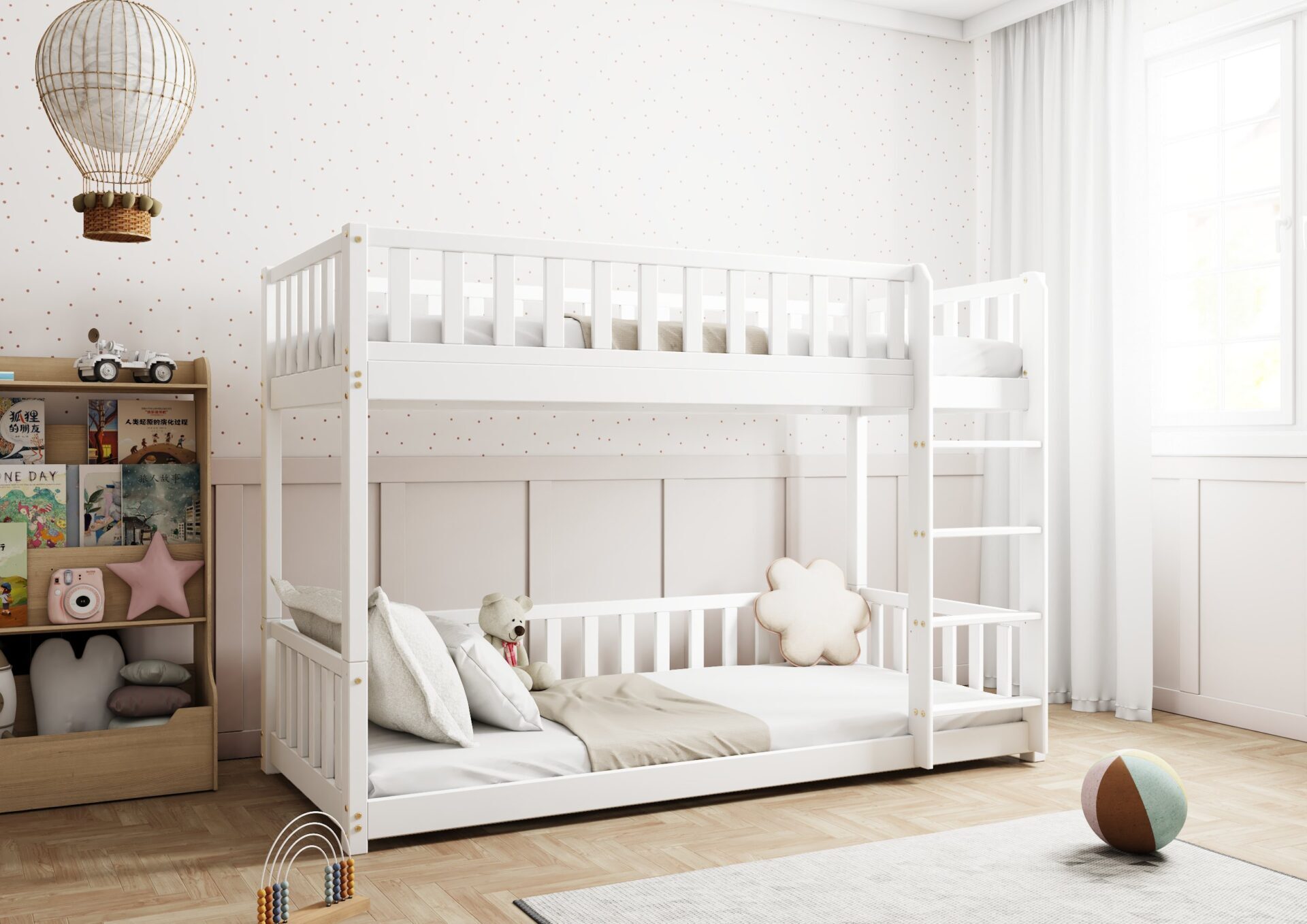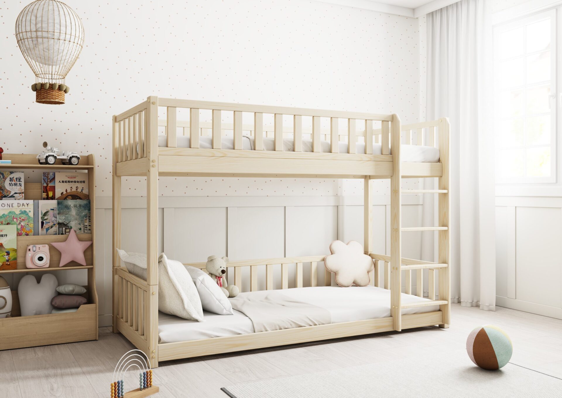 KARO – drewniane łóżko piętrowe z barierkami w kształcie płotka