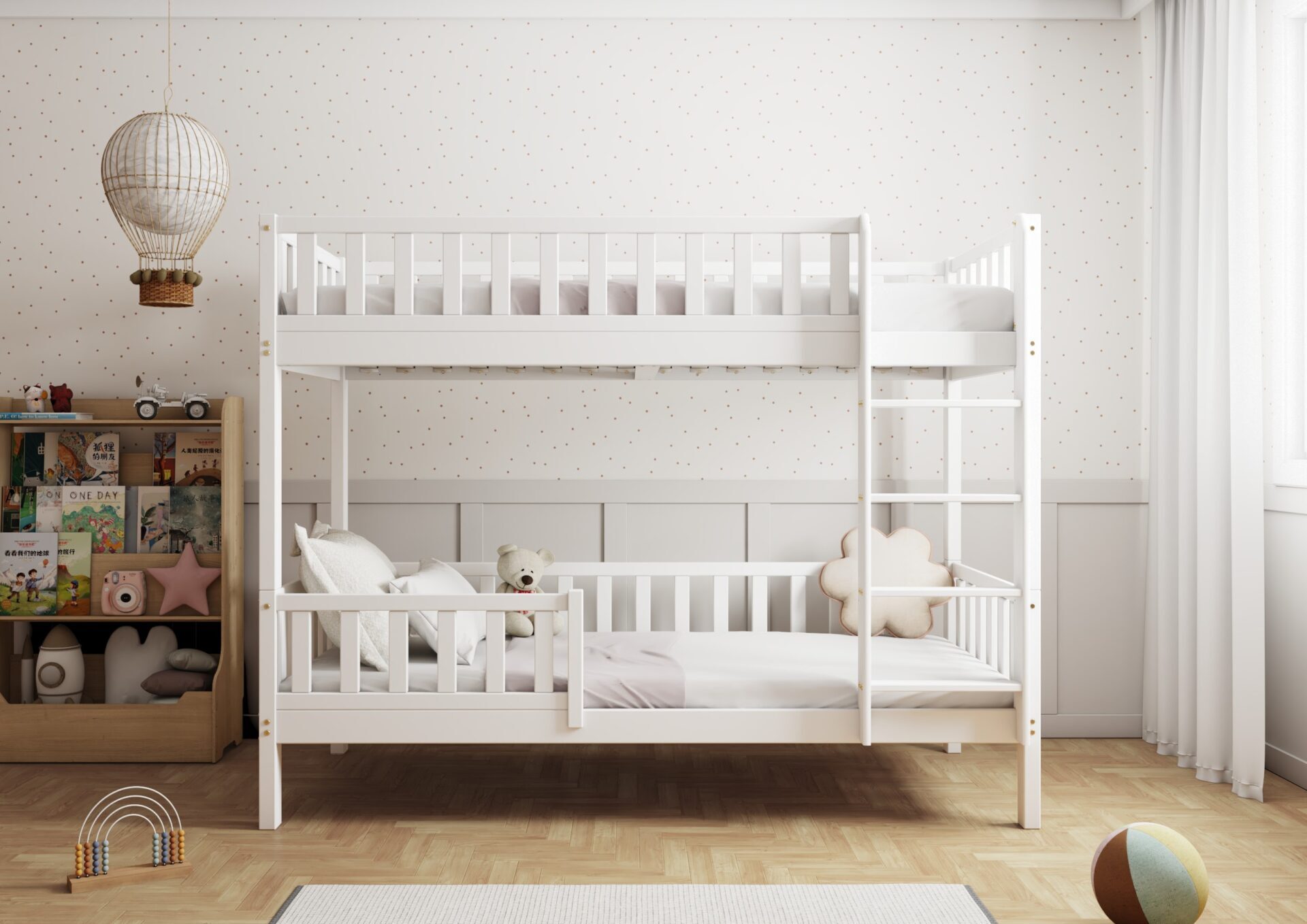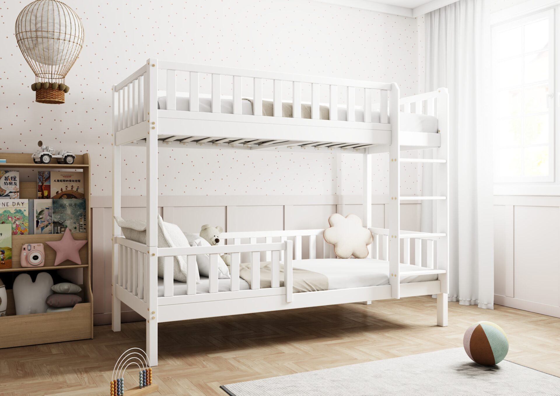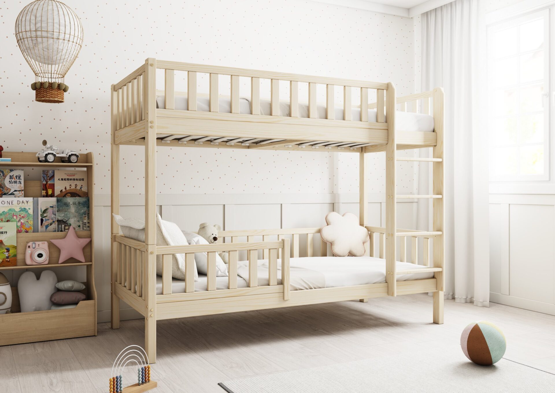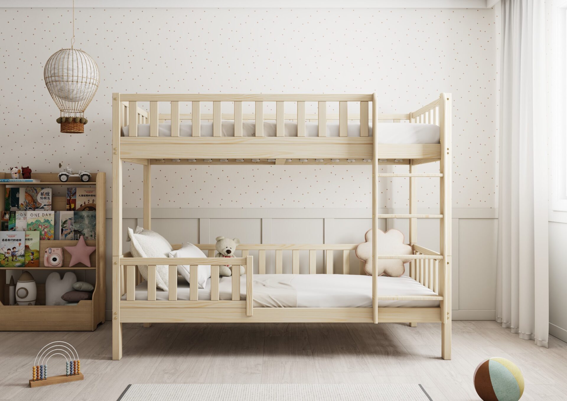 KARO – drewniane łóżko piętrowe z barierkami w kształcie płotka