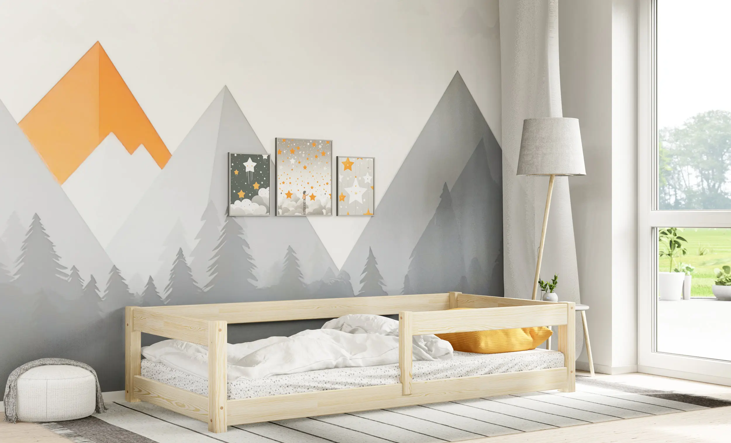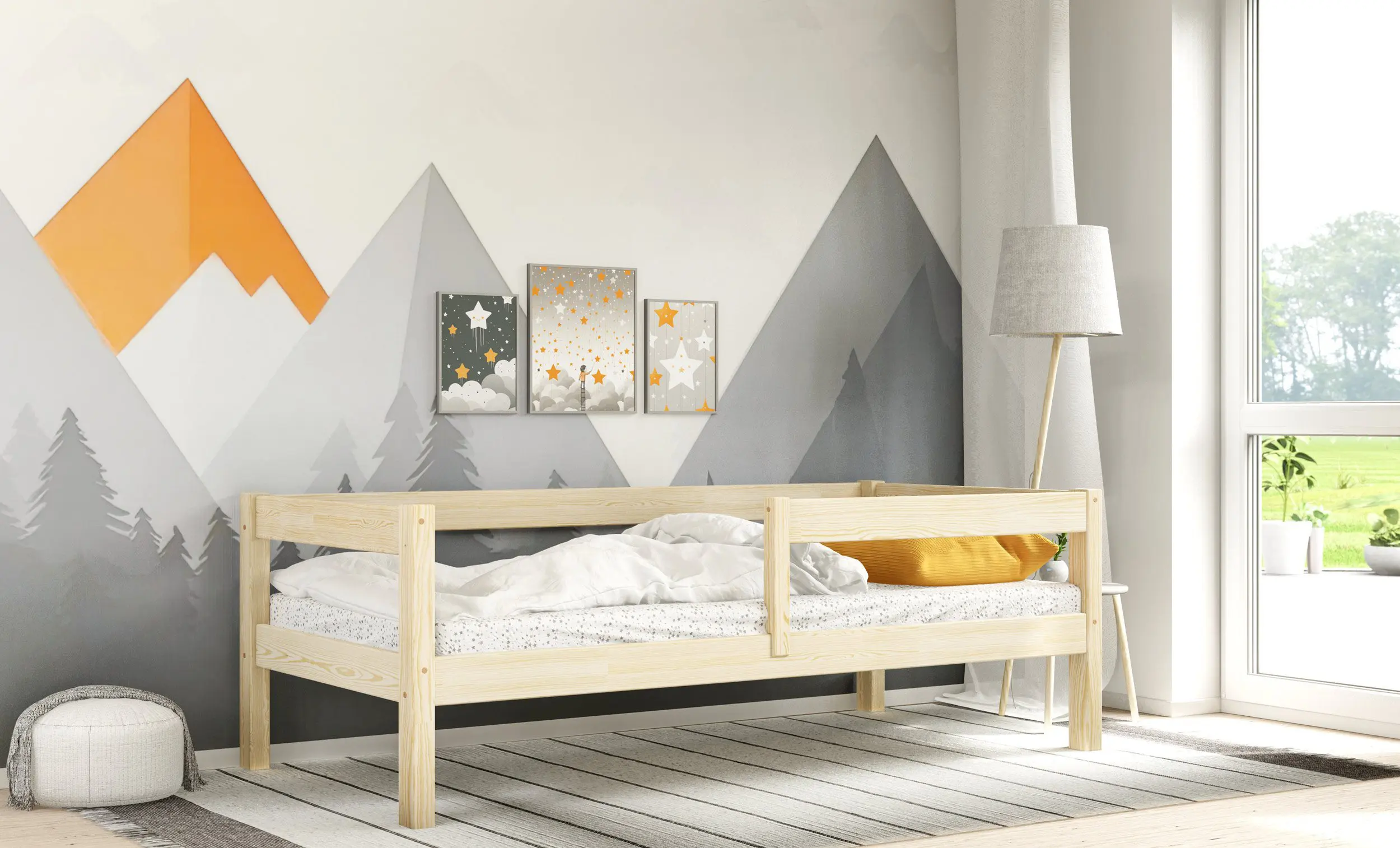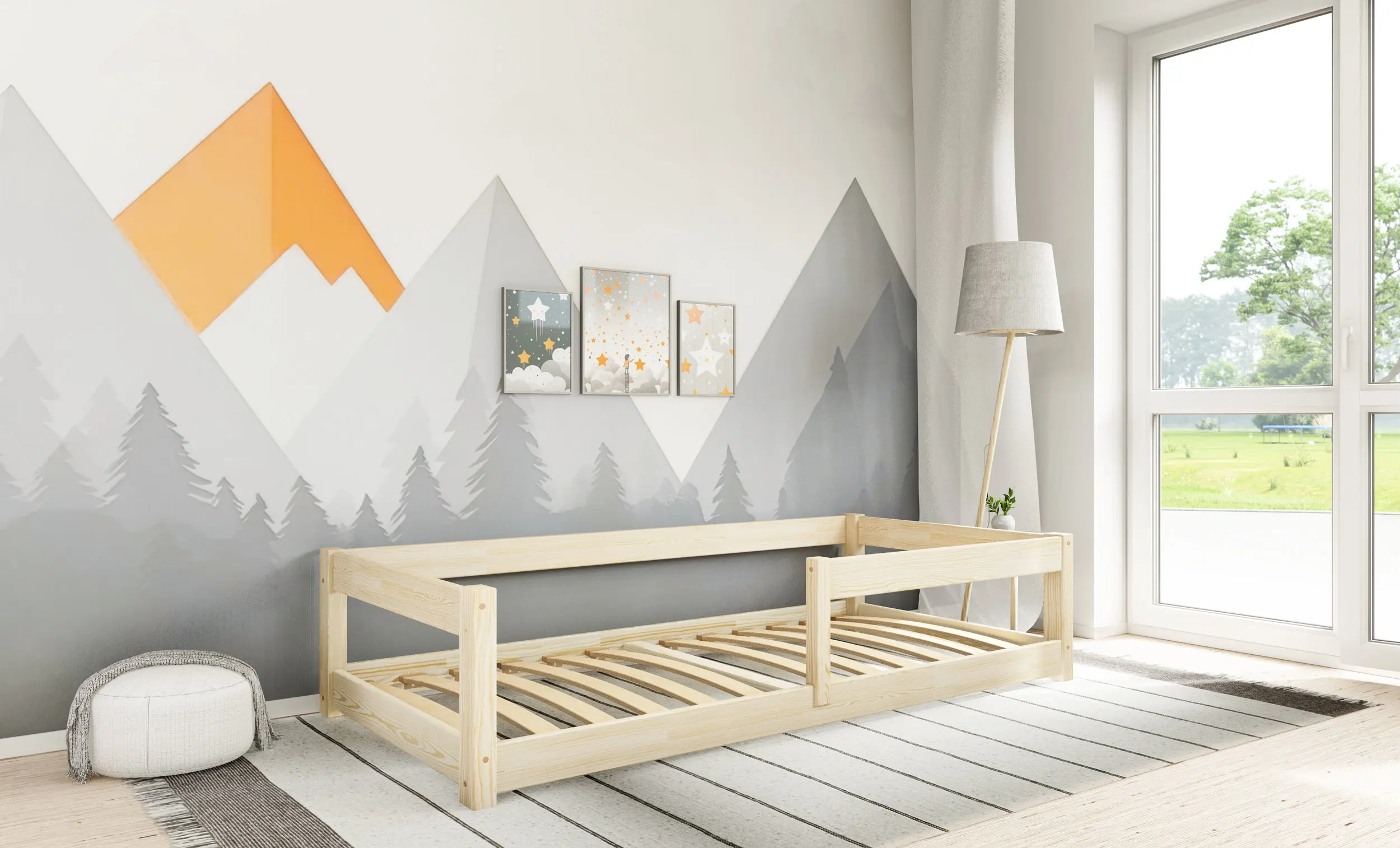 Solidne i wytrzymałe łóżko parterowe Maja zostało wykonane z naturalnego drewna sosnowego najwyższej klasy. Model wyróżnia się prostymi szczebelkami w postaci grubych desek z prześwitami. Elementy drewniane są dokładnie szlifowane przez co ich powierzchnia jest gładka, bez nierówności. Zaokrąglone brzegi chronią przed zadrapaniami podczas zabawy i minimalizują ryzyko urazów. Mebel zaprojektowano zgodnie z skandynawską stylistyką, w której królują naturalne surowce, geometryczne kształty oraz funkcjonalne rozwiązania.