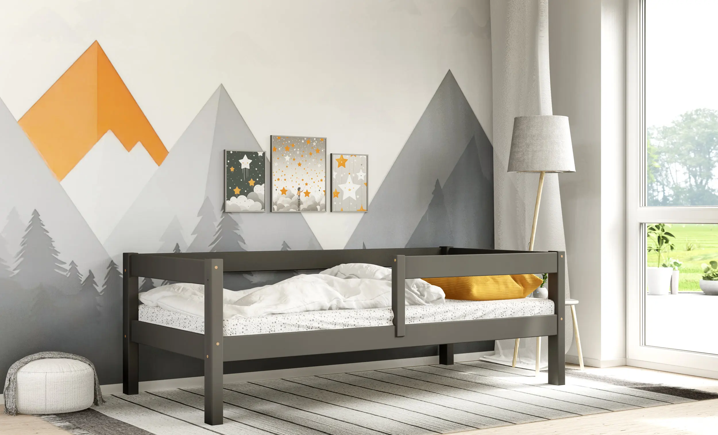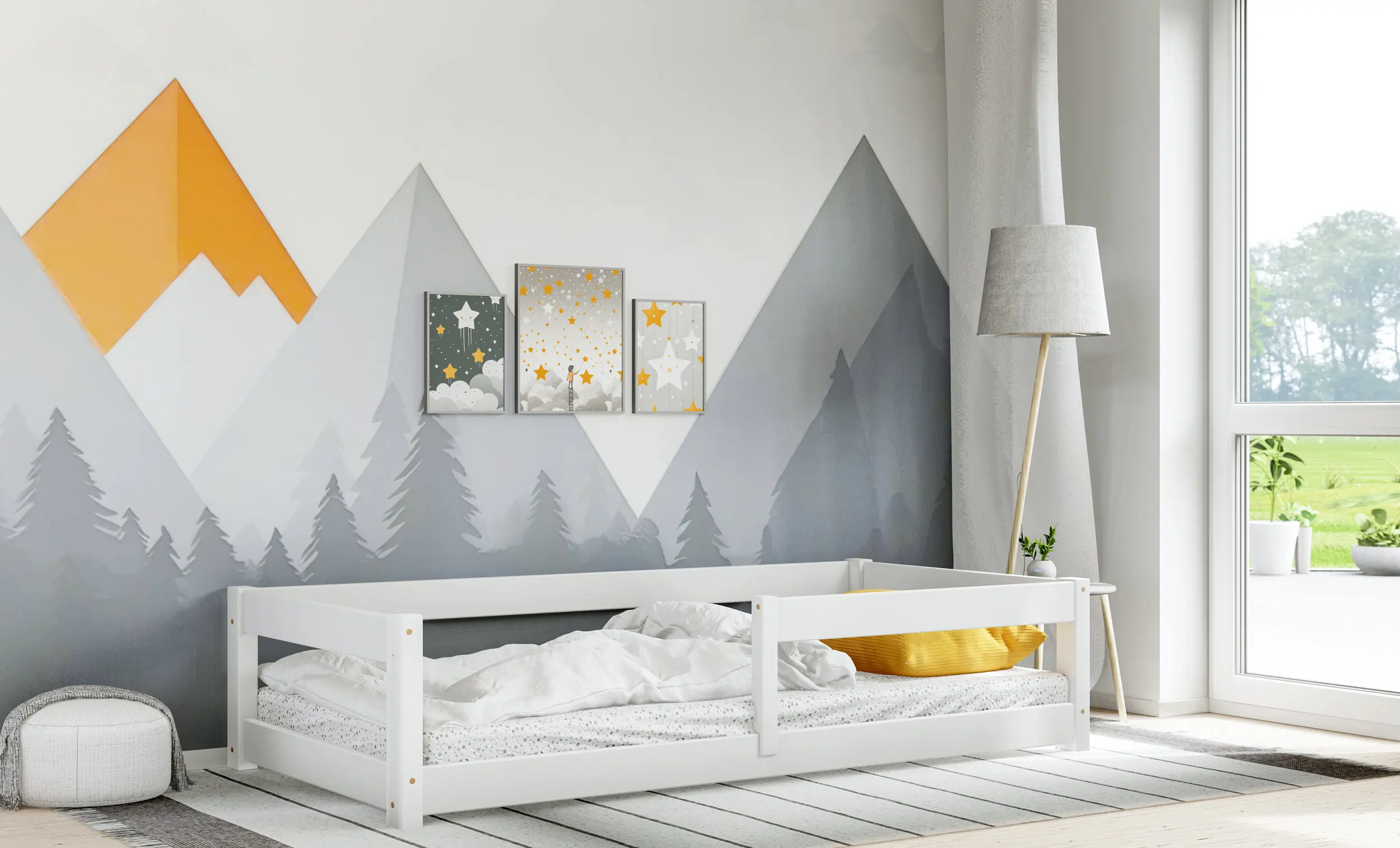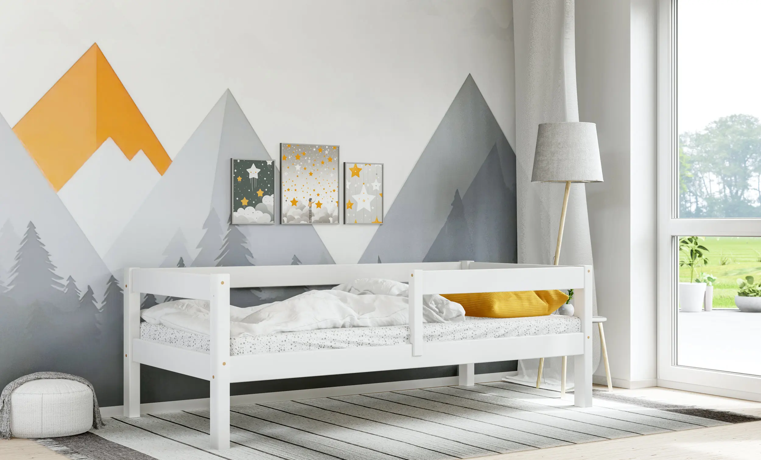 Solidne i wytrzymałe łóżko parterowe Maja zostało wykonane z naturalnego drewna sosnowego najwyższej klasy. Model wyróżnia się prostymi szczebelkami w postaci grubych desek z prześwitami. Elementy drewniane są dokładnie szlifowane przez co ich powierzchnia jest gładka, bez nierówności. Zaokrąglone brzegi chronią przed zadrapaniami podczas zabawy i minimalizują ryzyko urazów. Mebel zaprojektowano zgodnie z skandynawską stylistyką, w której królują naturalne surowce, geometryczne kształty oraz funkcjonalne rozwiązania.