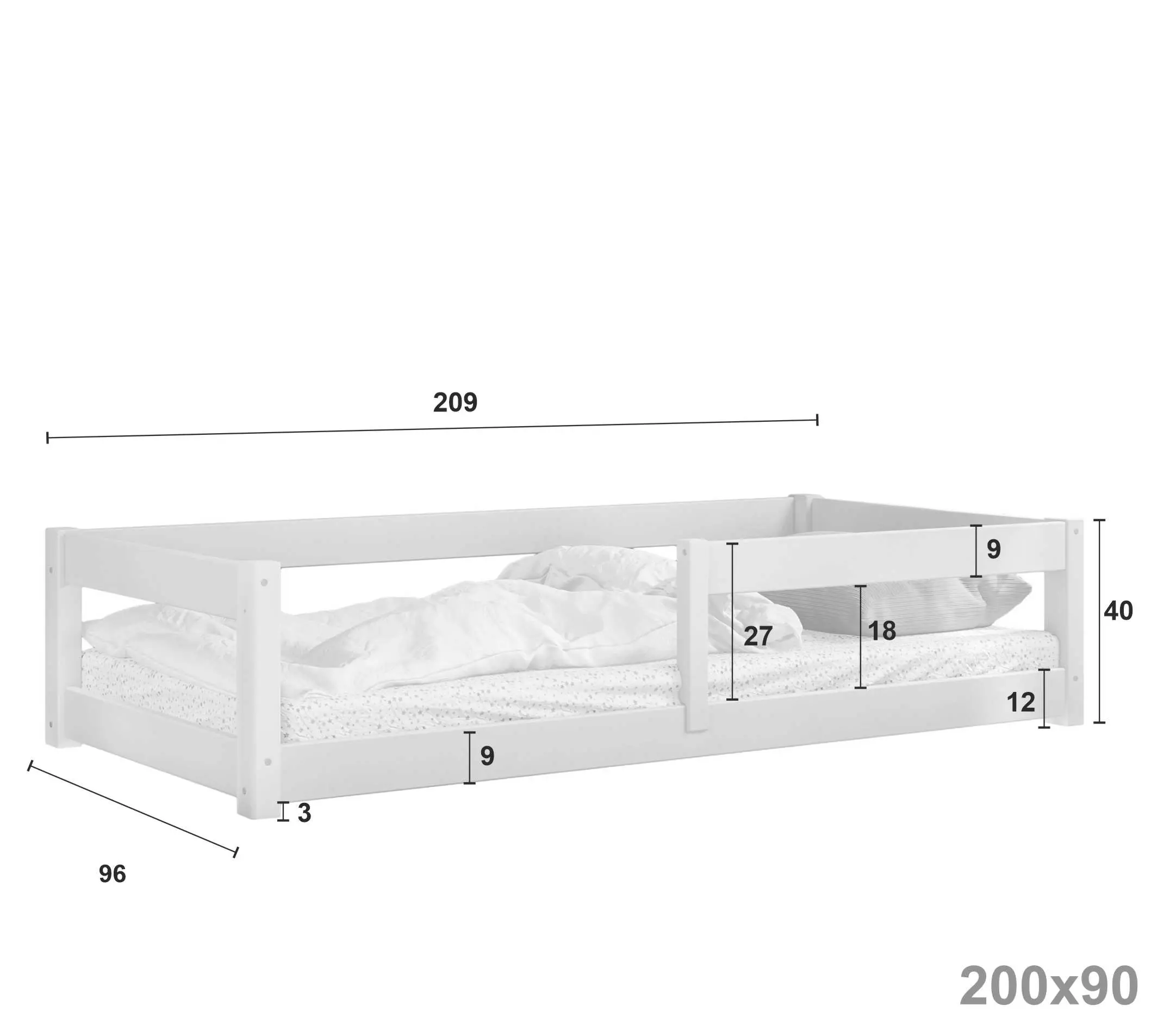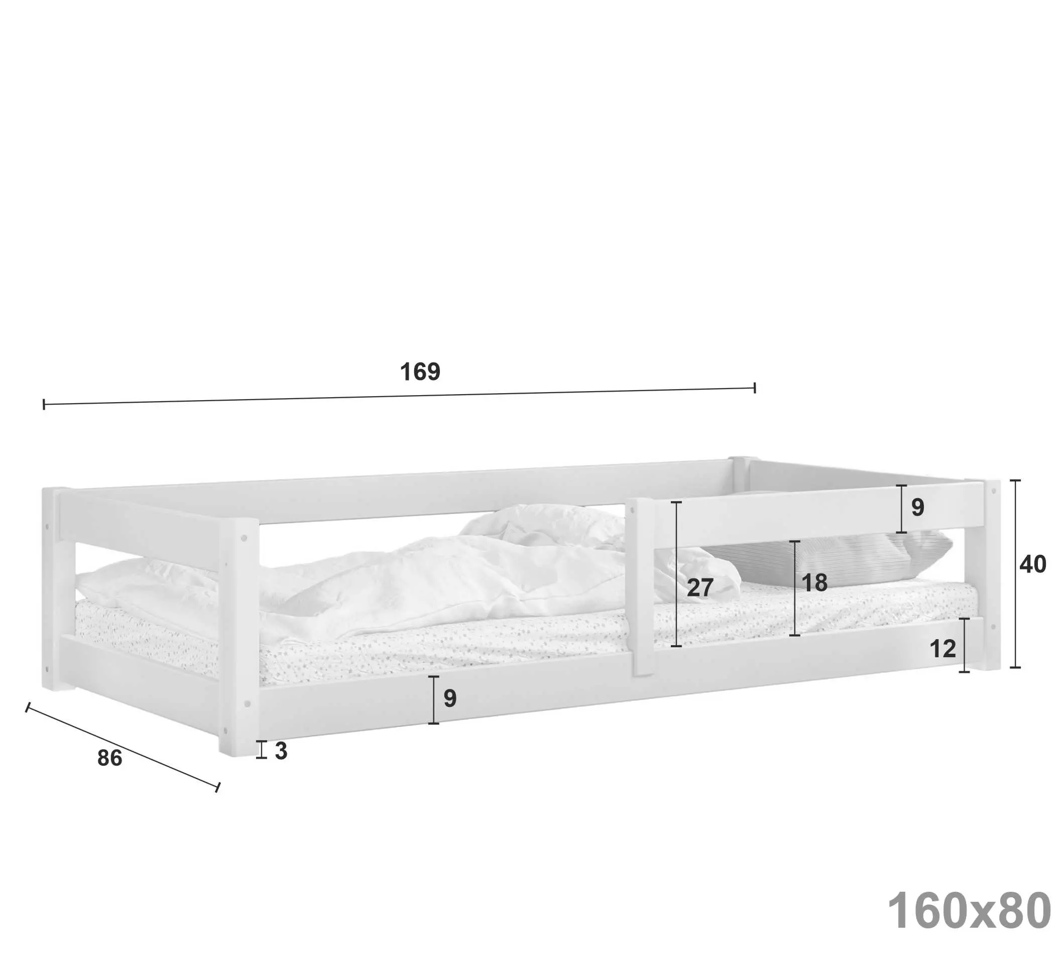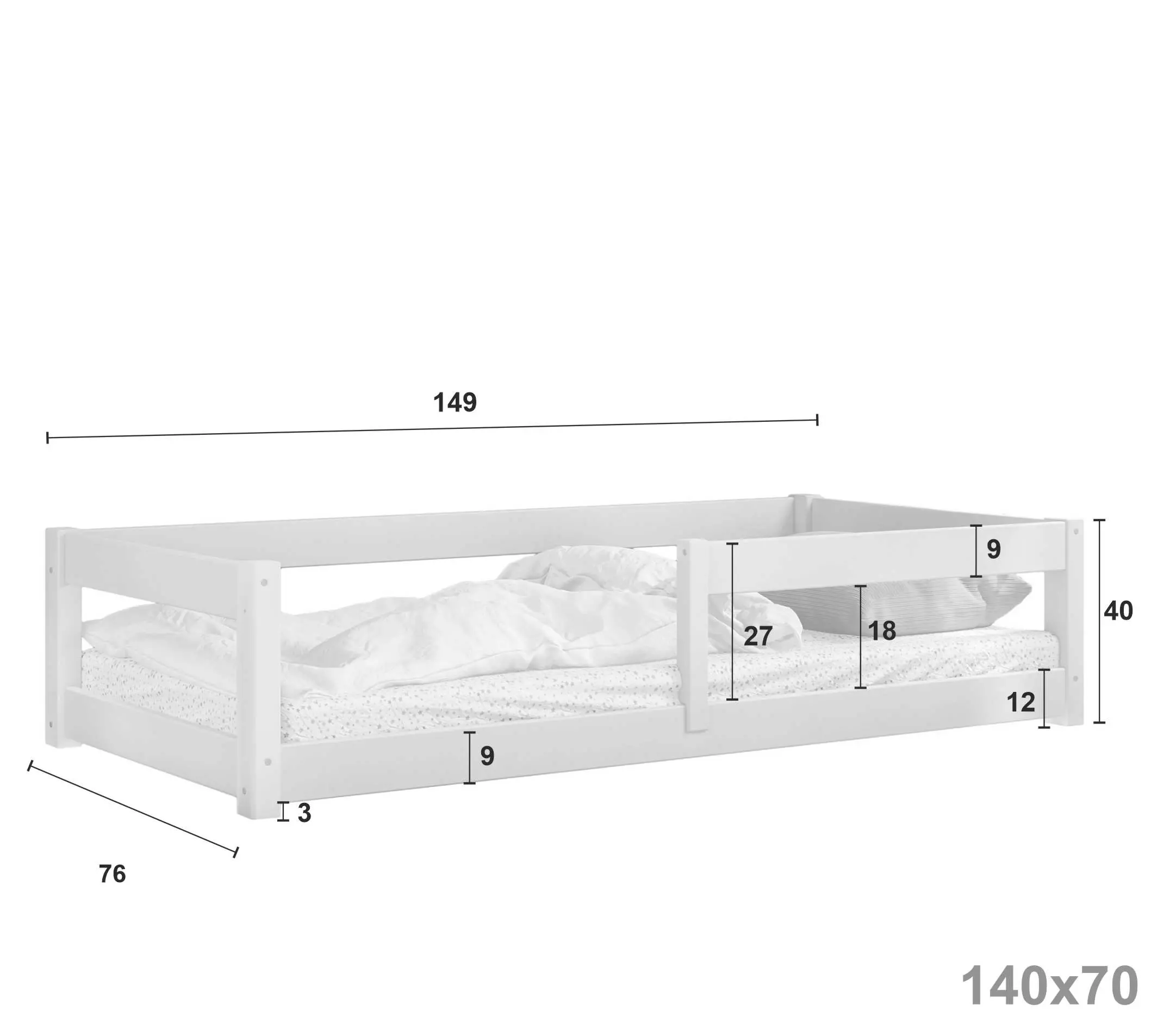 Produkt sprzedawany bez materaca. Zapraszamy do zapoznania się z naszą ofertą materacy dla dzieci. Ze względu na wiek maluchów zaleca się kupno modelu o grubości od 9 do 12 cm. W naszym łóżeczku rama obniża wysokość materaca średnio o 4 cm.