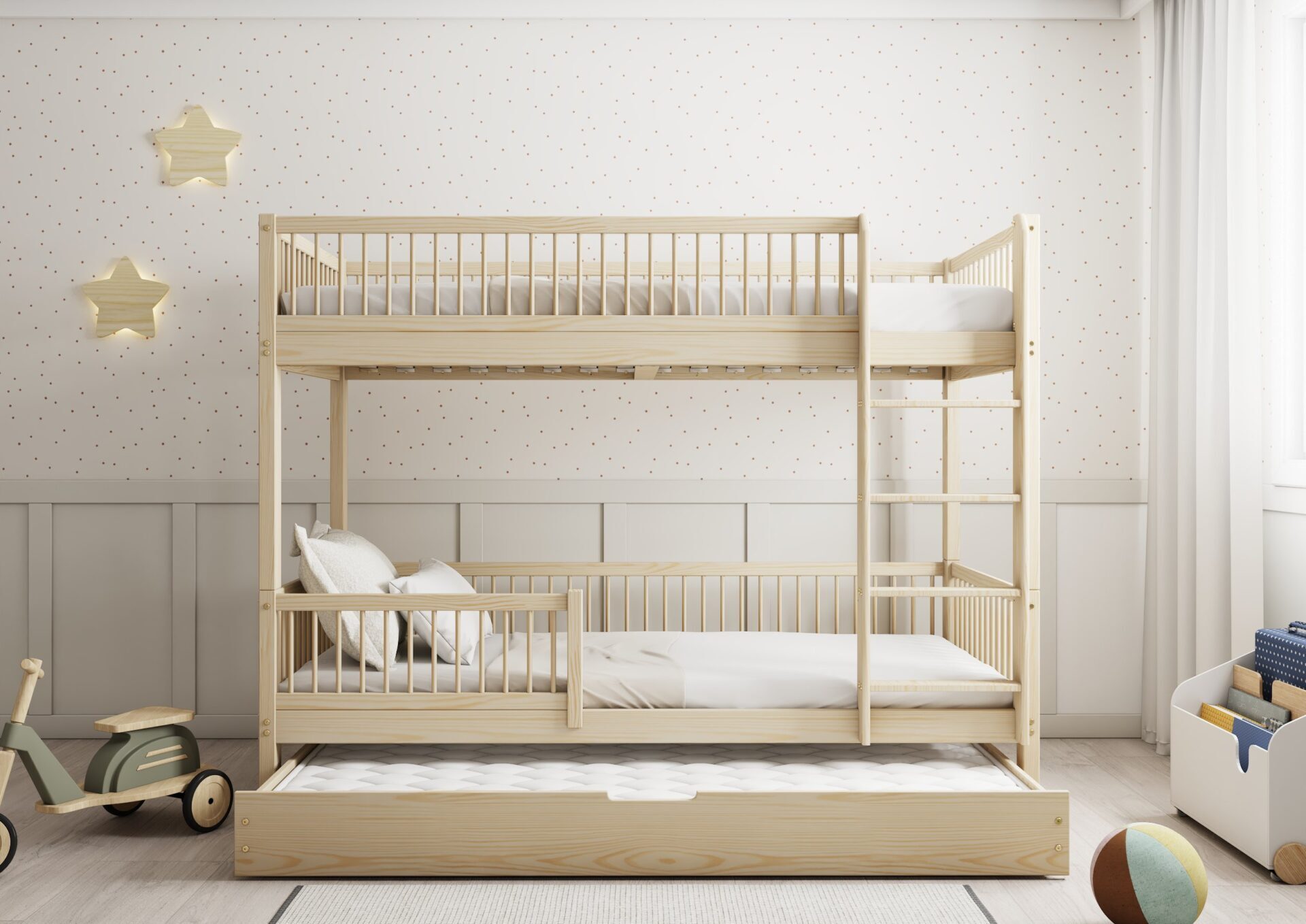 Łóżeczko Molly to doskonała propozycja dla rodziców, którzy cenią bezpieczeństwo, trwałość i estetykę. Barierki z okrągłymi szczebelkami, idealnie pasują zarówno do pokoju chłopca, jak i dziewczynki. Łóżko jest wykonane z naturalnych materiałów, a jego zaokrąglone brzegi zapewniają bezpieczeństwo podczas użytkowania. Dzięki stabilnej konstrukcji wytrzymuje nawet najbardziej aktywne zabawy.