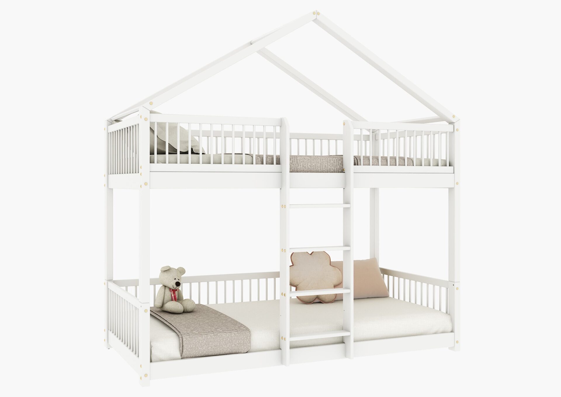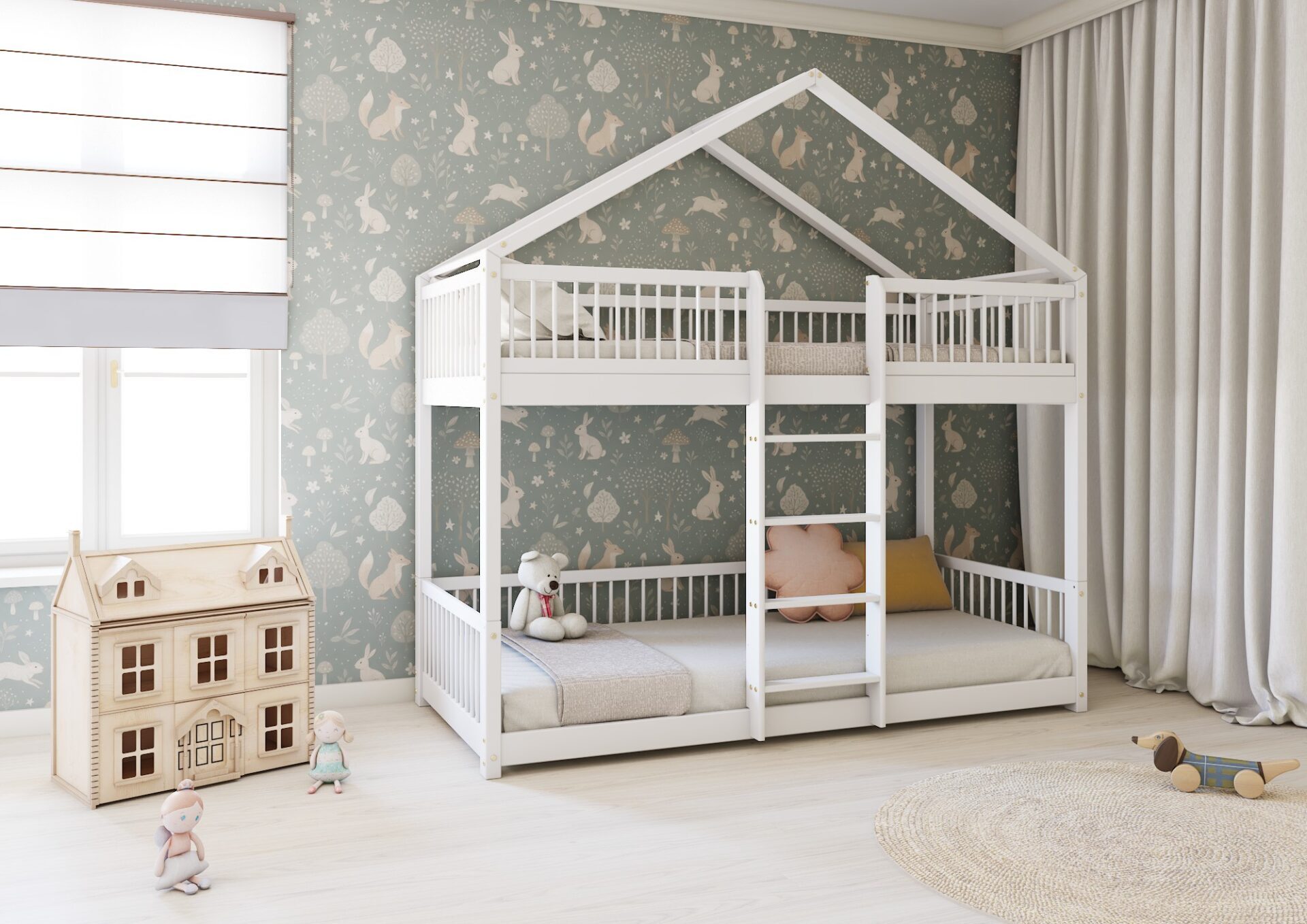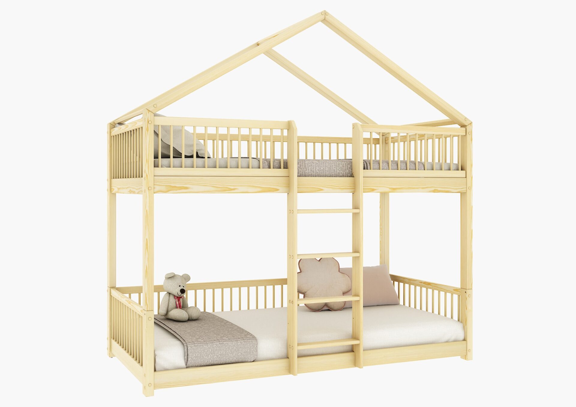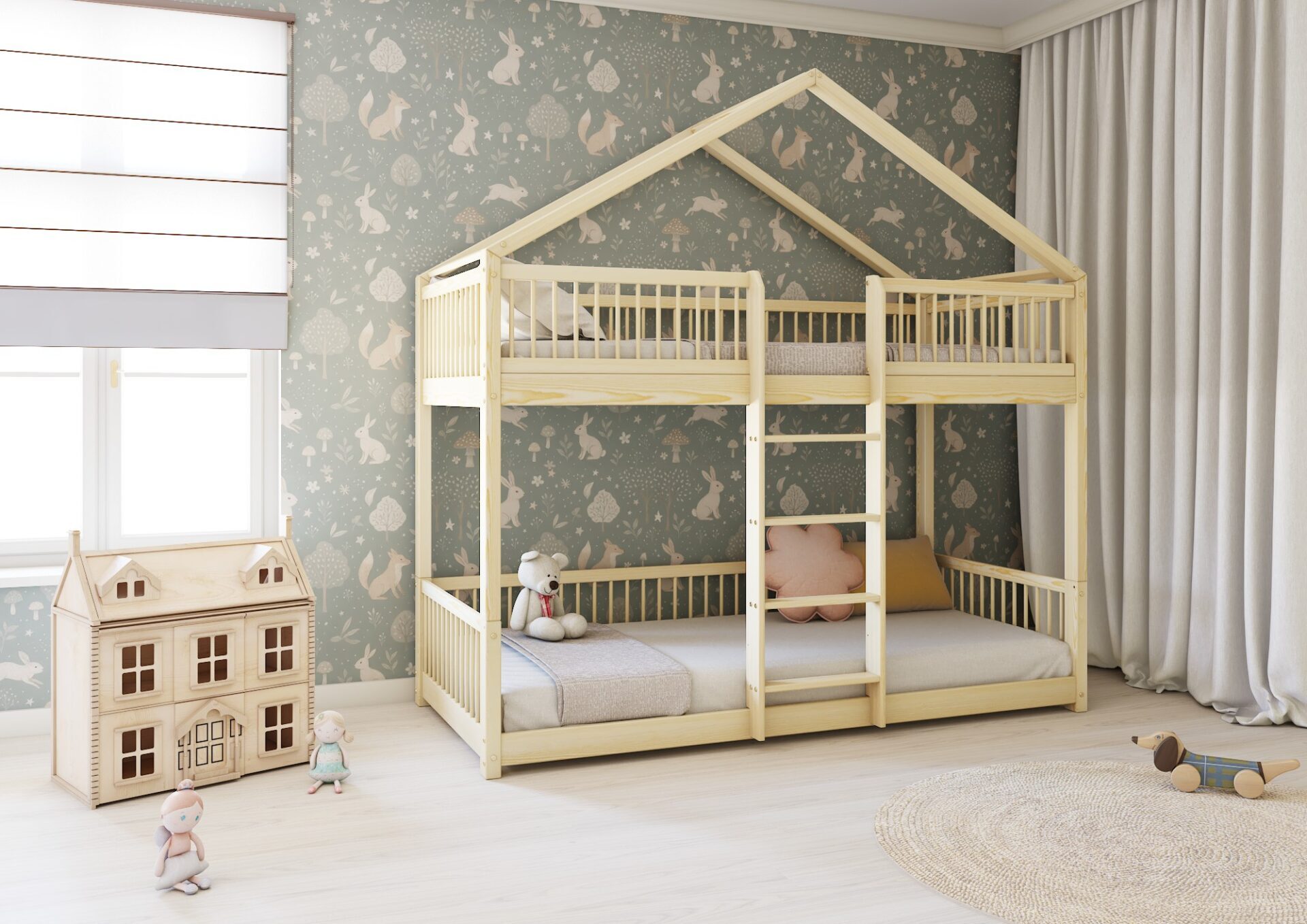 Łóżko domek MURLO to klasyka, która łączy skandynawski minimalizm z funkcjonalnością. Jego prosty dach i pionowe, okrągłe szczebelki tworzą przytulną przestrzeń do zabawy i odpoczynku. Wykonane z najwyższej jakości drewna sosnowego z certyfikatem FSC®, zapewnia bezpieczeństwo i trwałość, a zaokrąglone brzegi i ekologiczne farby dbają o zdrowie dziecka. Idealne jako baza do kreatywnych dekoracji, takich jak girlandy czy lampki.