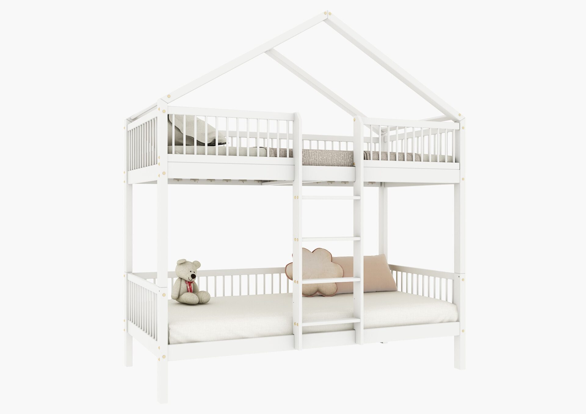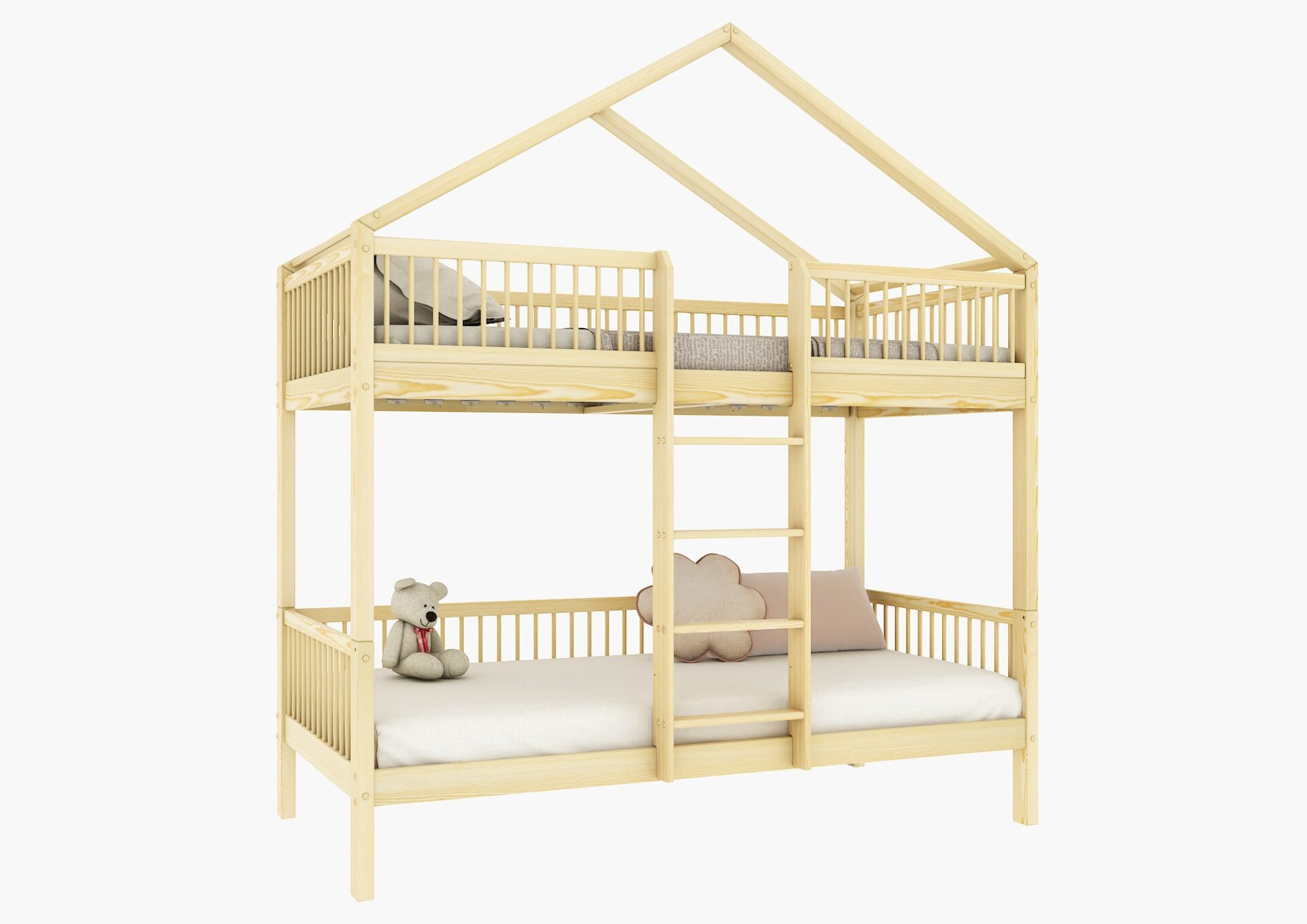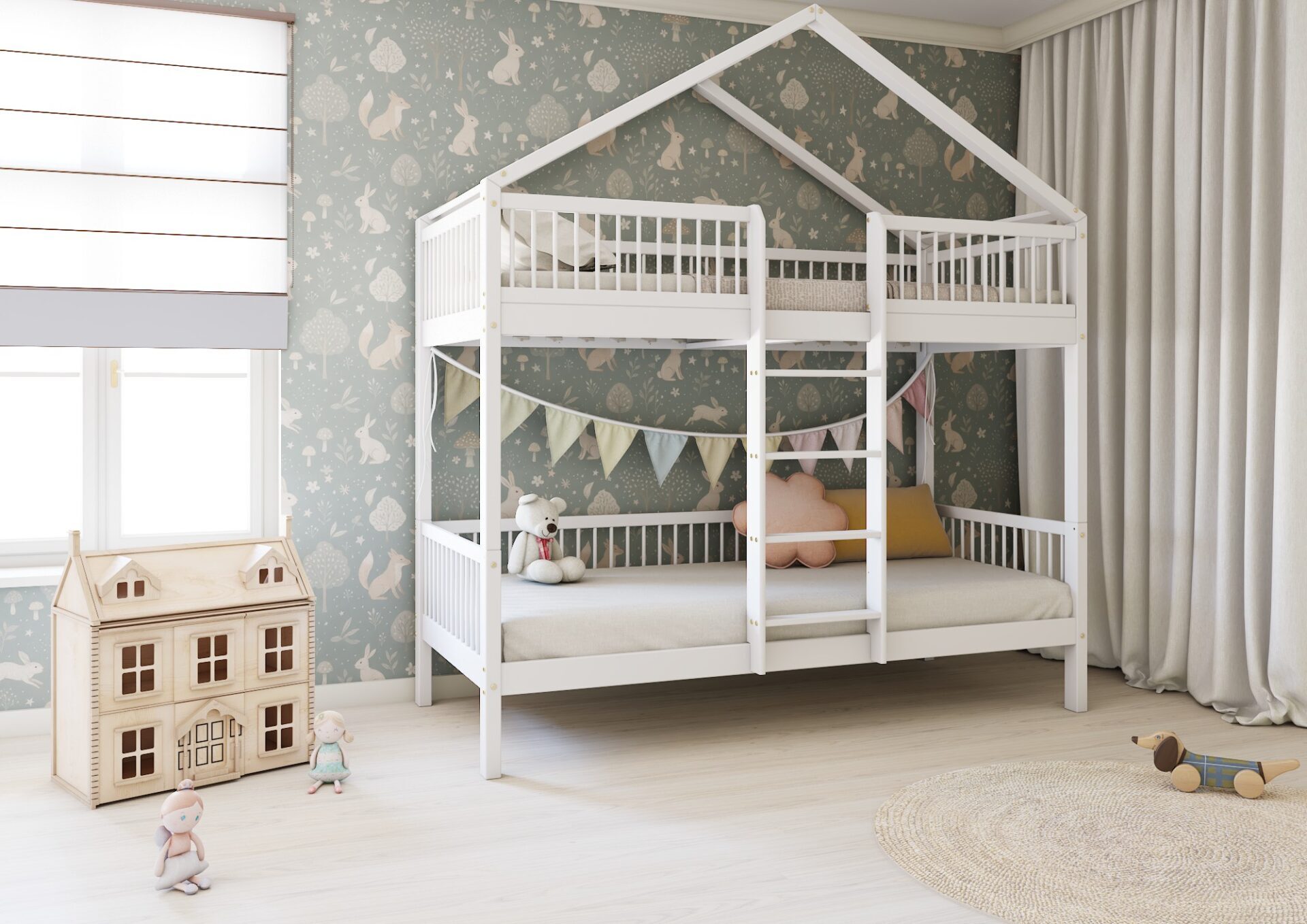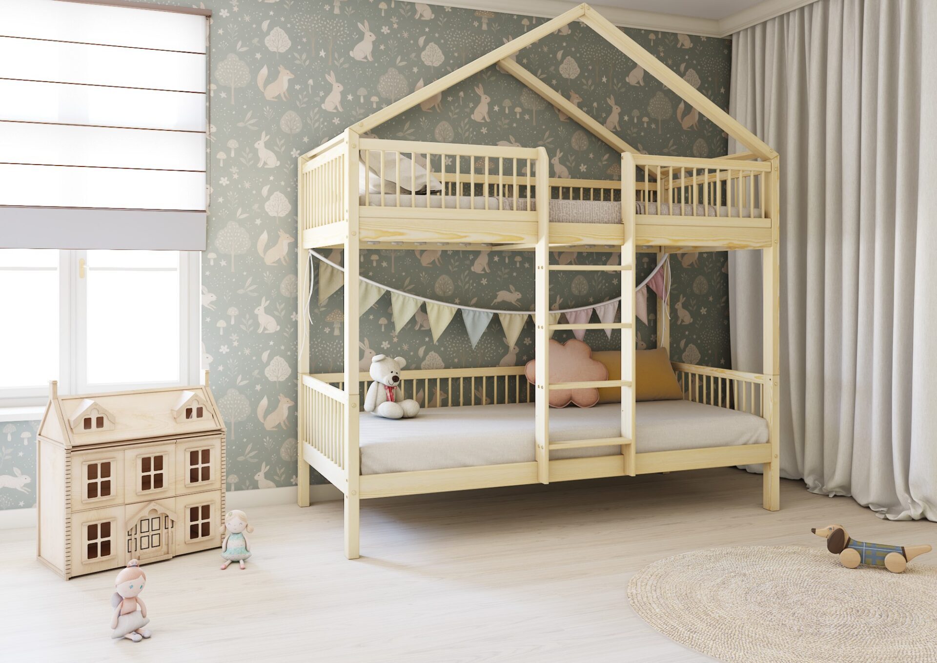 Łóżko domek MURLO to klasyka, która łączy skandynawski minimalizm z funkcjonalnością. Jego prosty dach i pionowe, okrągłe szczebelki tworzą przytulną przestrzeń do zabawy i odpoczynku. Wykonane z najwyższej jakości drewna sosnowego z certyfikatem FSC®, zapewnia bezpieczeństwo i trwałość, a zaokrąglone brzegi i ekologiczne farby dbają o zdrowie dziecka. Idealne jako baza do kreatywnych dekoracji, takich jak girlandy czy lampki.