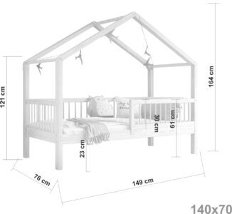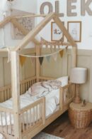 Inspiracją do powstania łóżeczka Musa była skandynawska stylistyka wnętrz, która charakteryzuje się jasną kolorystyką, prostymi kształtami oraz naturalnymi surowcami. Do produkcji mebla wykorzystano wysokiej jakości klejonkę sosnową klasy 1 o wysokiej wytrzymałości. Gładka powierzchnia elementów drewnianych to efekt dokładnego szlifowania. Listwy tworzące dach domku to doskonałe miejsce do zawieszenia lampek, zabawek czy różnych dekoracji.