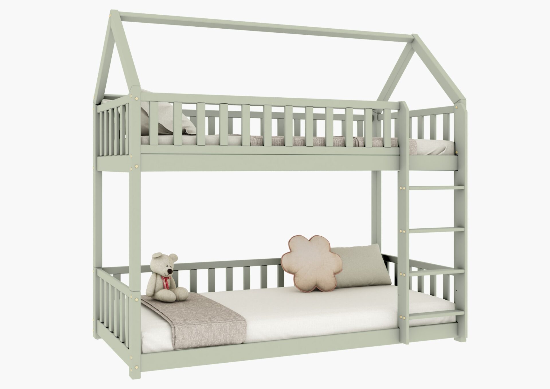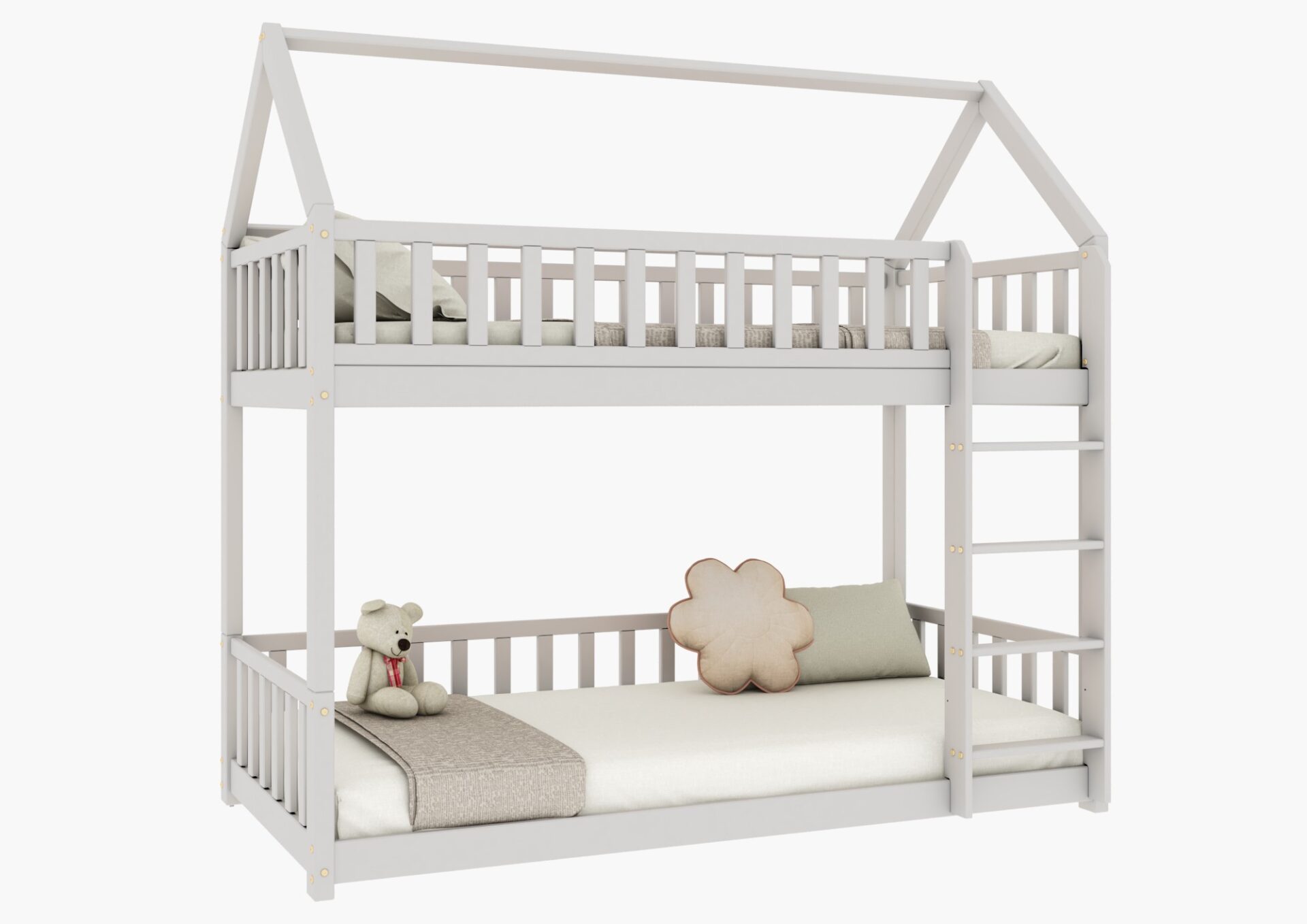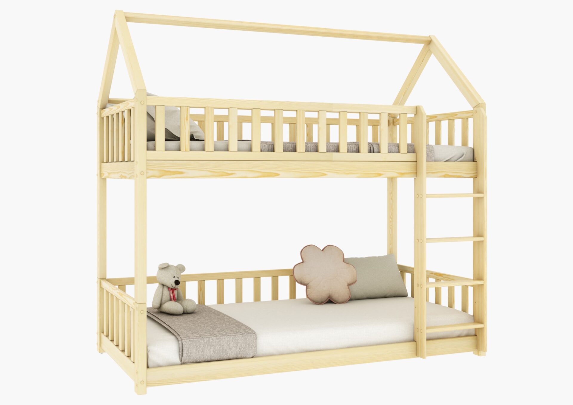 Cena obejmuje ramę łóżka piętrowego domek Portia z barierkami oraz stelażem z listew sprężynujących. Mebel do samodzielnego złożenia. W paczkach znajdą Państwo przejrzystą instrukcję oraz niezbędne elementy montażowe.