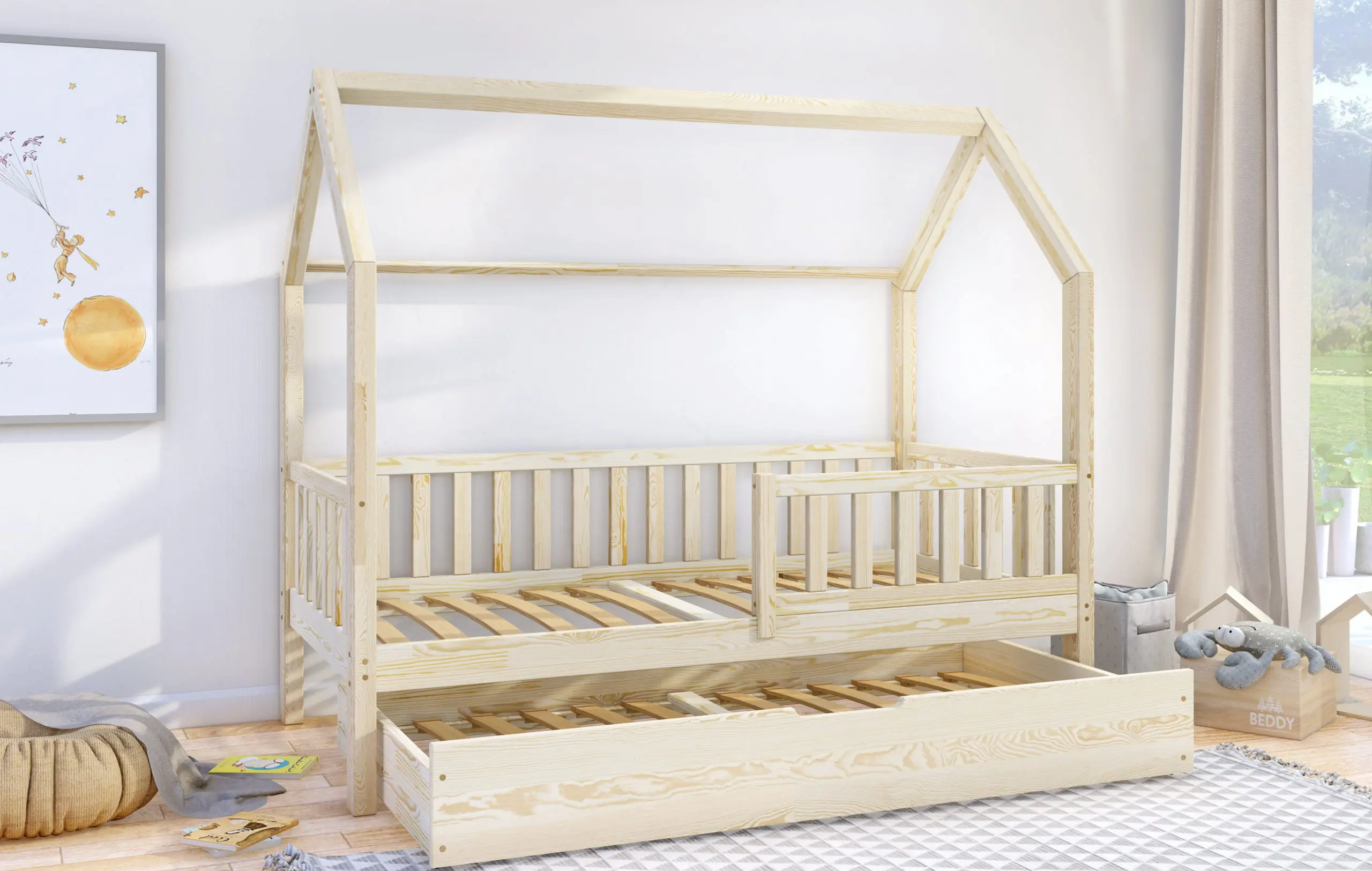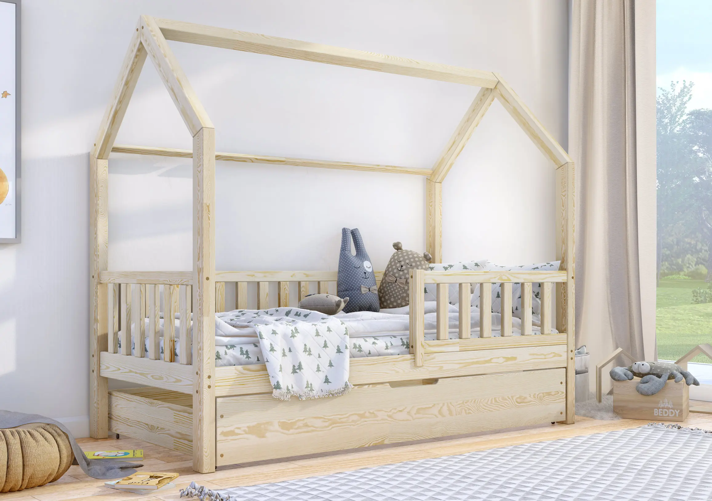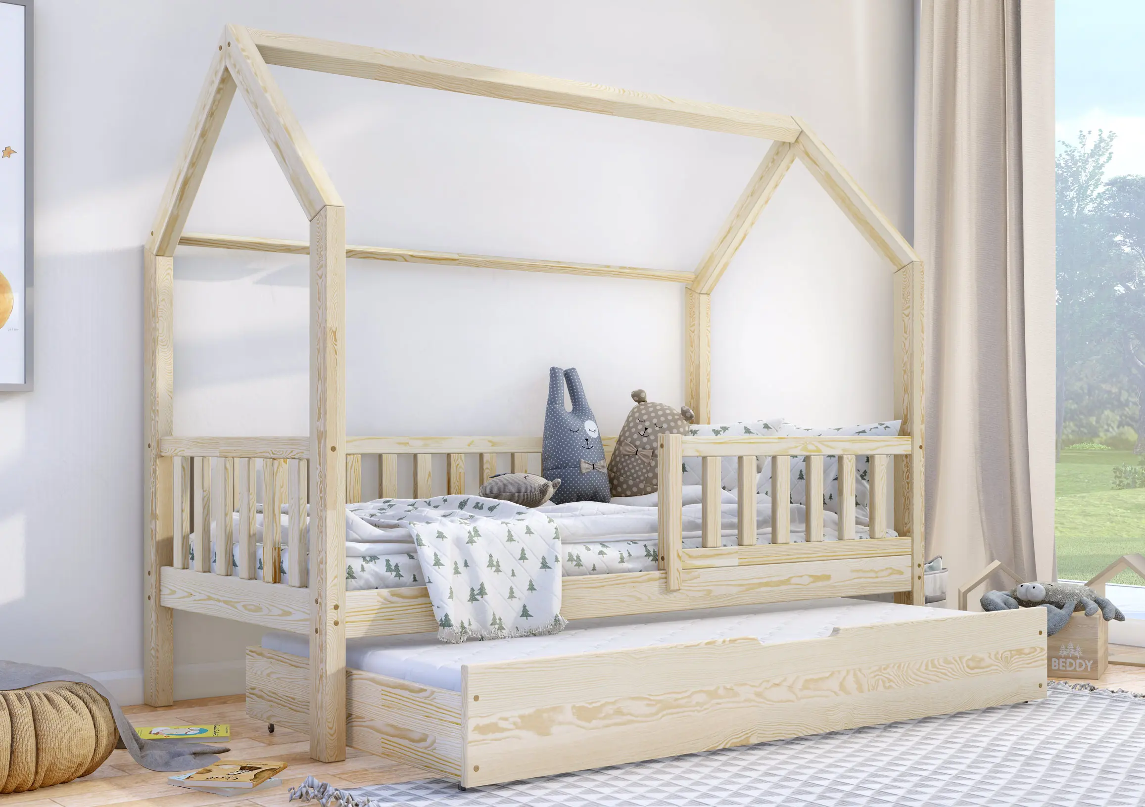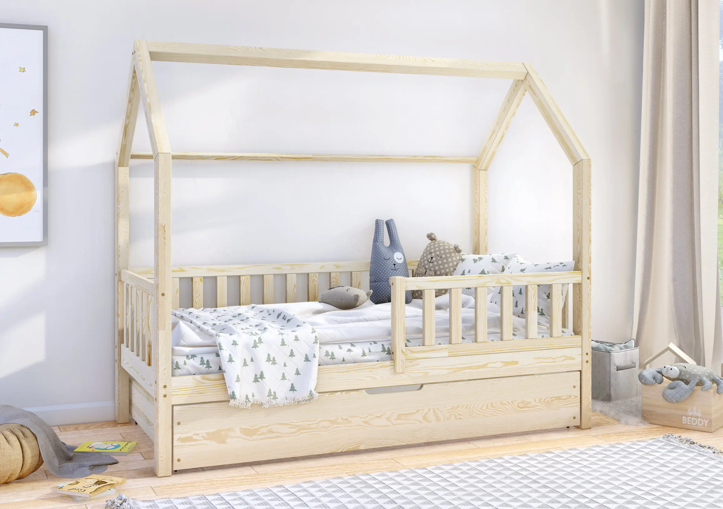Klasyczne łóżeczko domek Portia Bis2 to propozycja mebla dla dzieci w skandynawskim stylu. Drewniana rama, geometryczne kształty i jasna kolorystyka idealnie oddają najważniejsze cechy wspomnianego kierunku w aranżacji wnętrz. Model wyróżnia się także gładkimi, zaoblonymi powierzchniami, modną kolorystyką oraz wysoką jakością wykonania. Do wyboru wiele rozmiarów. W zestawie wysuwana szuflada z funkcją spania z kółkami o miękkiej, gumowej warstwie, chroniącą podłogę przez zarysowaniami. Do wyboru wiele rozmiarów.
