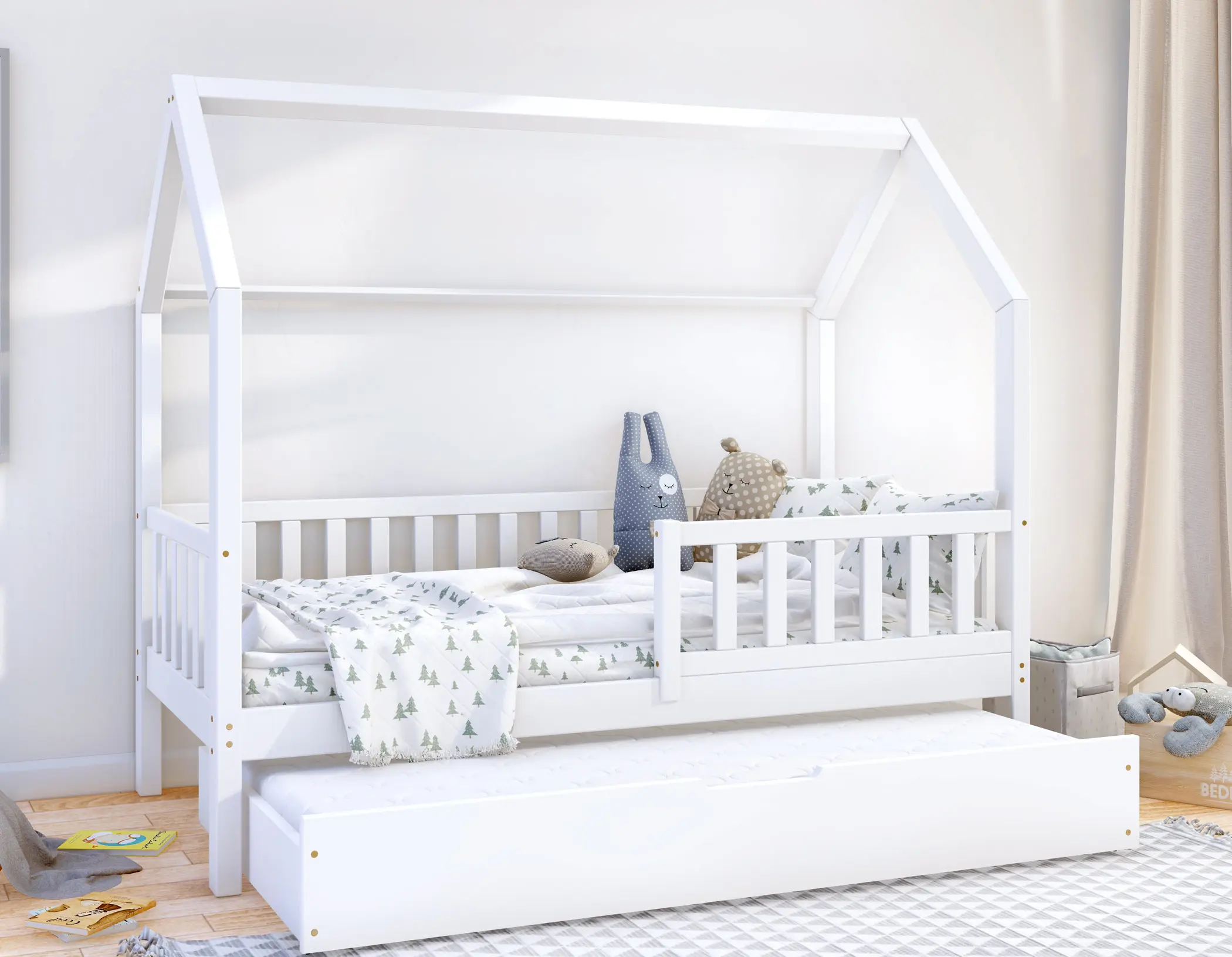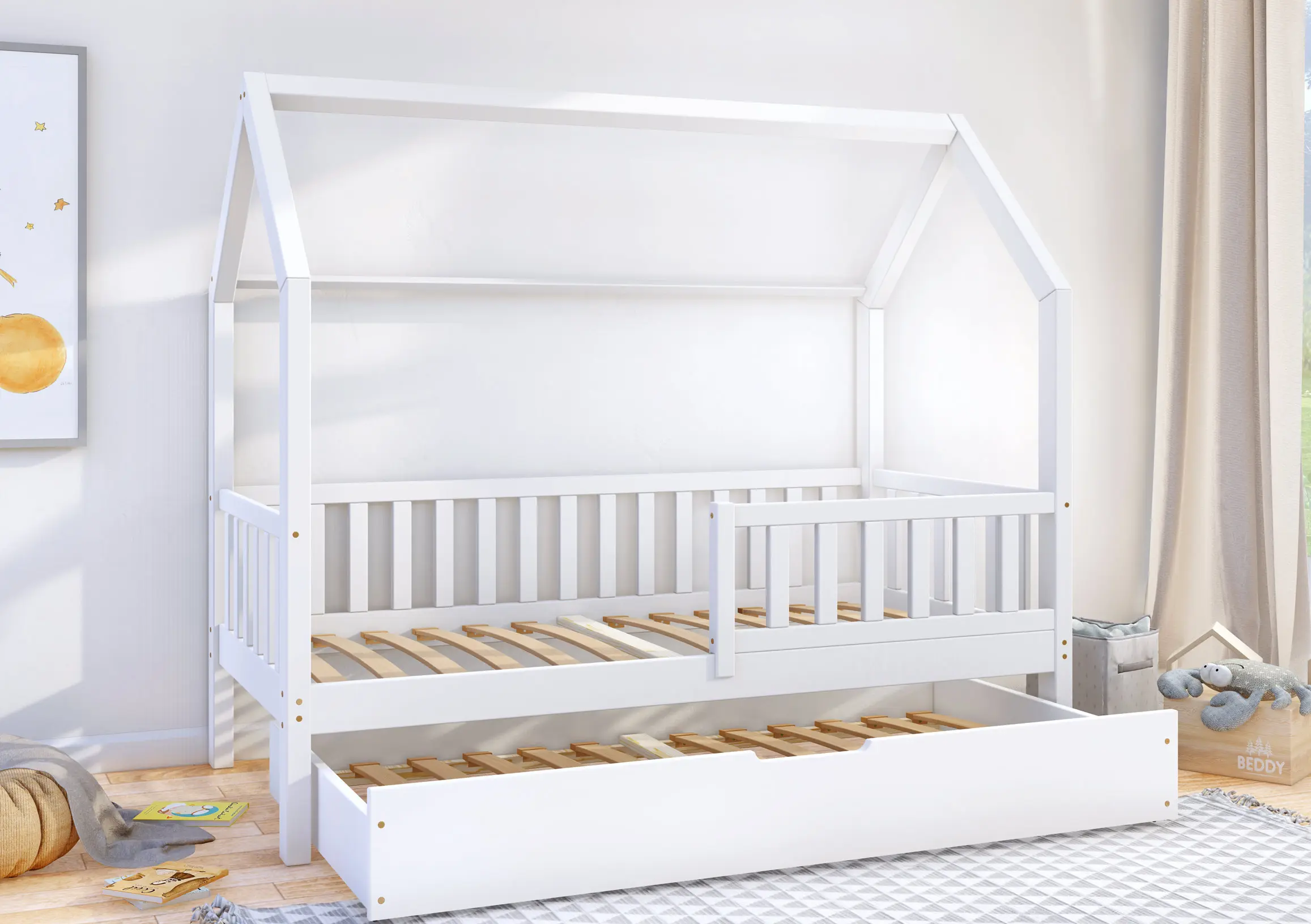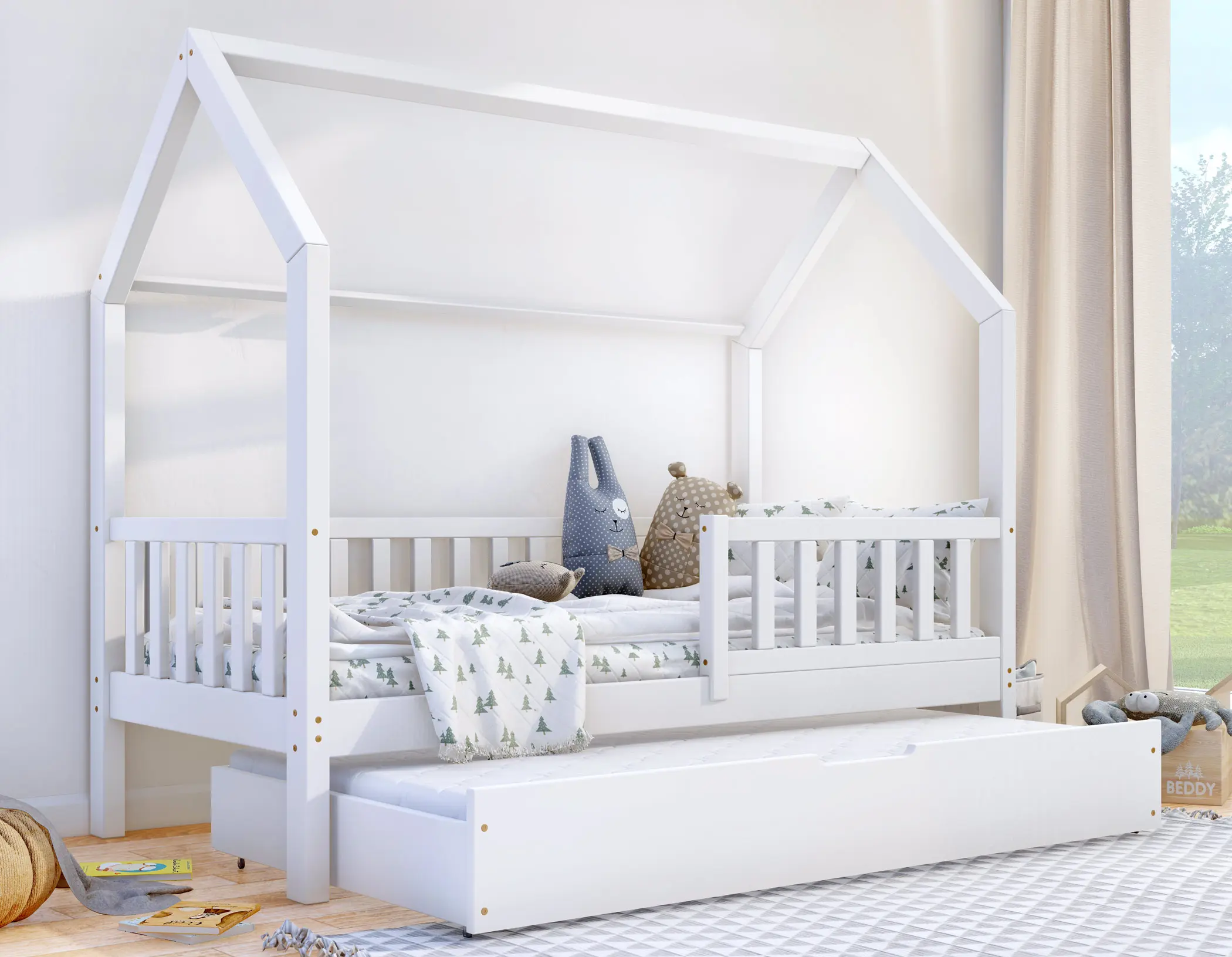 Klasyczne łóżeczko domek Portia Bis2 to propozycja mebla dla dzieci w skandynawskim stylu. Drewniana rama, geometryczne kształty i jasna kolorystyka idealnie oddają najważniejsze cechy wspomnianego kierunku w aranżacji wnętrz. Model wyróżnia się także gładkimi, zaoblonymi powierzchniami, modną kolorystyką oraz wysoką jakością wykonania. Do wyboru wiele rozmiarów. W zestawie wysuwana szuflada z funkcją spania z kółkami o miękkiej, gumowej warstwie, chroniącą podłogę przez zarysowaniami. Do wyboru wiele rozmiarów.