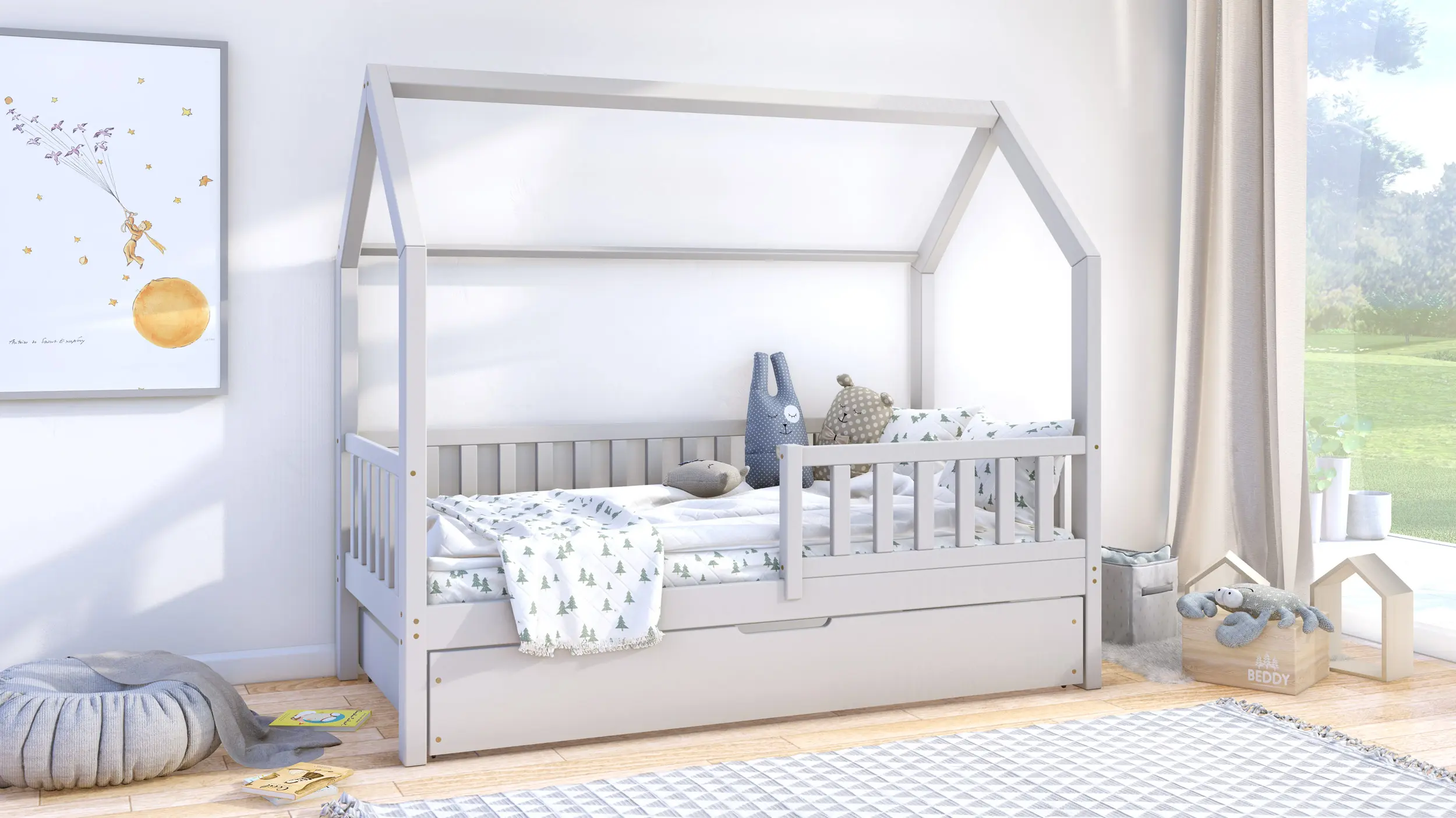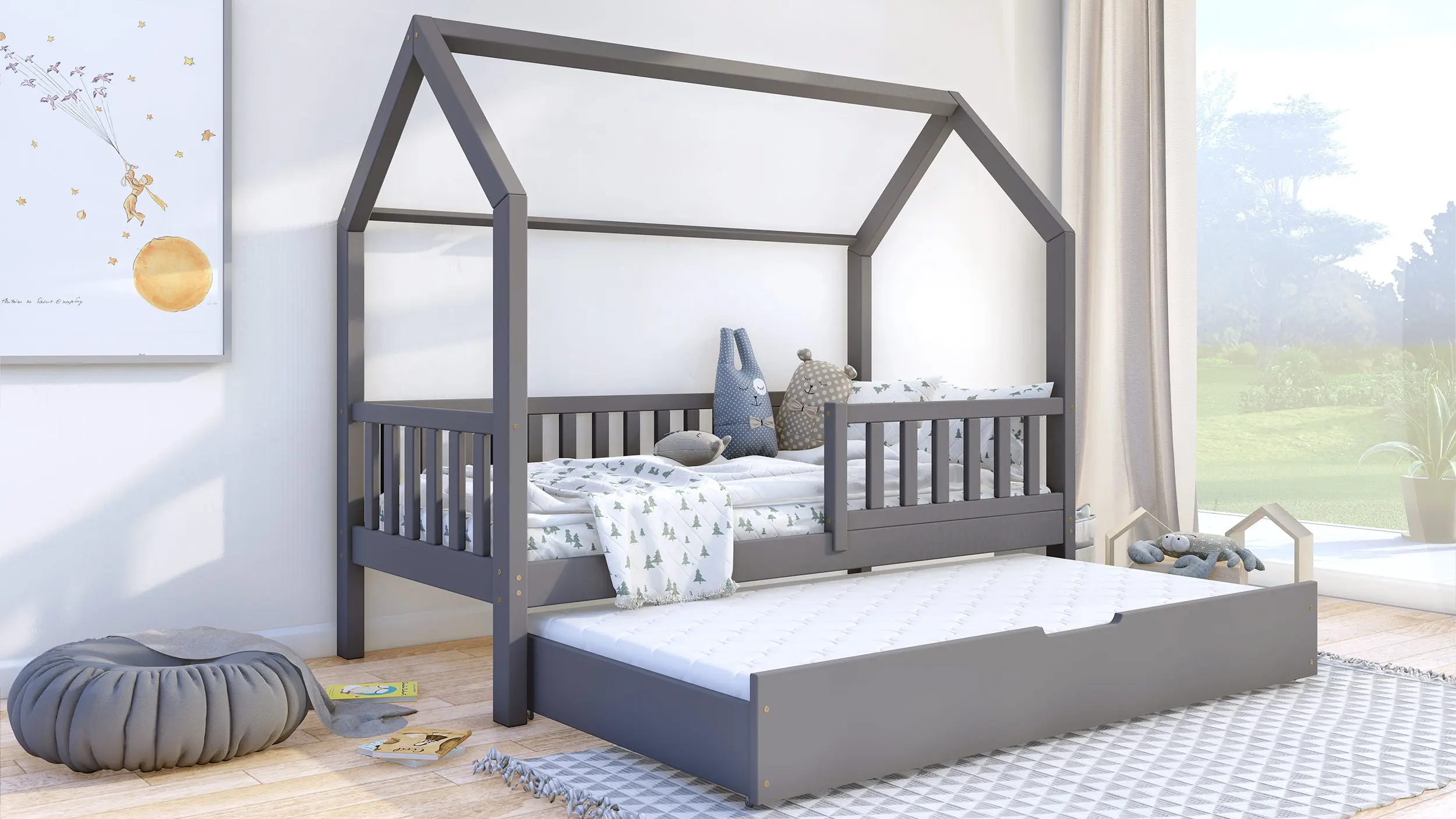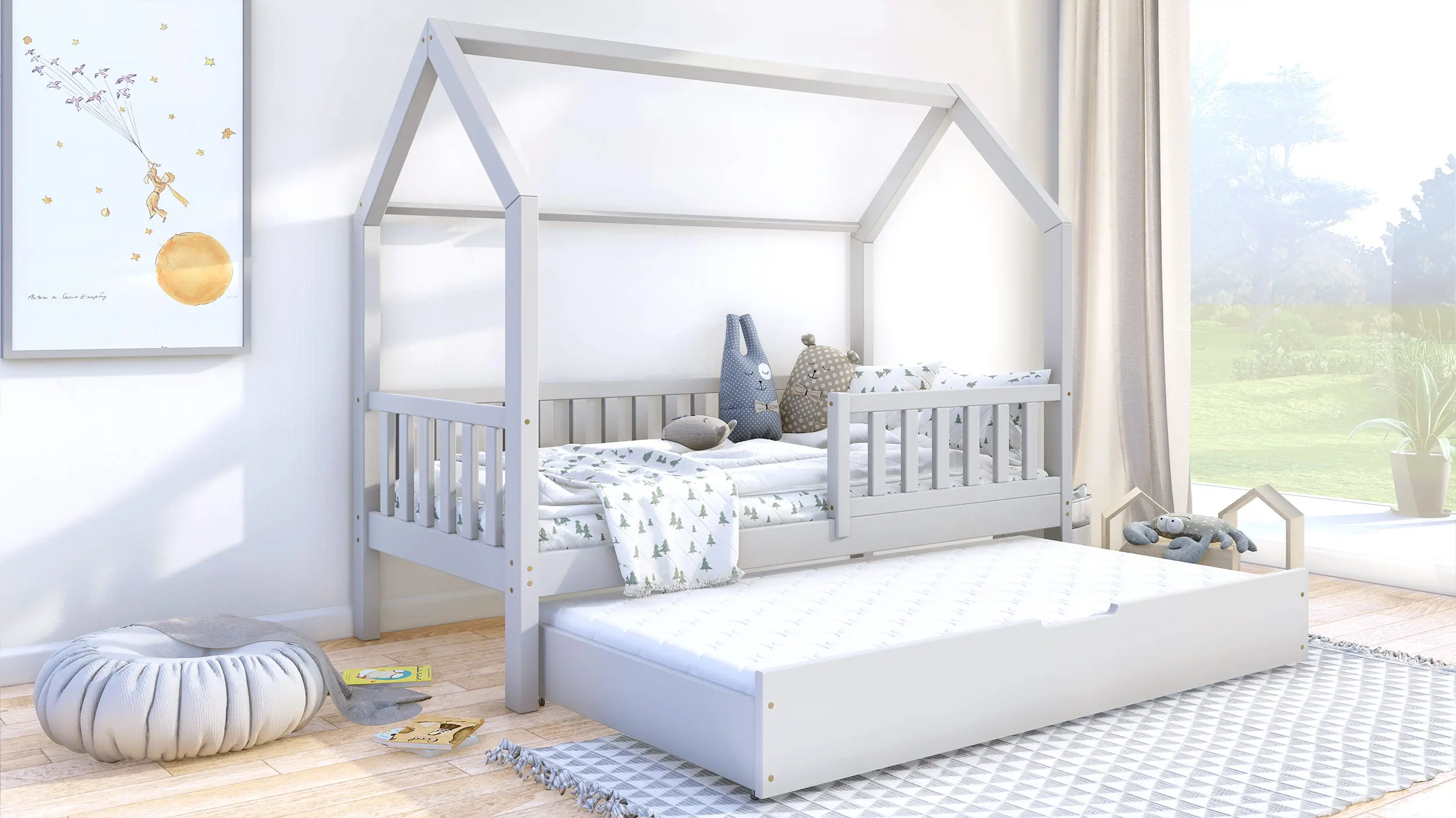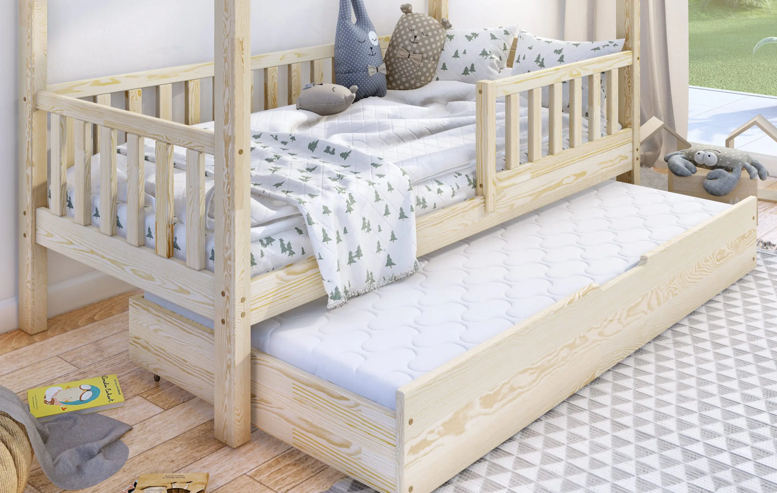 Klasyczne łóżeczko domek Portia Bis2 to propozycja mebla dla dzieci w skandynawskim stylu. Drewniana rama, geometryczne kształty i jasna kolorystyka idealnie oddają najważniejsze cechy wspomnianego kierunku w aranżacji wnętrz. Model wyróżnia się także gładkimi, zaoblonymi powierzchniami, modną kolorystyką oraz wysoką jakością wykonania. Do wyboru wiele rozmiarów. W zestawie wysuwana szuflada z funkcją spania z kółkami o miękkiej, gumowej warstwie, chroniącą podłogę przez zarysowaniami. Do wyboru wiele rozmiarów.