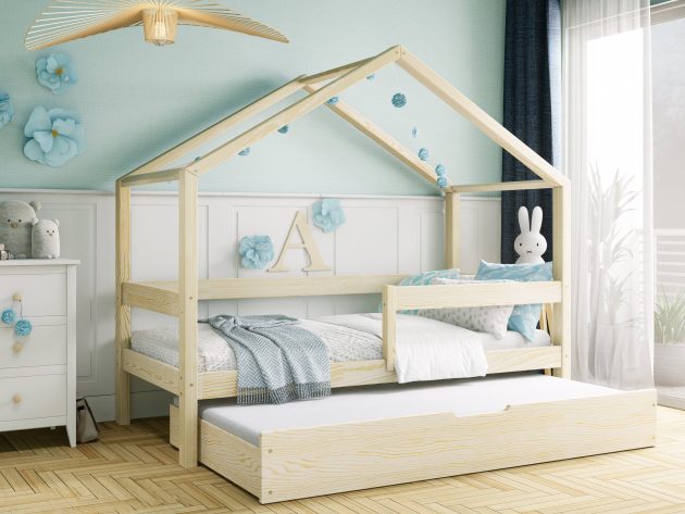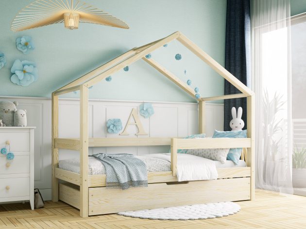 Klasyczne łóżko domek Portia to propozycja mebla dla dzieci w skandynawskim stylu. Drewniana rama, geometryczne kształty i jasna kolorystyka idealnie oddają najważniejsze cechy wspomnianego kierunku w aranżacji wnętrz. Model wyróżnia się także gładkimi, zaoblonymi powierzchniami, modną kolorystyką oraz wysoką jakością wykonania. Do wyboru wiele rozmiarów.