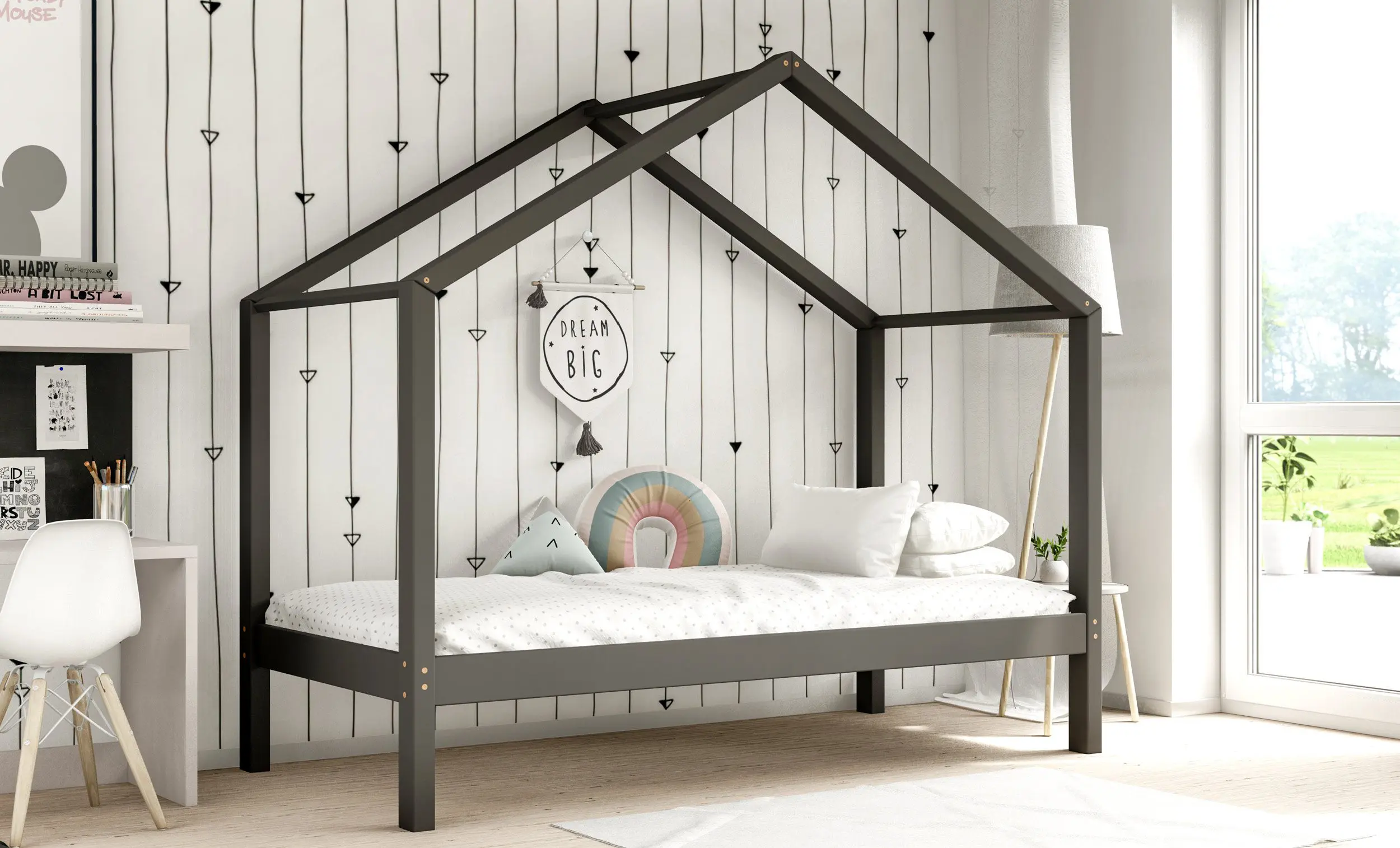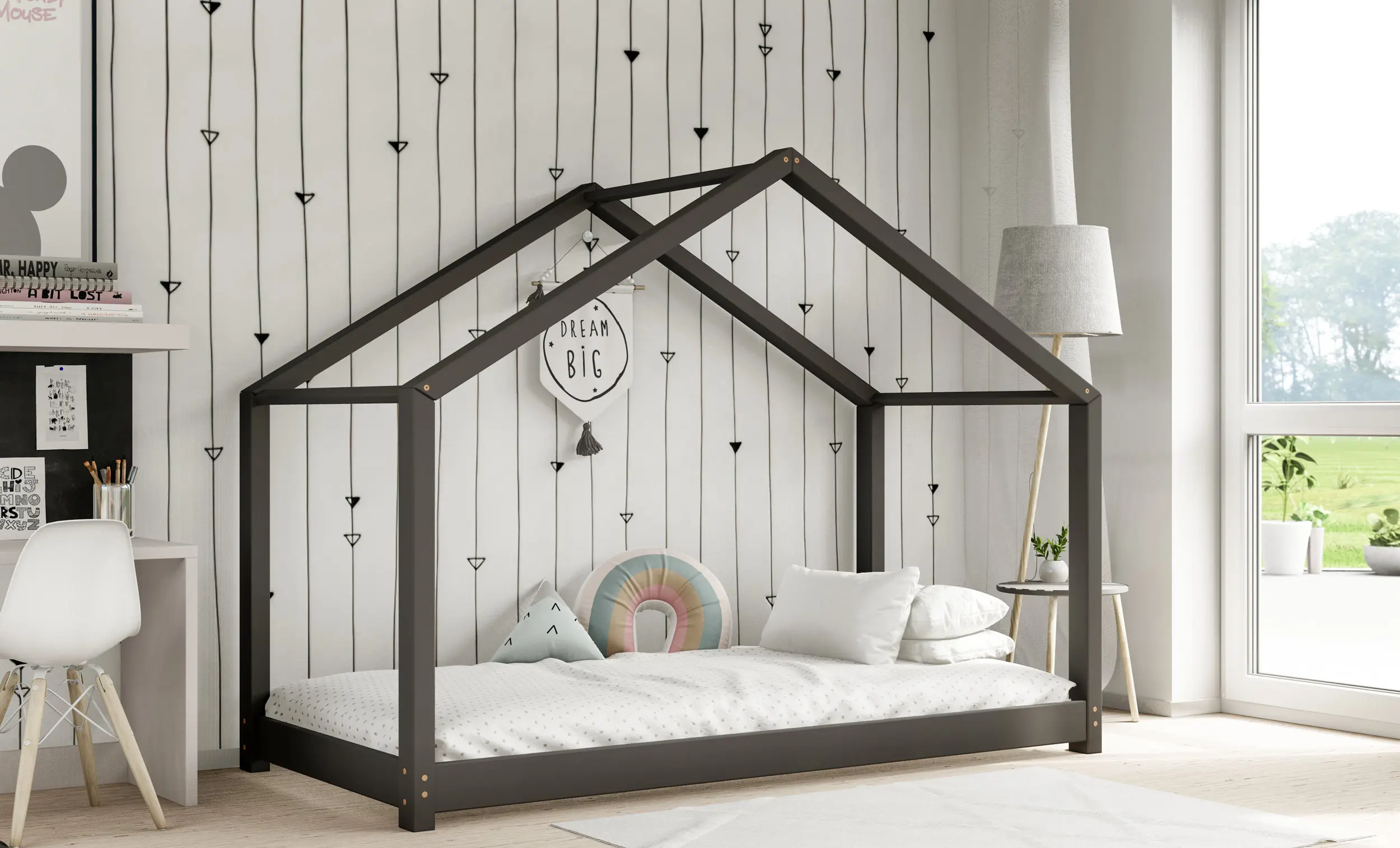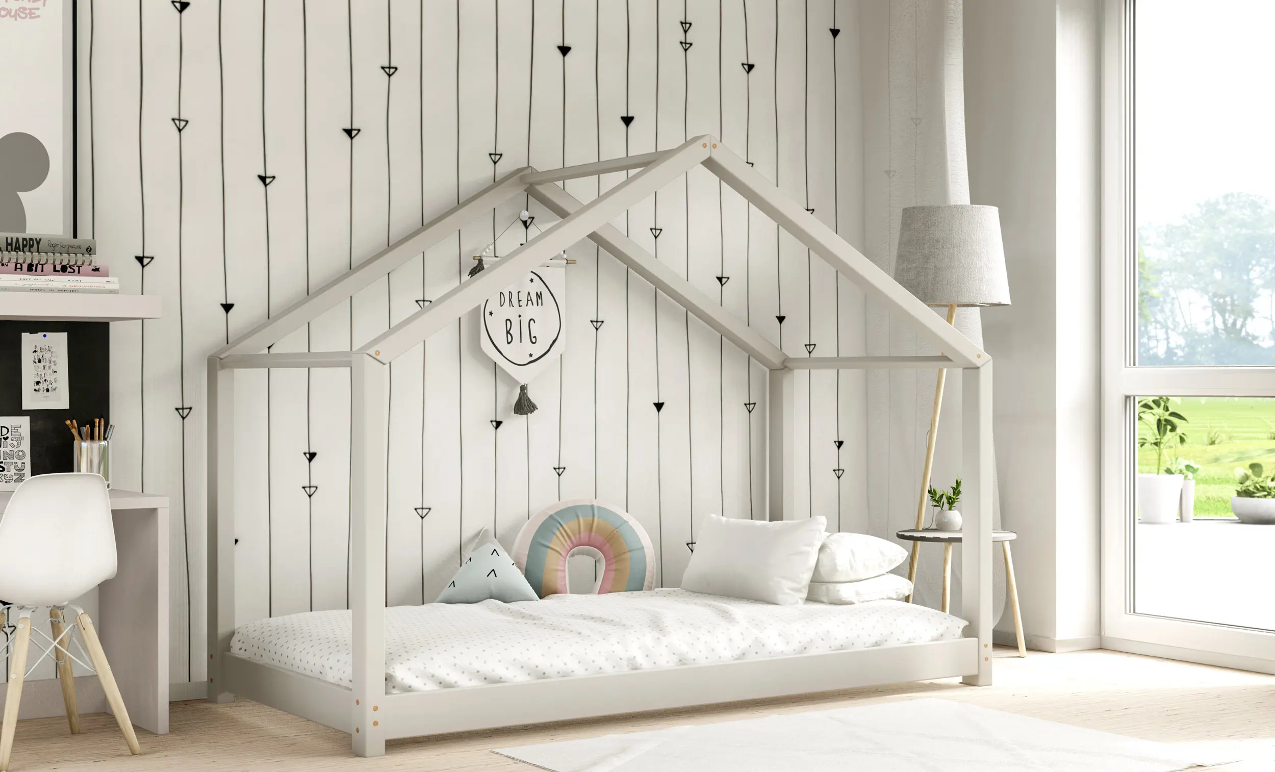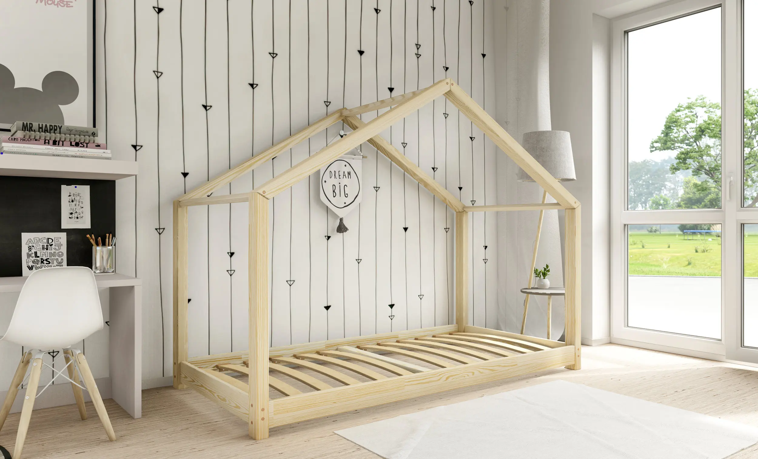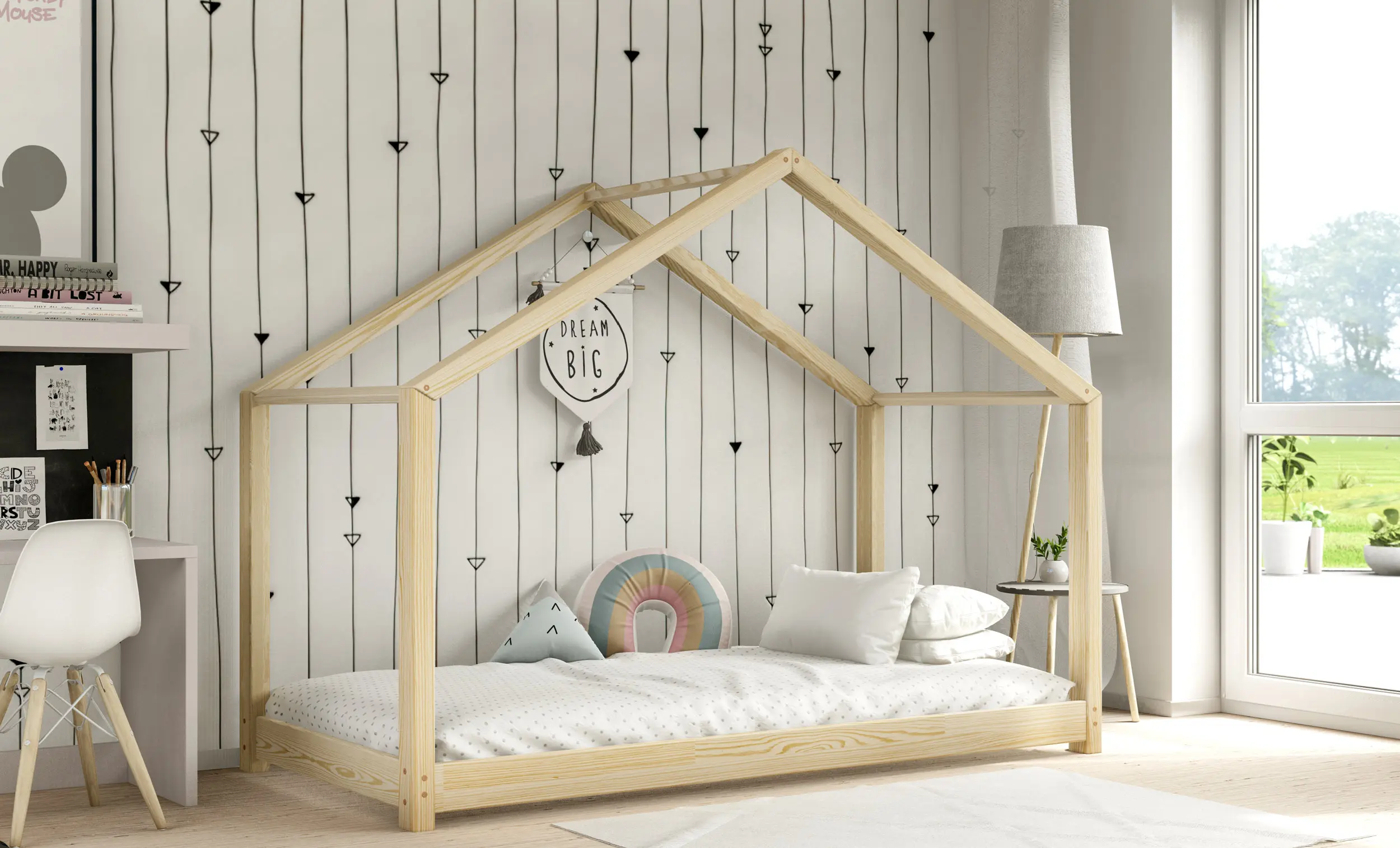 Drewniane łóżko domek RIKI to model otwarty bez barierek. Wyjątkowy design nie tylko urozmaica wygląd mebla, ale jest świetnym rozwiązaniem dla pokoi dziecięcych w domu czy mieszkaniu z poddaszem. Dodatkowo produkt występuje w kilku rozmiarach i kolorach do wyboru. Jego charakterystycznymi cechami są wysoka jakość użytych materiałów oraz dbałość o bezpieczeństwo maluchów, dzięki zaokrąglonym brzegom i gładkim powierzchniom.