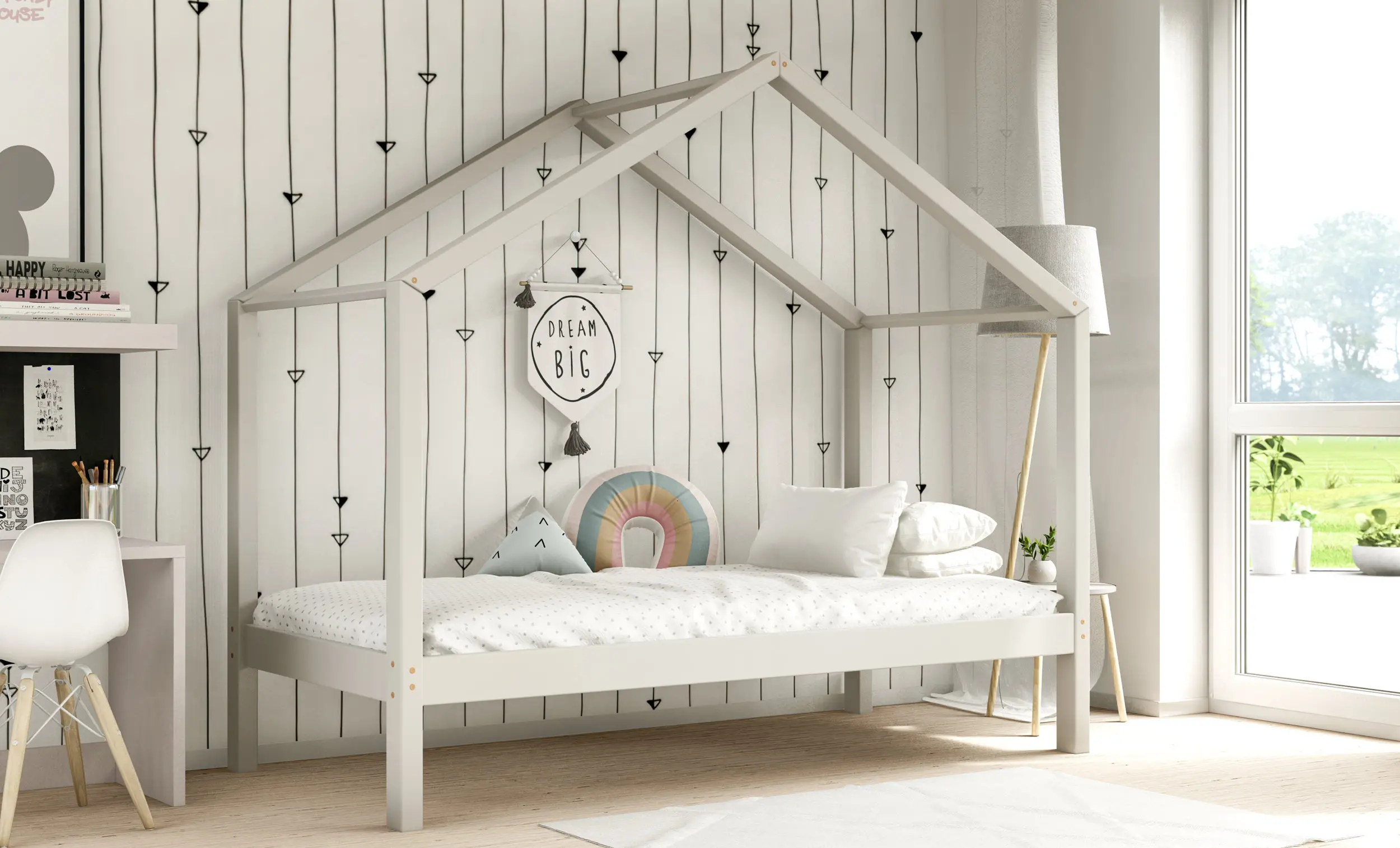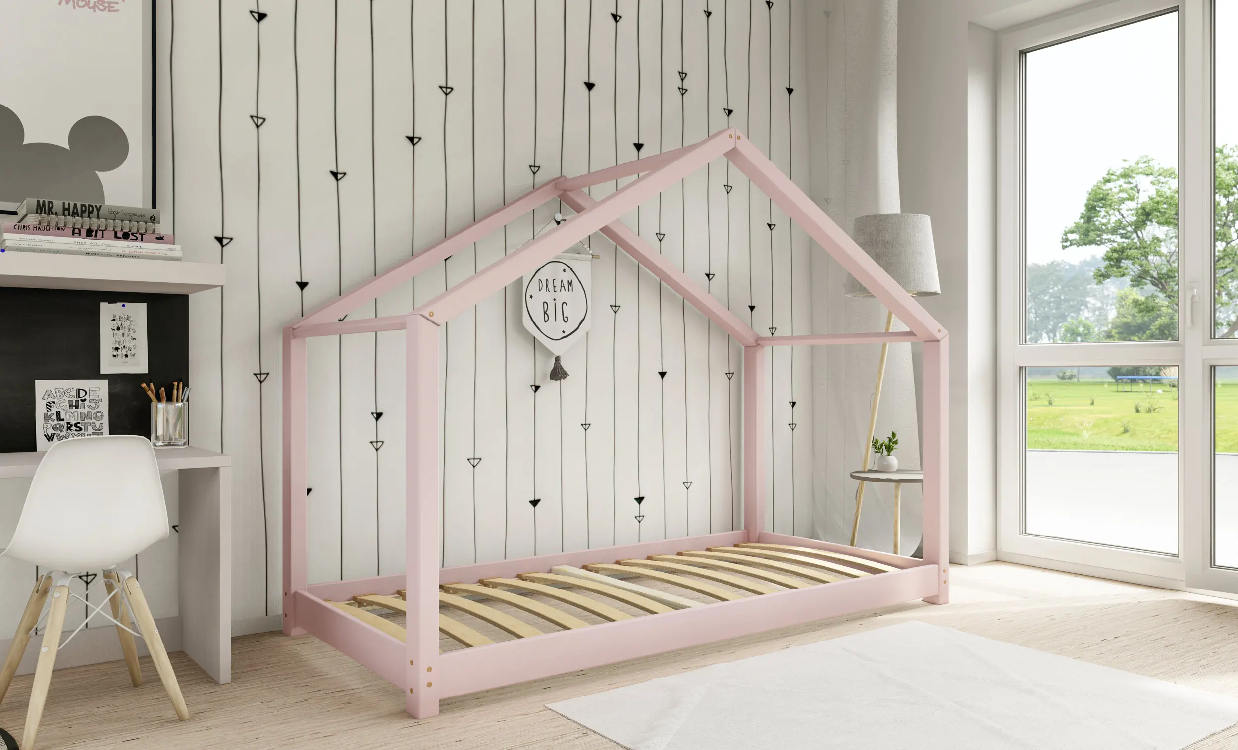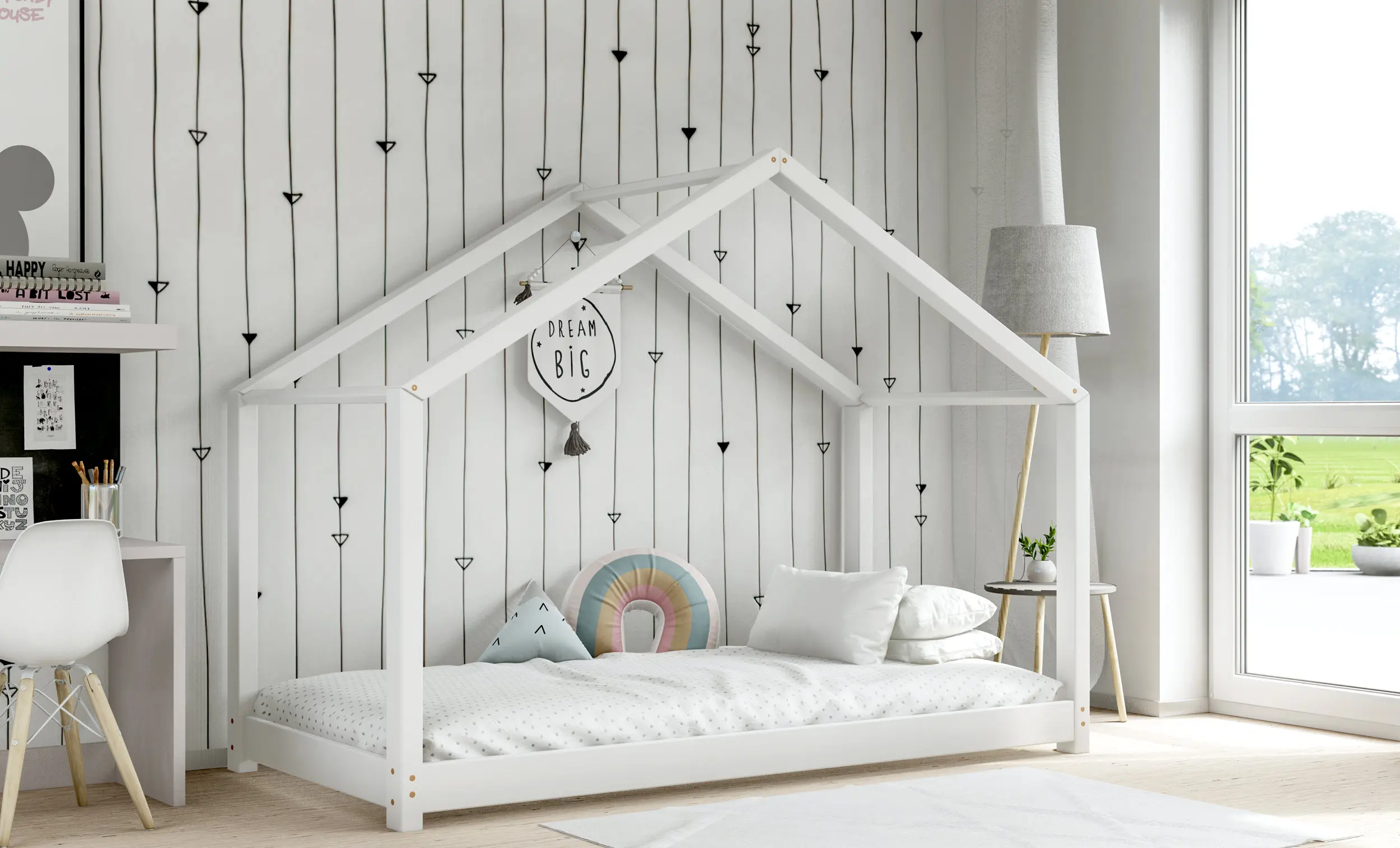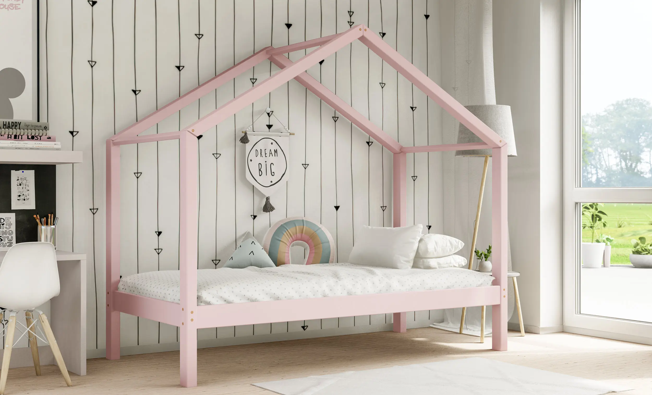 Drewniane łóżko domek RIKI to model otwarty bez barierek. Wyjątkowy design nie tylko urozmaica wygląd mebla, ale jest świetnym rozwiązaniem dla pokoi dziecięcych w domu czy mieszkaniu z poddaszem. Dodatkowo produkt występuje w kilku rozmiarach i kolorach do wyboru. Jego charakterystycznymi cechami są wysoka jakość użytych materiałów oraz dbałość o bezpieczeństwo maluchów, dzięki zaokrąglonym brzegom i gładkim powierzchniom.