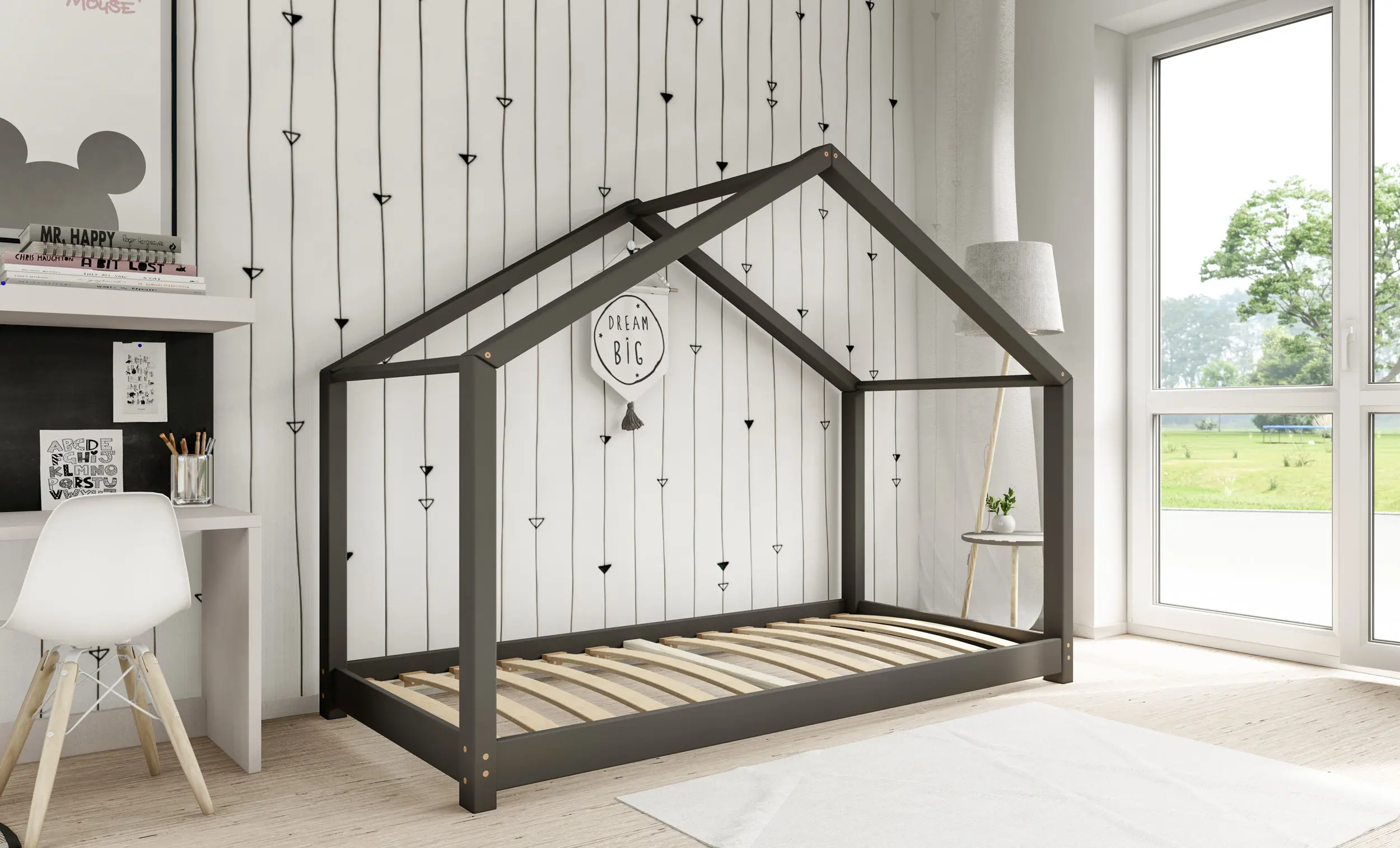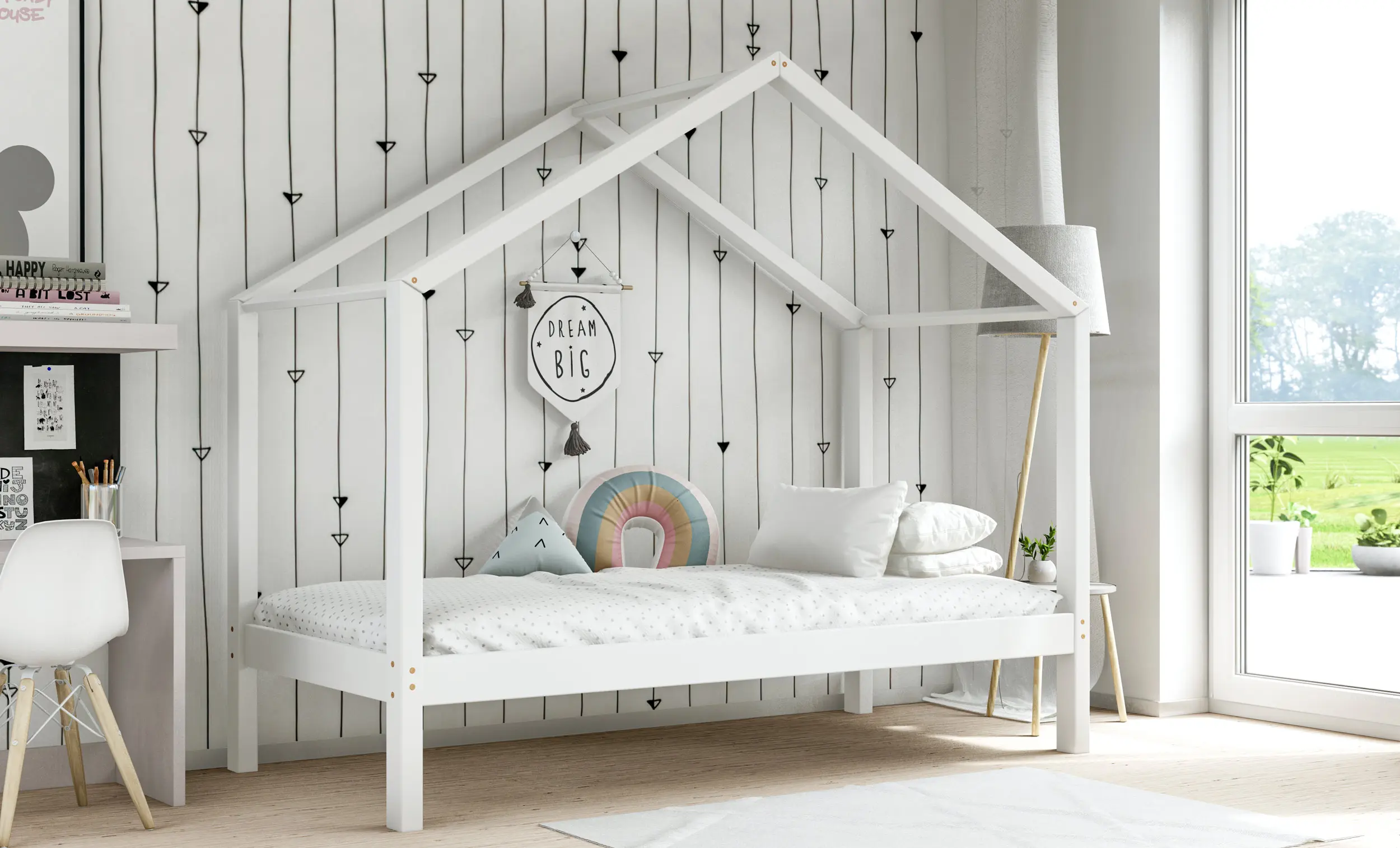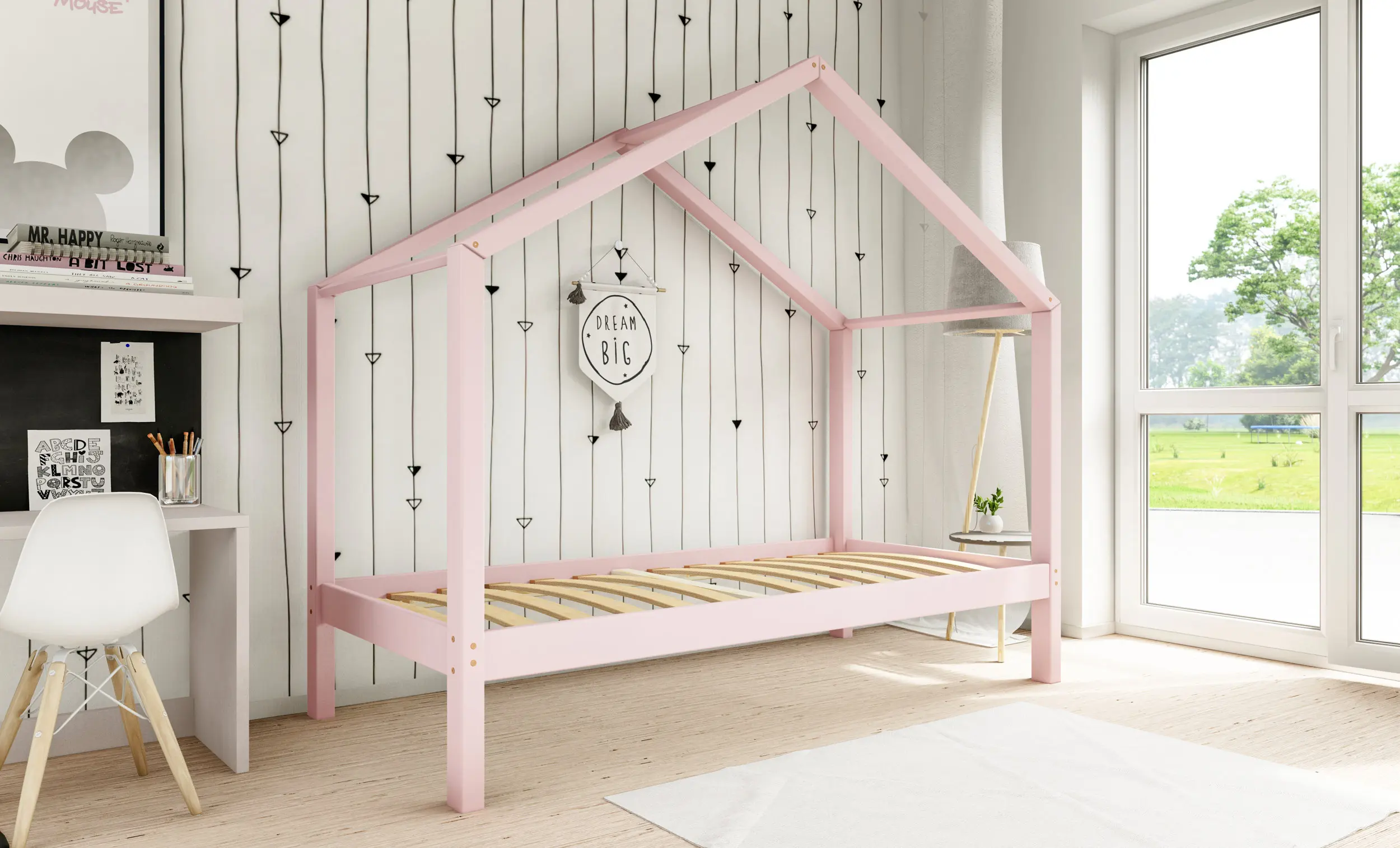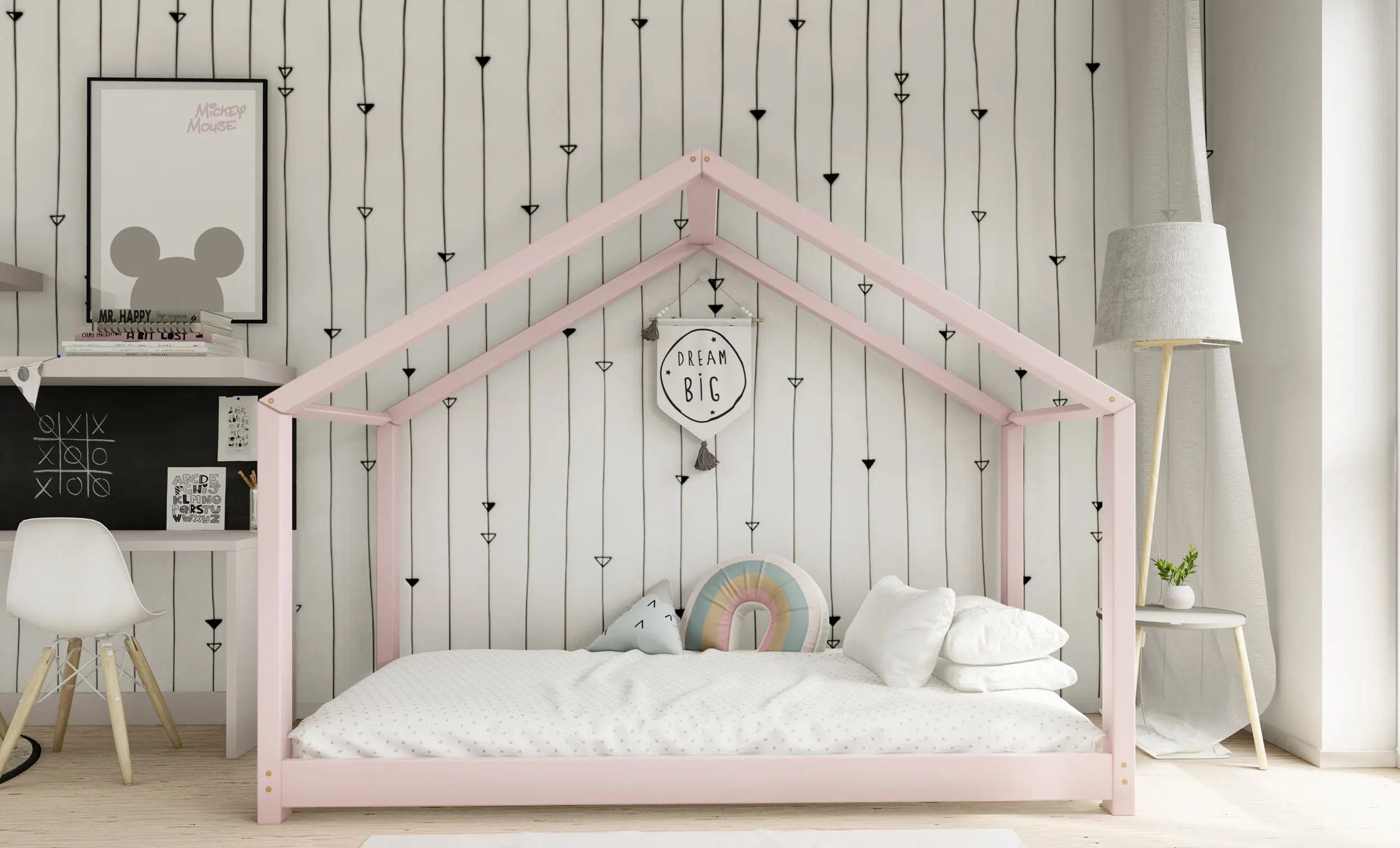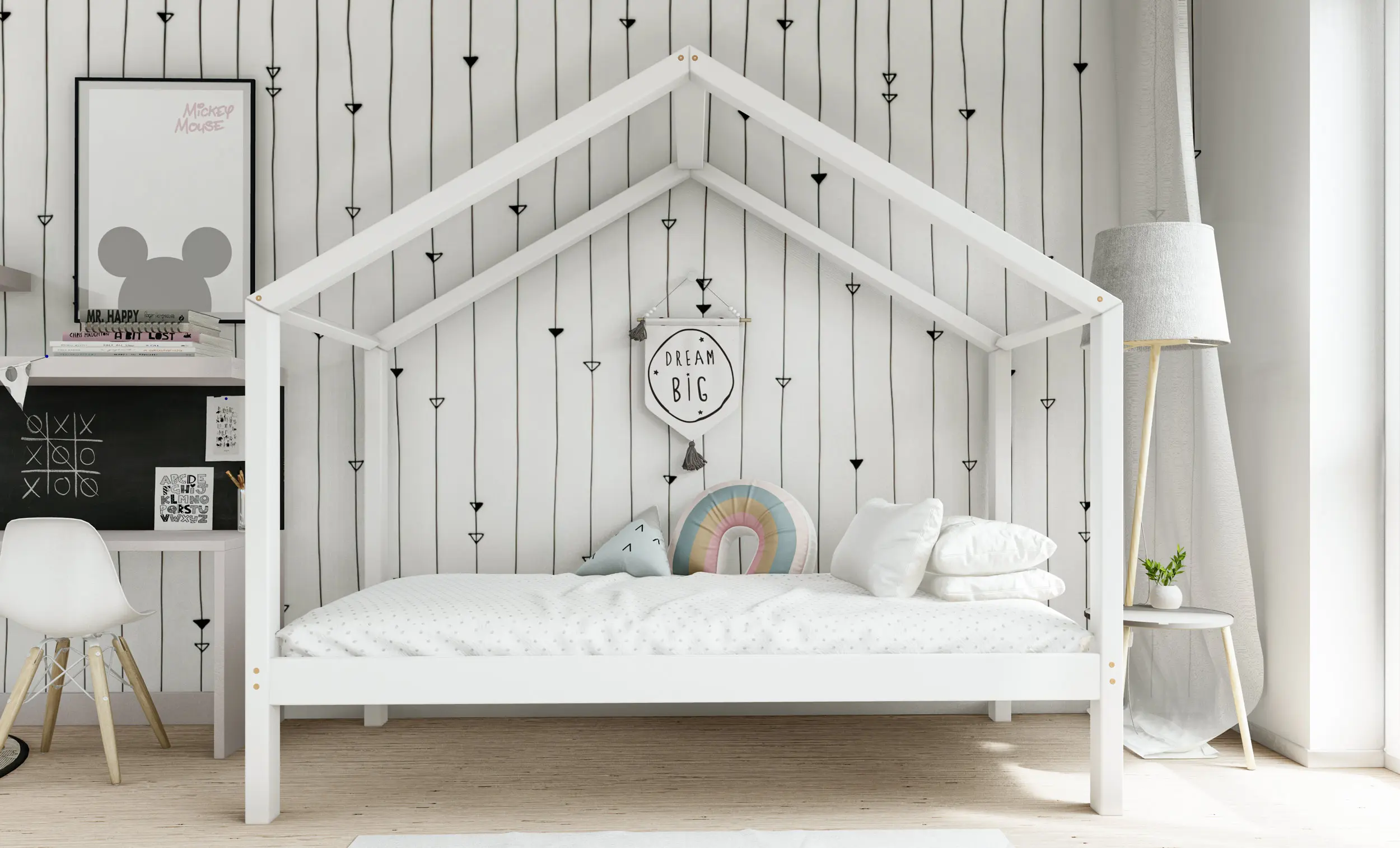 Drewniane łóżko domek RIKI to model otwarty bez barierek. Wyjątkowy design nie tylko urozmaica wygląd mebla, ale jest świetnym rozwiązaniem dla pokoi dziecięcych w domu czy mieszkaniu z poddaszem. Dodatkowo produkt występuje w kilku rozmiarach i kolorach do wyboru. Jego charakterystycznymi cechami są wysoka jakość użytych materiałów oraz dbałość o bezpieczeństwo maluchów, dzięki zaokrąglonym brzegom i gładkim powierzchniom.