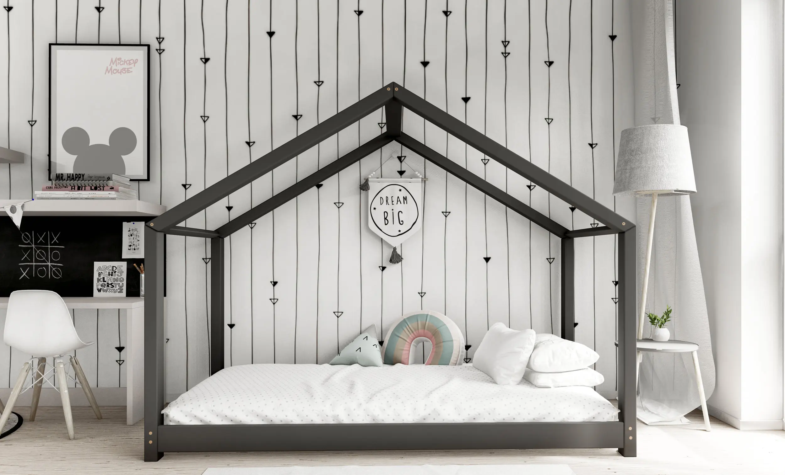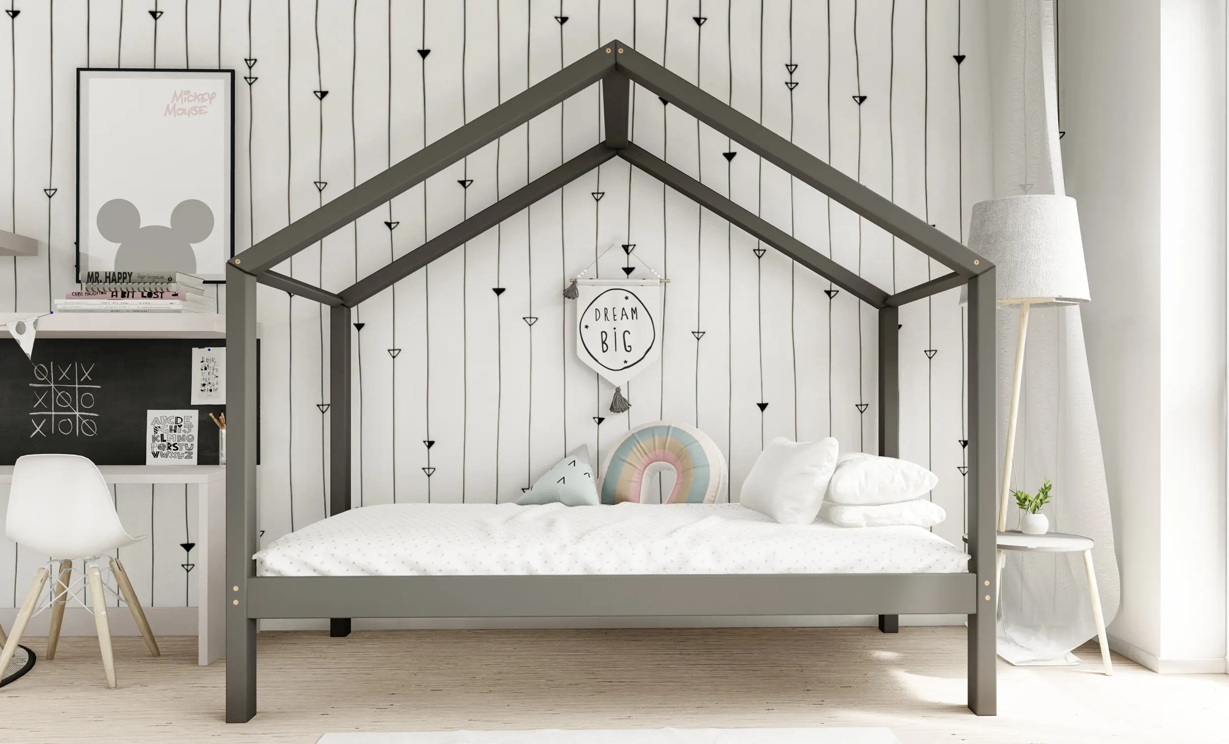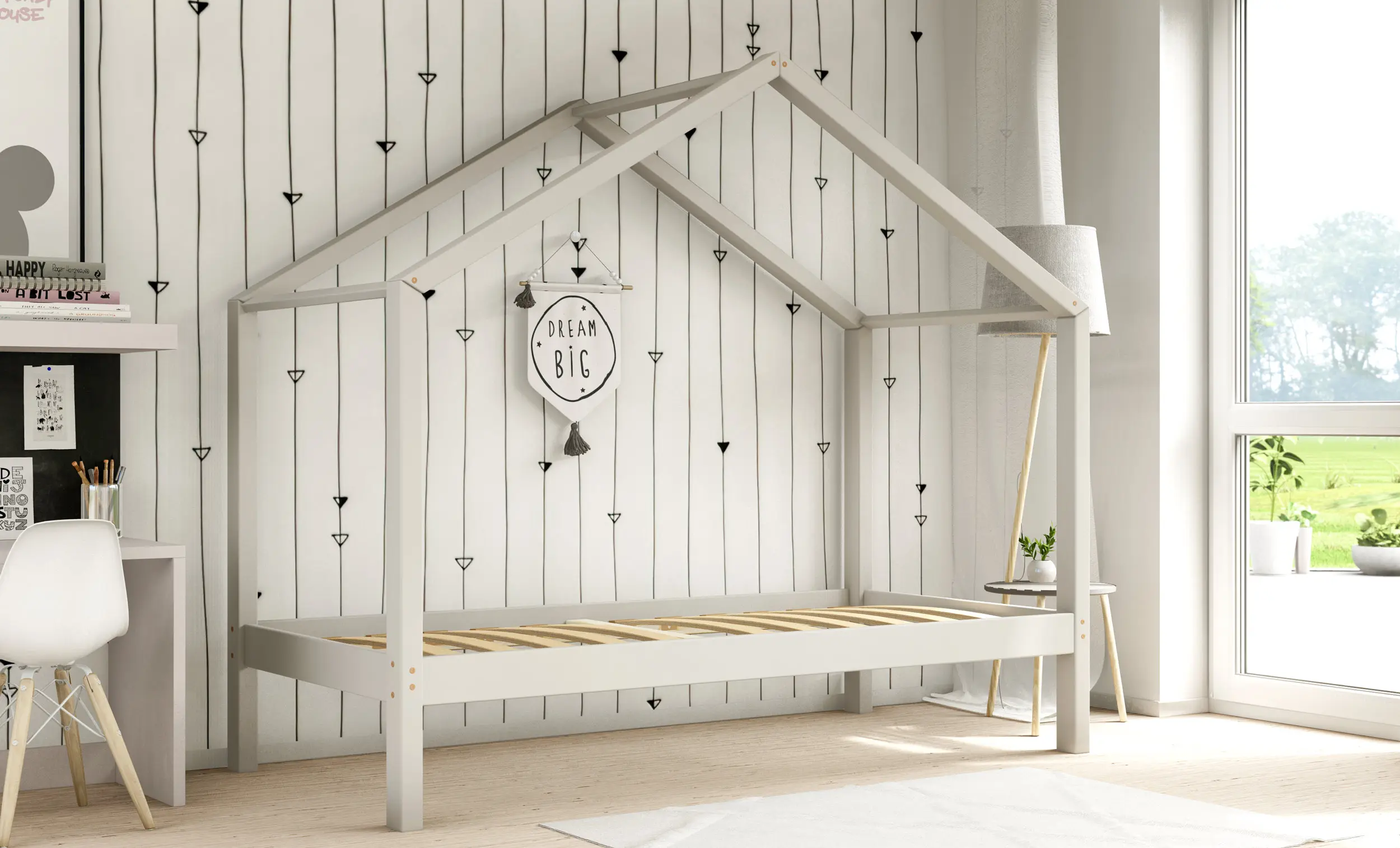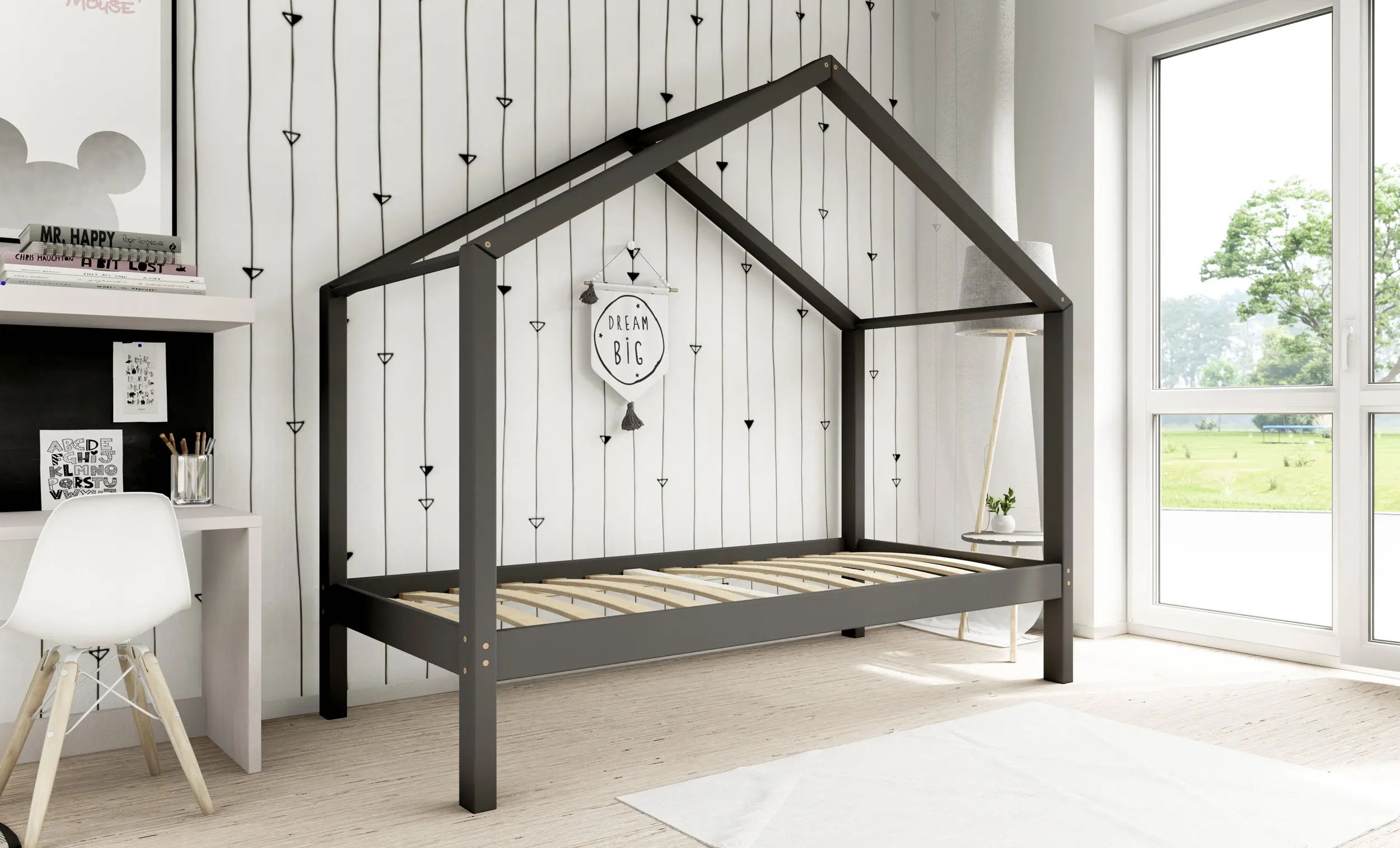 Drewniane łóżko domek RIKI to model otwarty bez barierek. Wyjątkowy design nie tylko urozmaica wygląd mebla, ale jest świetnym rozwiązaniem dla pokoi dziecięcych w domu czy mieszkaniu z poddaszem. Dodatkowo produkt występuje w kilku rozmiarach i kolorach do wyboru. Jego charakterystycznymi cechami są wysoka jakość użytych materiałów oraz dbałość o bezpieczeństwo maluchów, dzięki zaokrąglonym brzegom i gładkim powierzchniom.