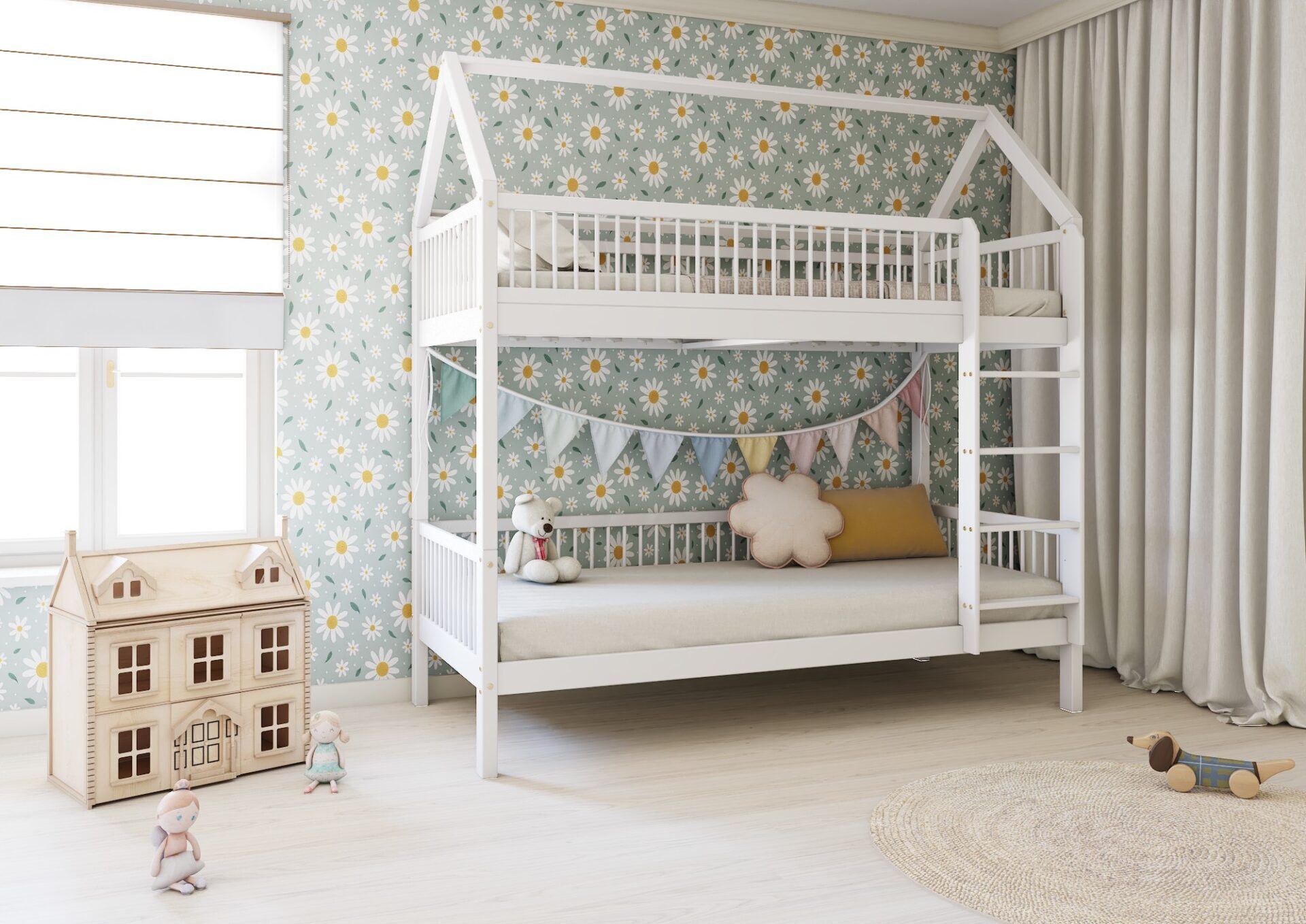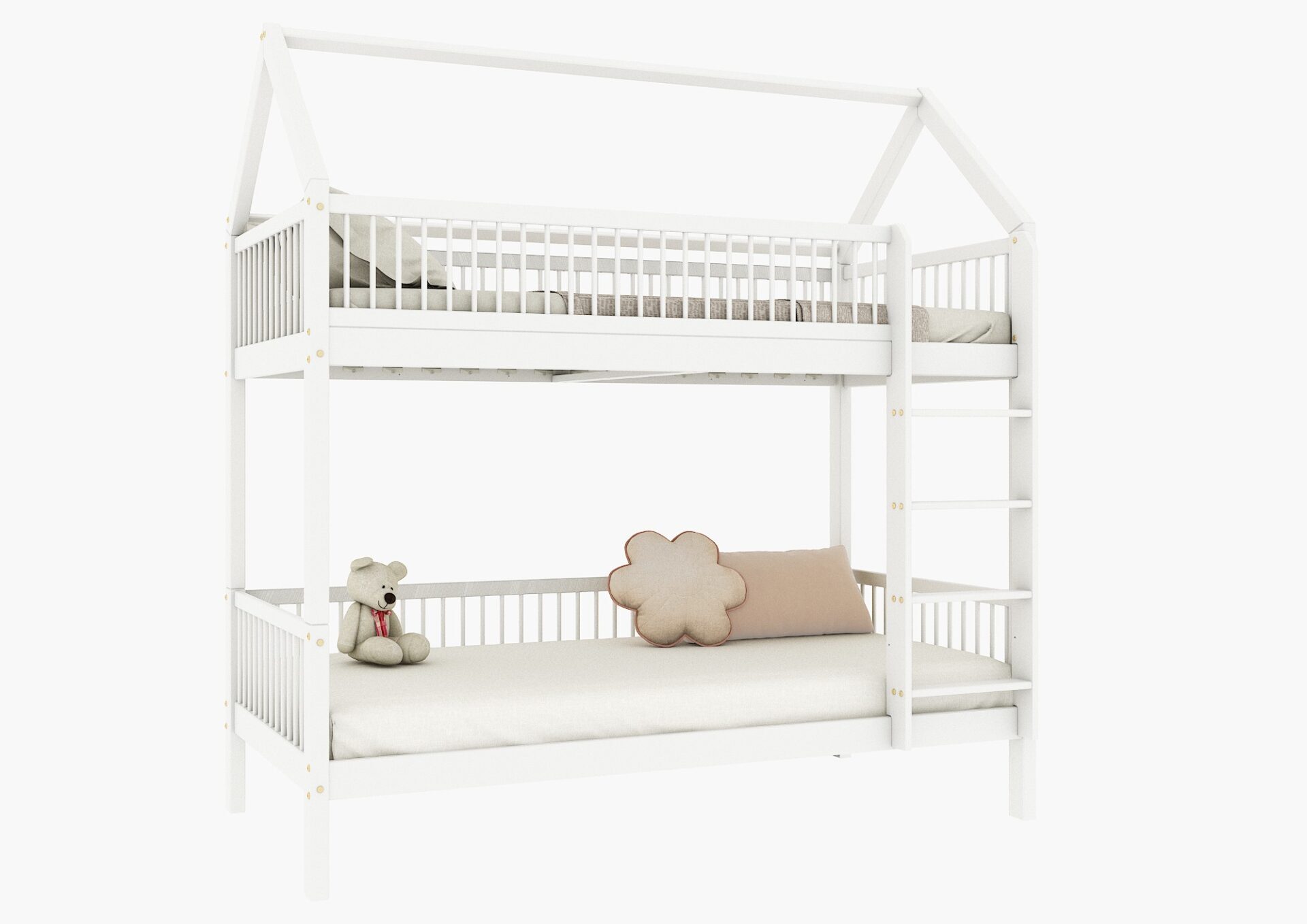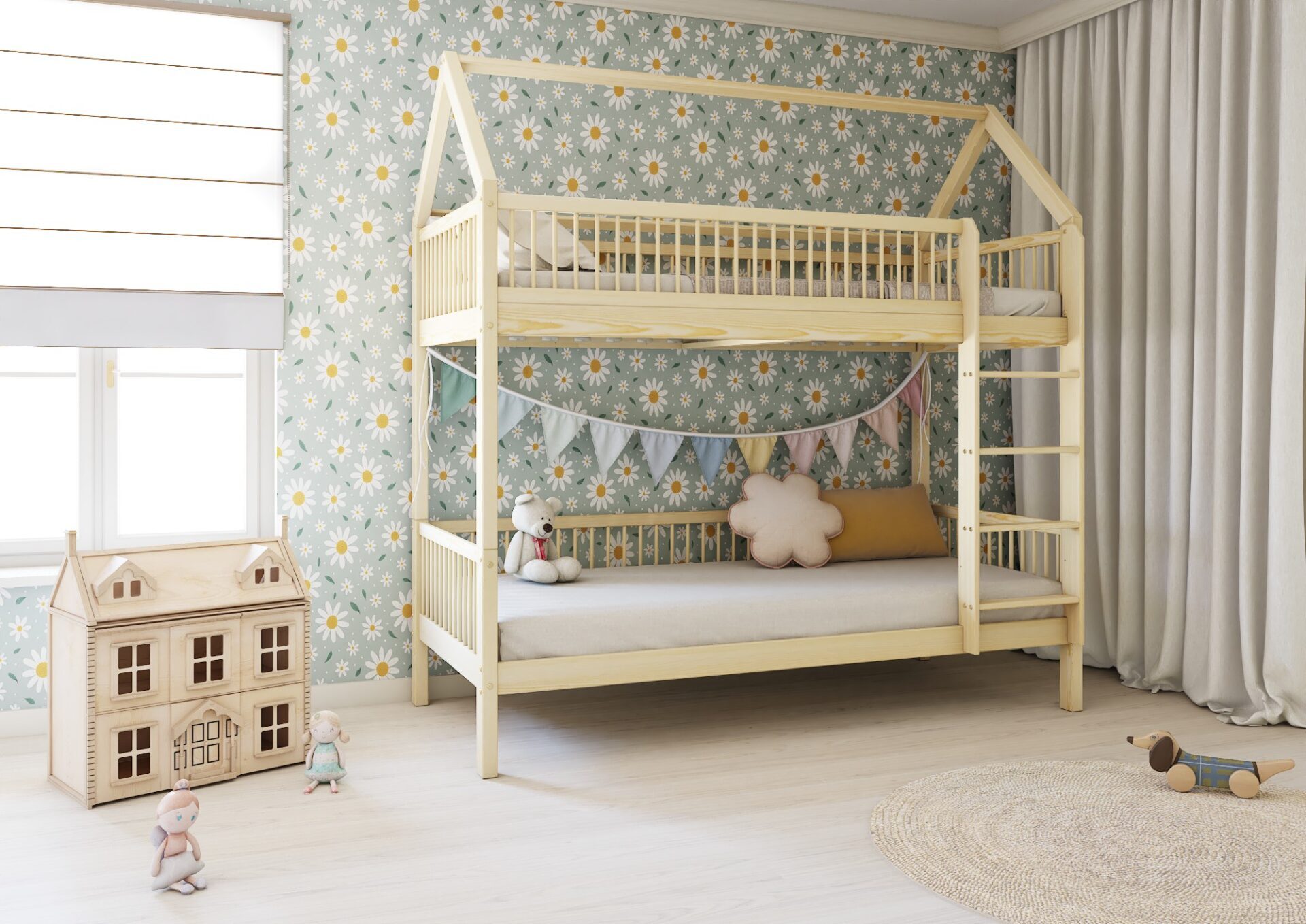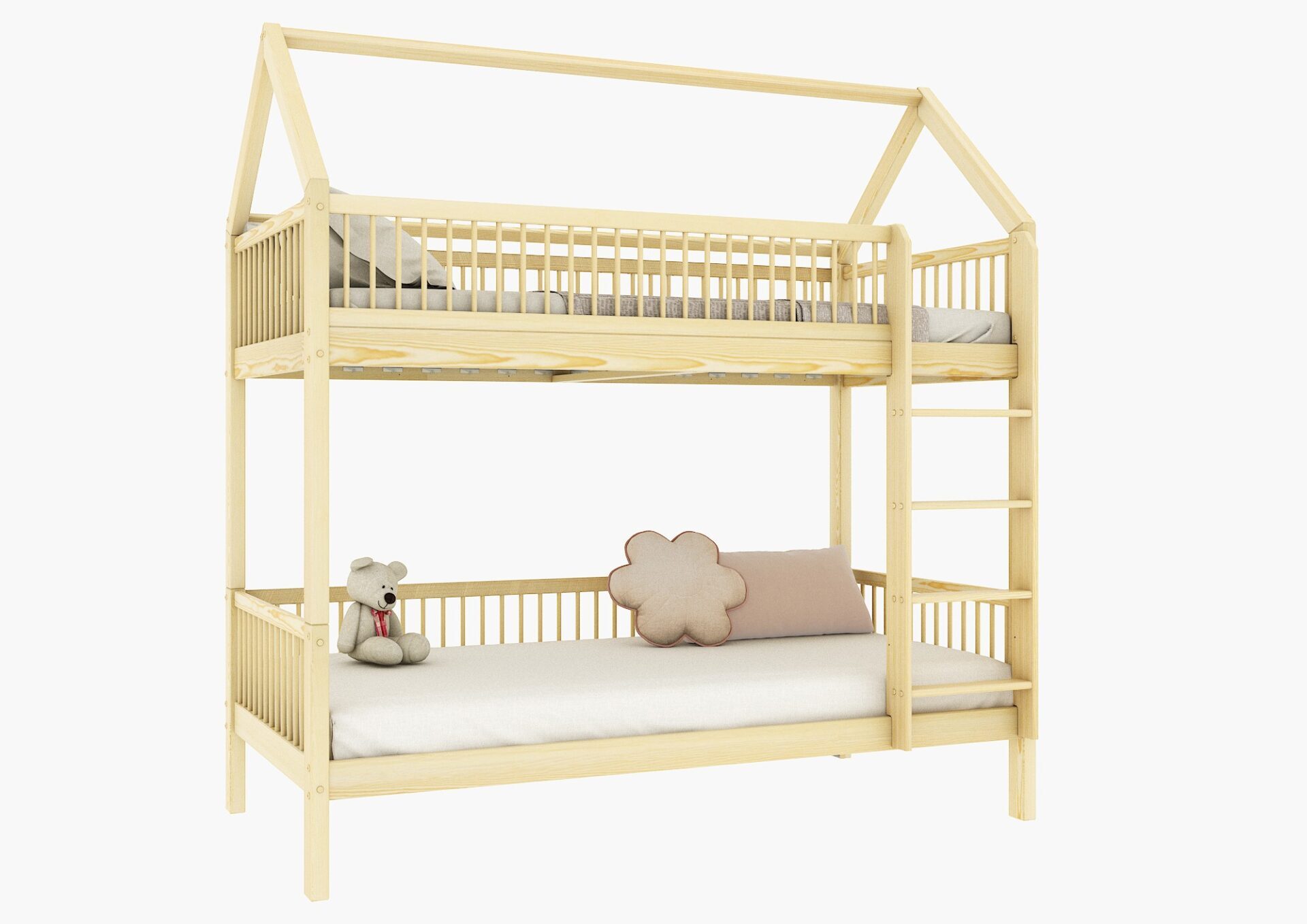 ZOJA PIĘTROWA – łóżko piętrowe domek z okrągłymi szczebelkami