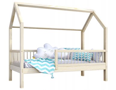 DOMI drewniane łóżko dziecięce domek z barierkami płotek SZYBKA WYSYŁKA